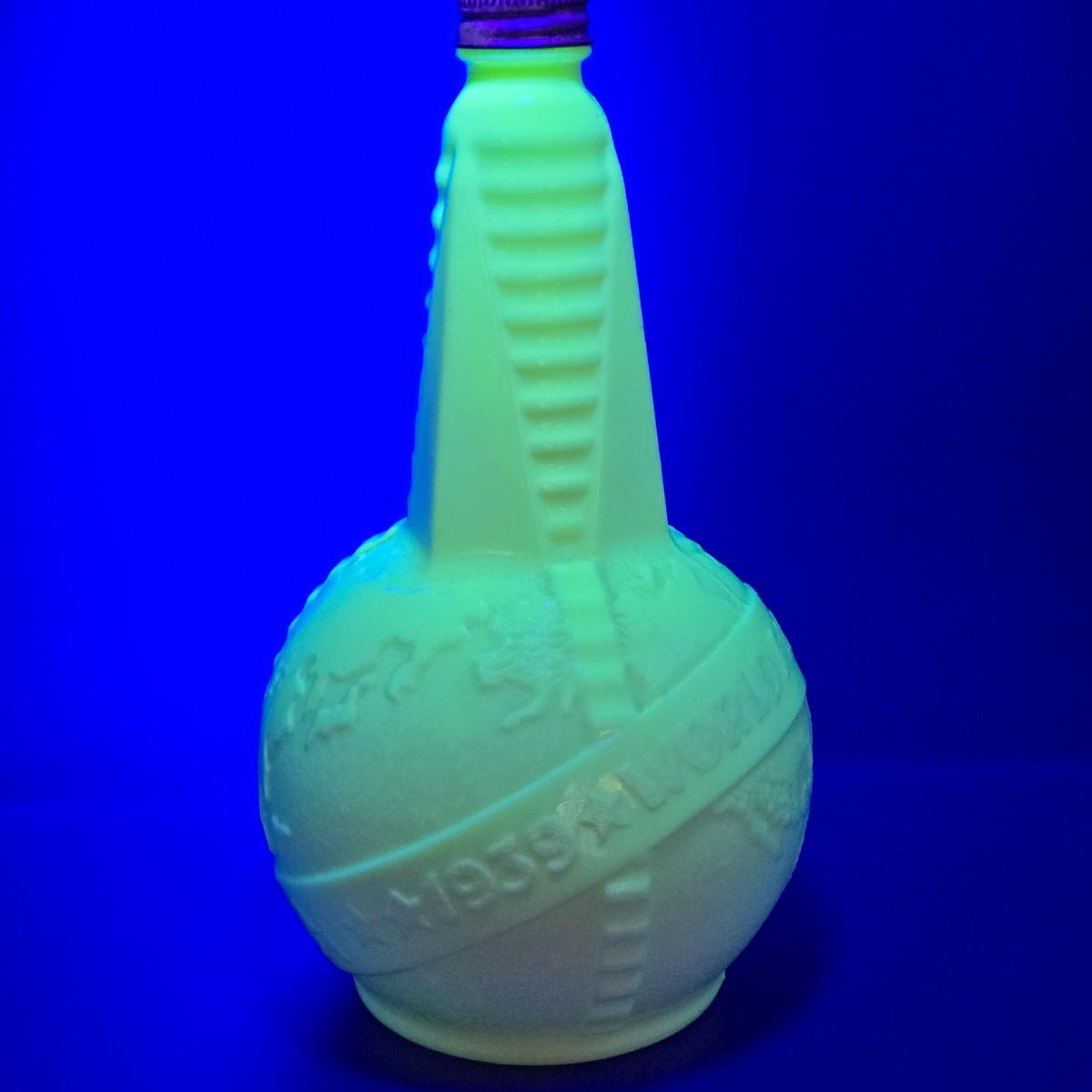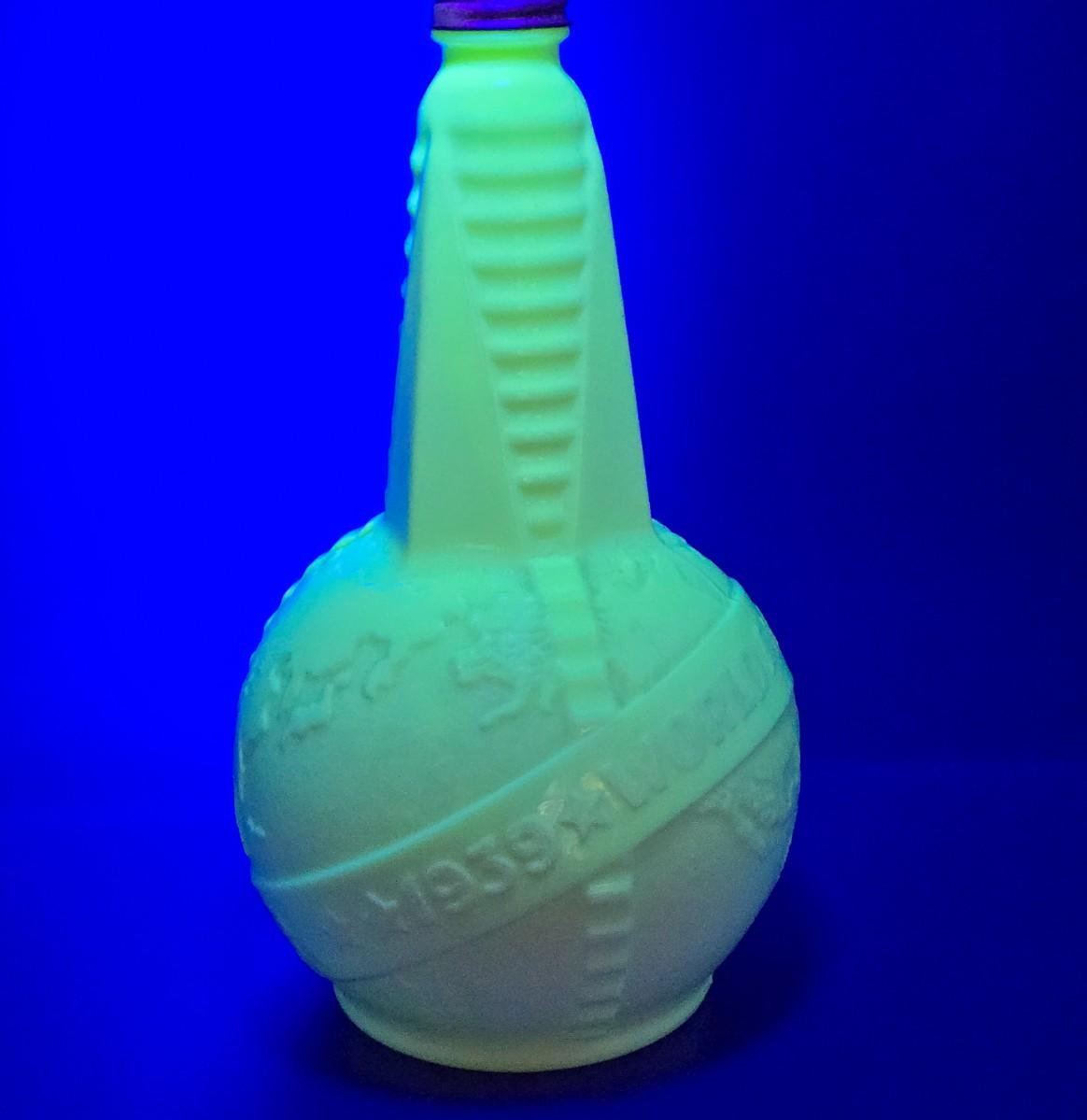 LOT 5L: 1939 Worlds Fair Uranium Glass Vinegar Bottle
