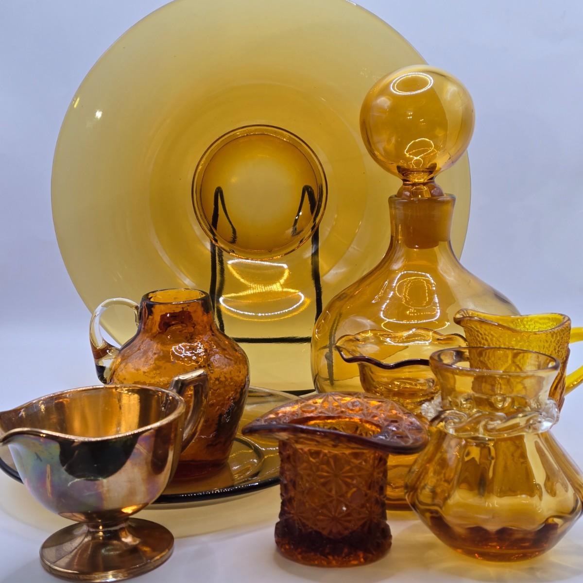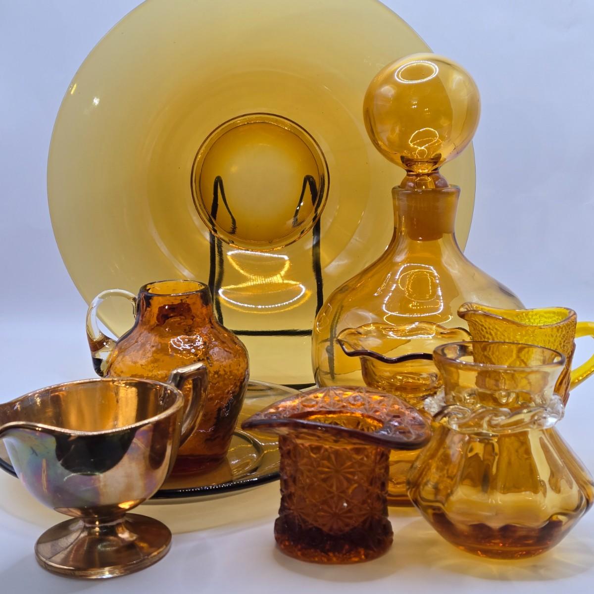 LOT 10L: Variety of Amber Glassware Including Wine/Liquor Decanter
