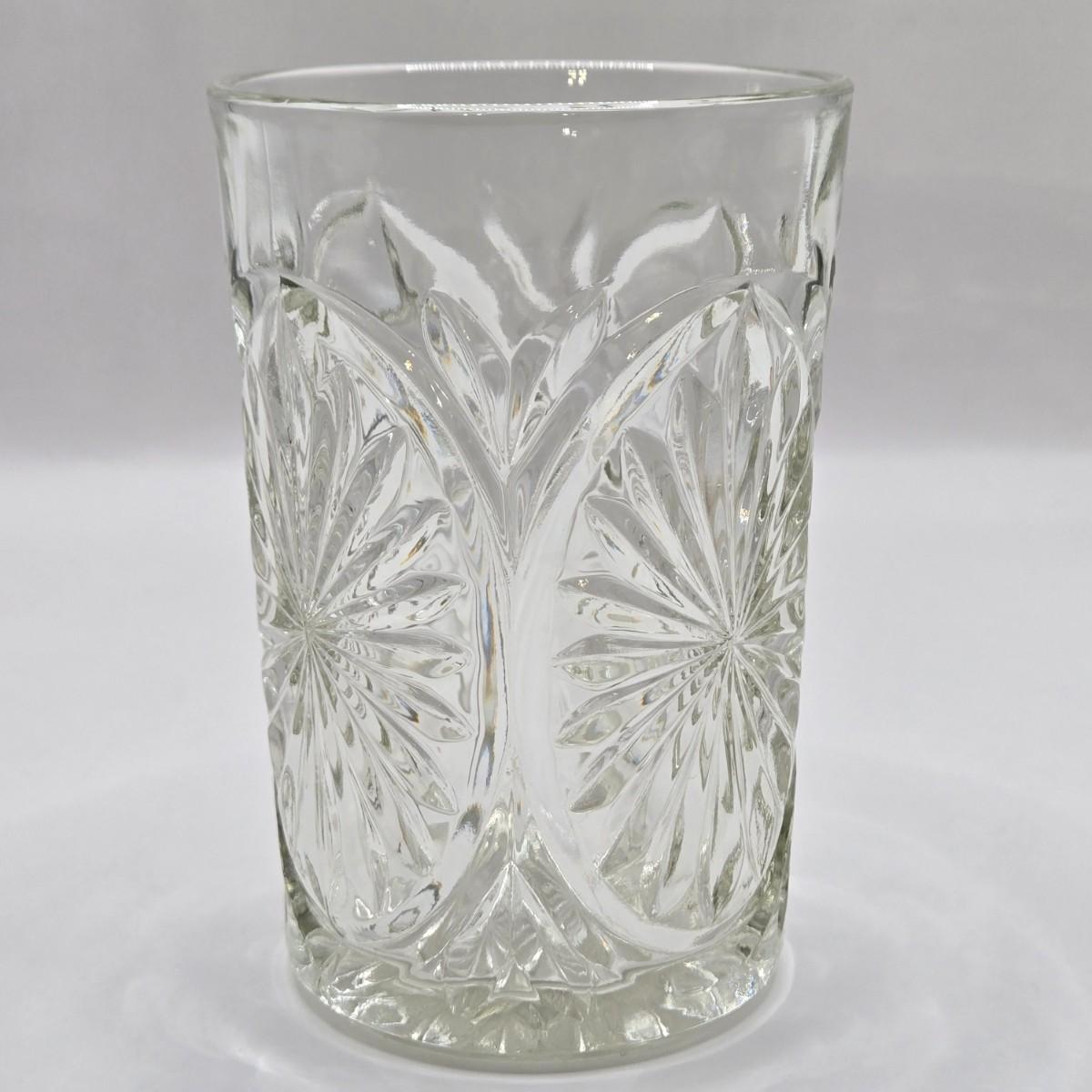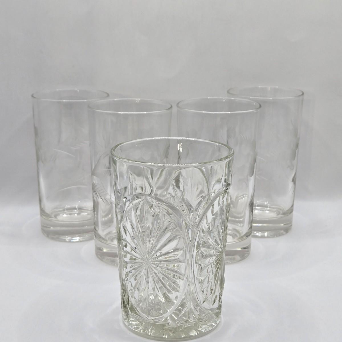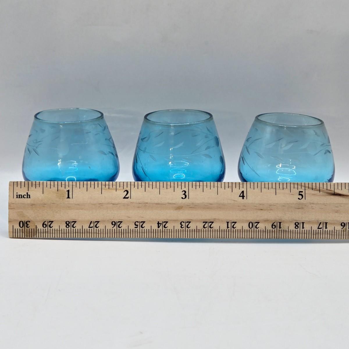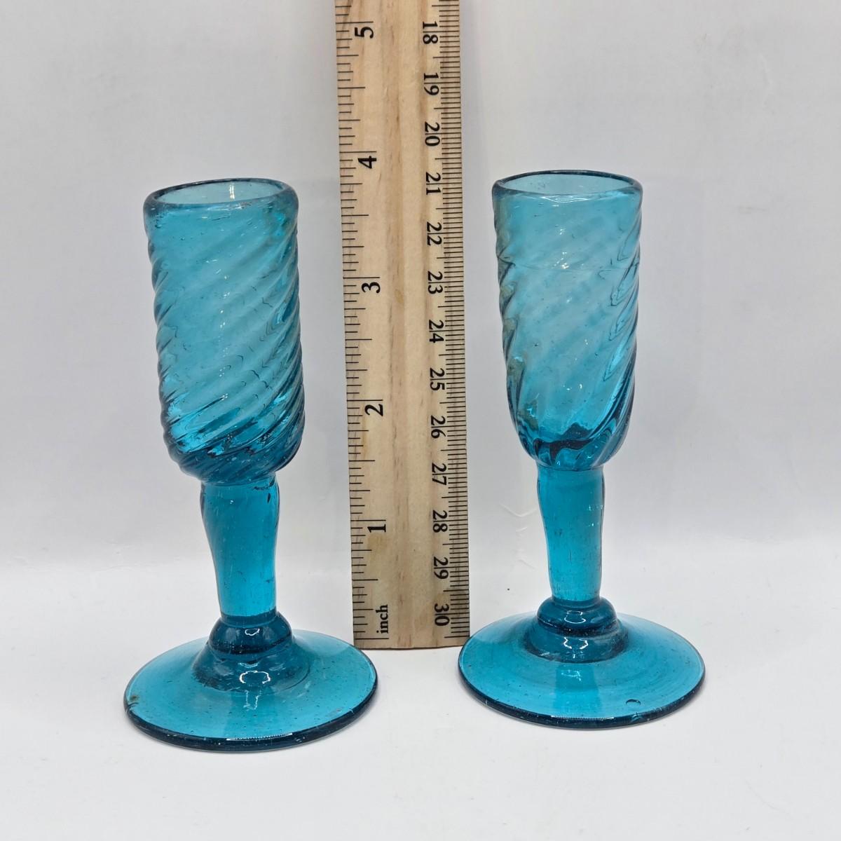 LOT 12L: Vintage Stretch Glass Fan Vase, Small Hand Blown Glass Goblets, Etched Glasses, and More