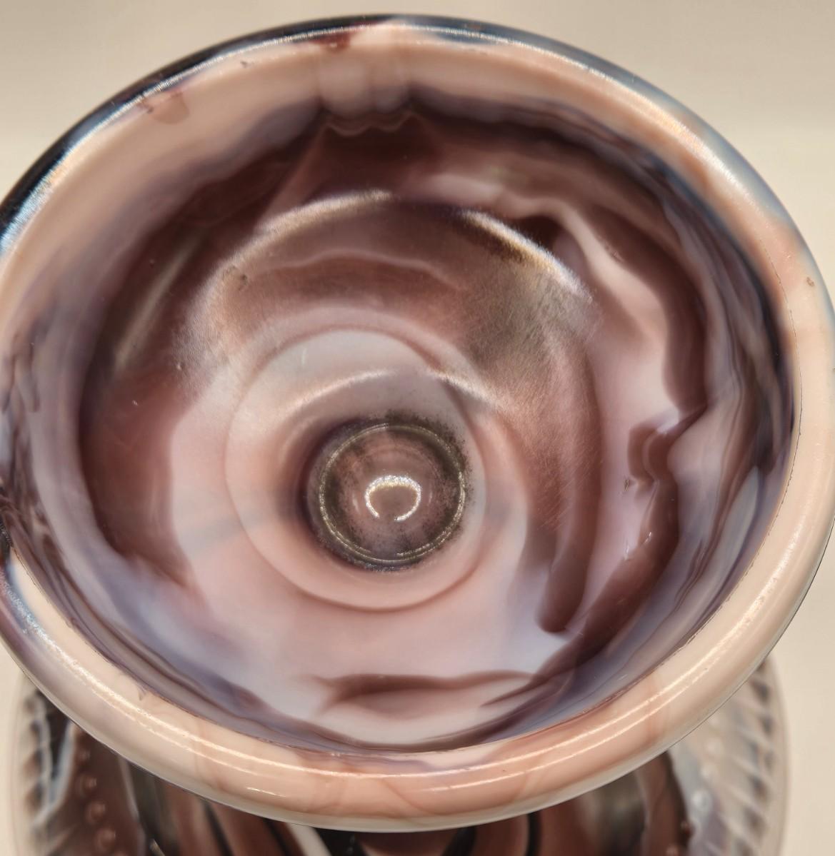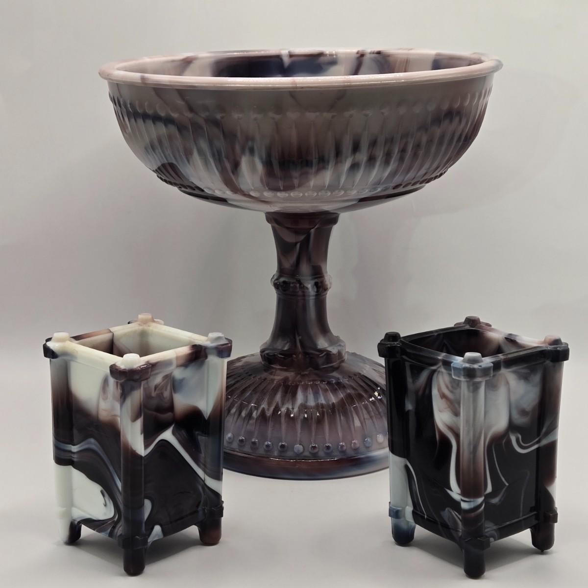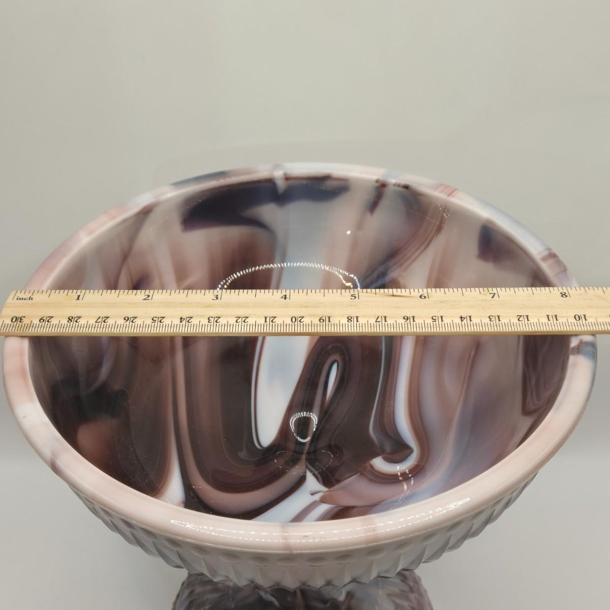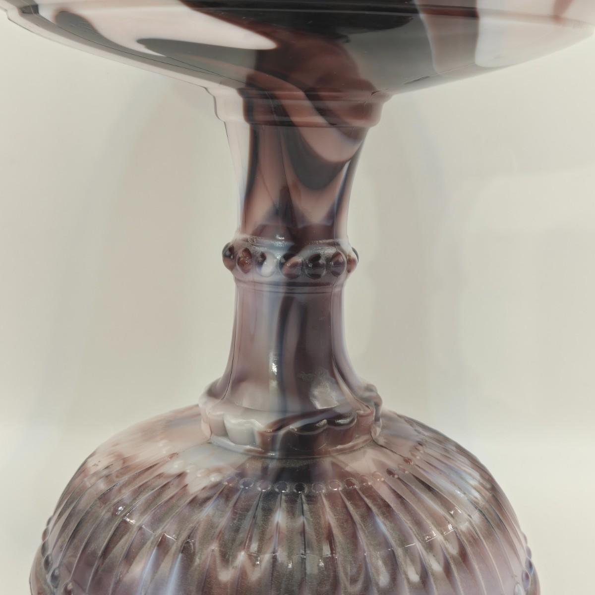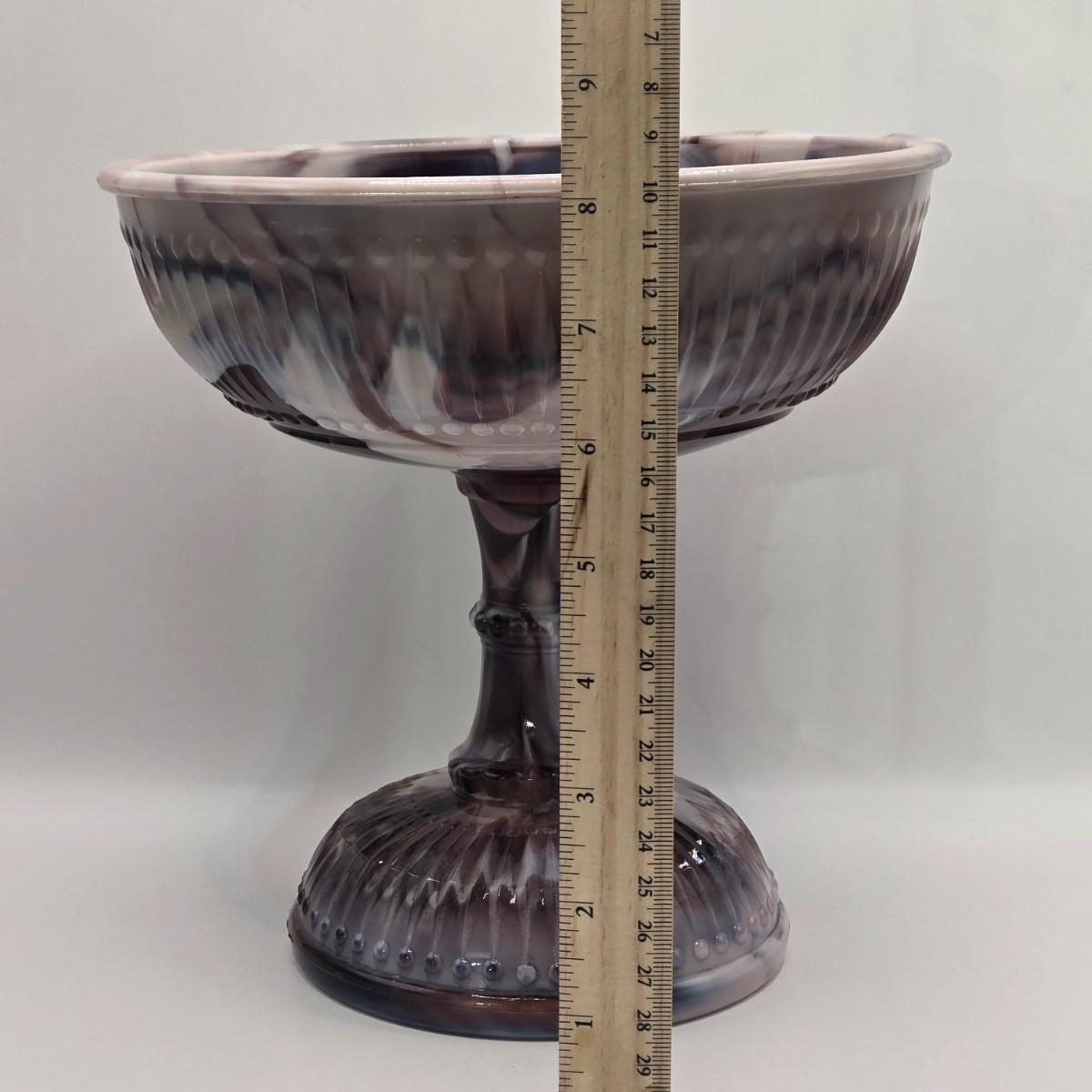 LOT 16L: Purple Slag Glass Pedestal Bowl and Two Spill Vases