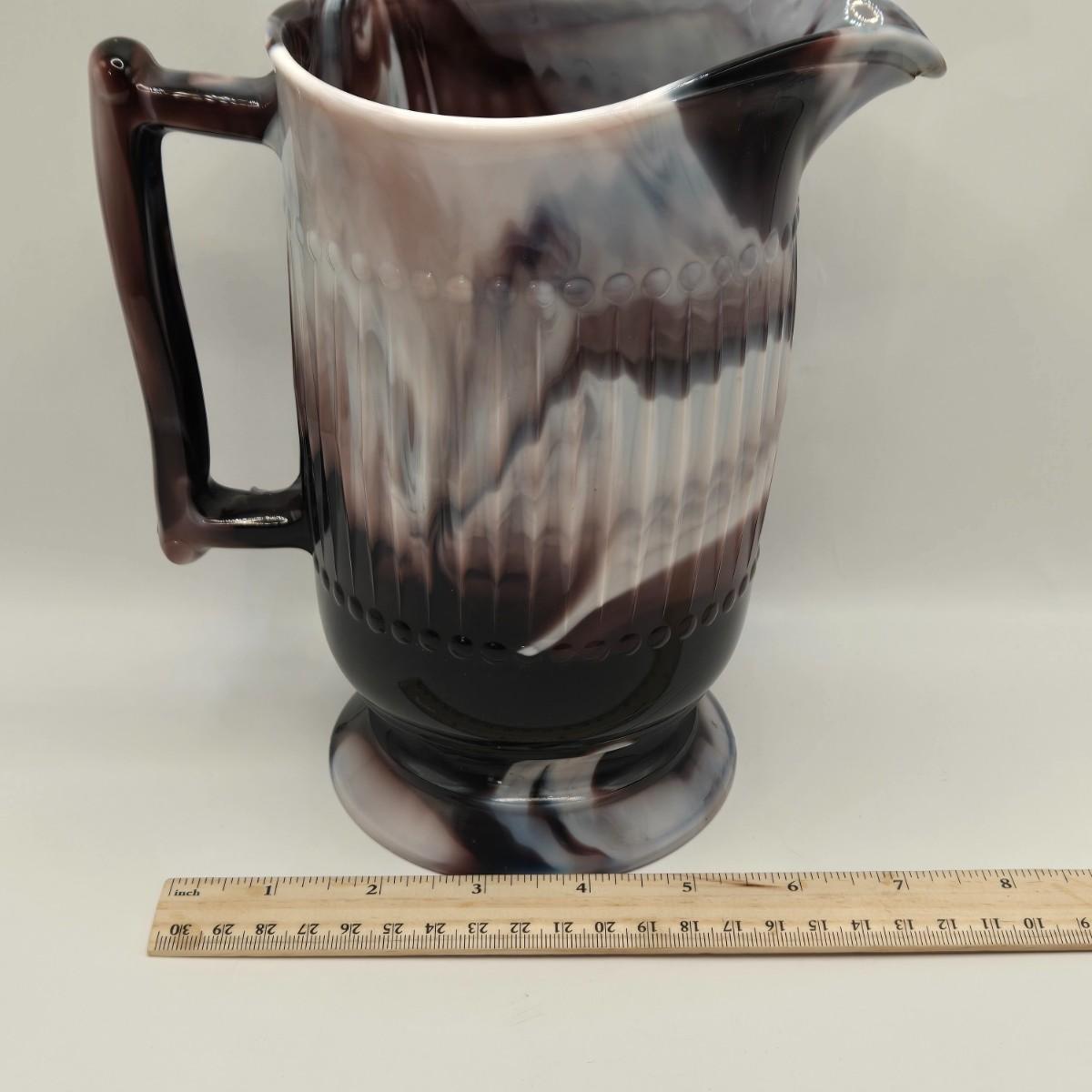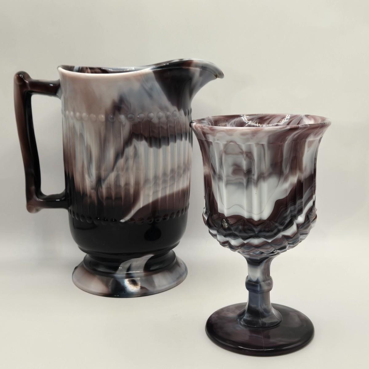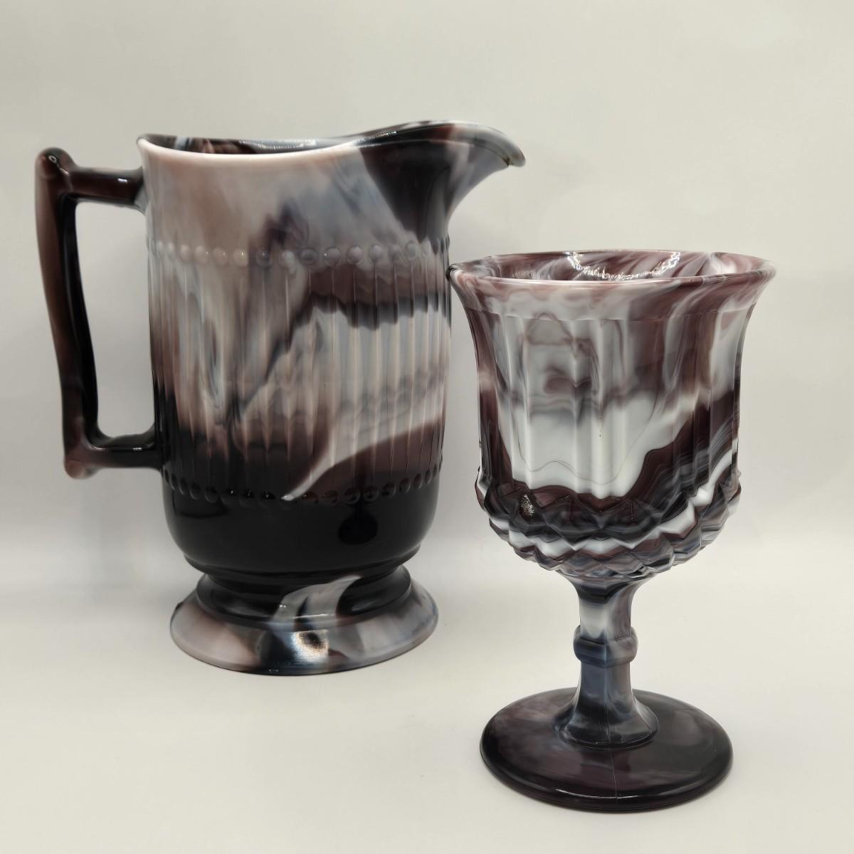 LOT 17L: Slag Glass Pitcher and Goblet