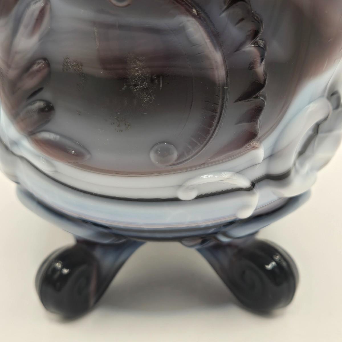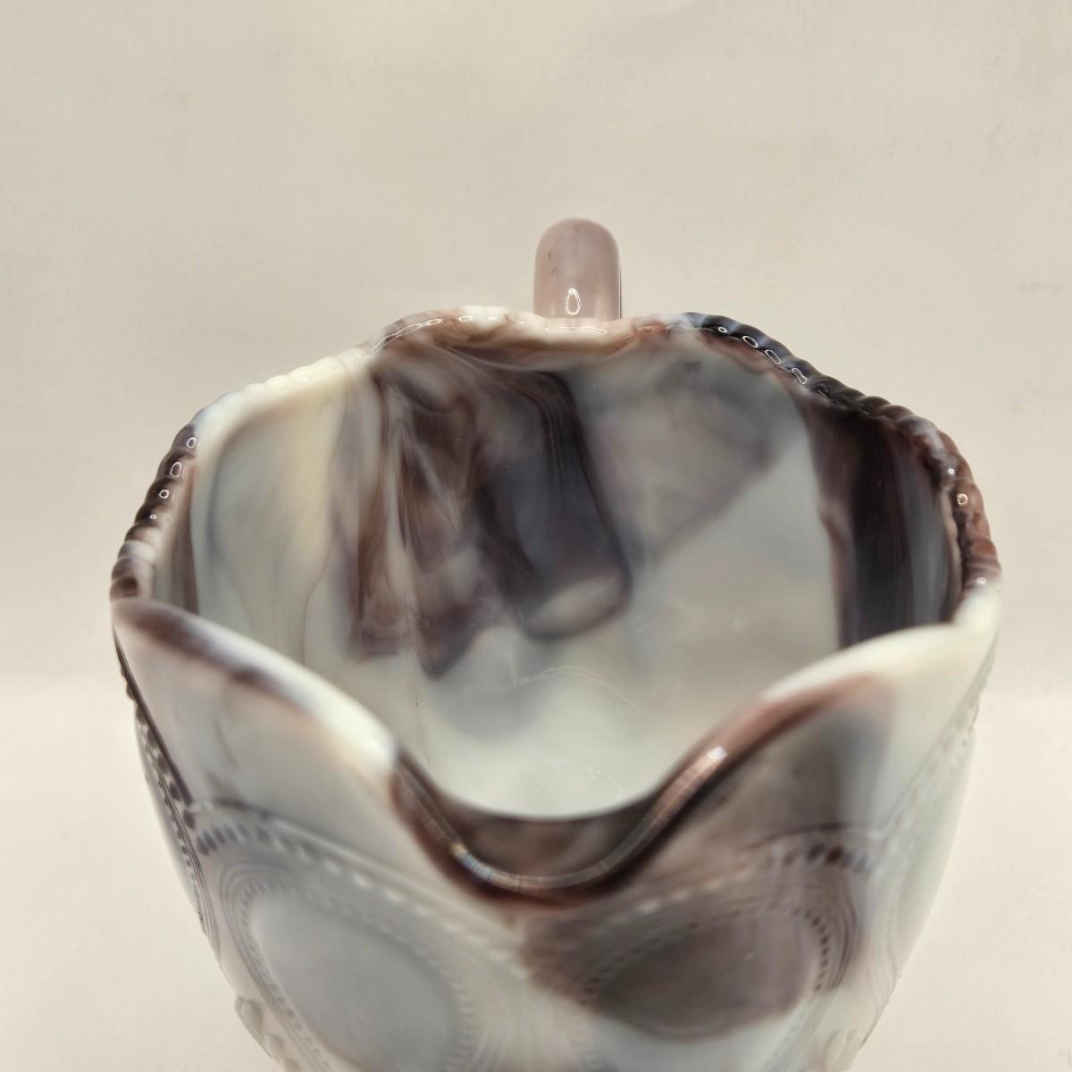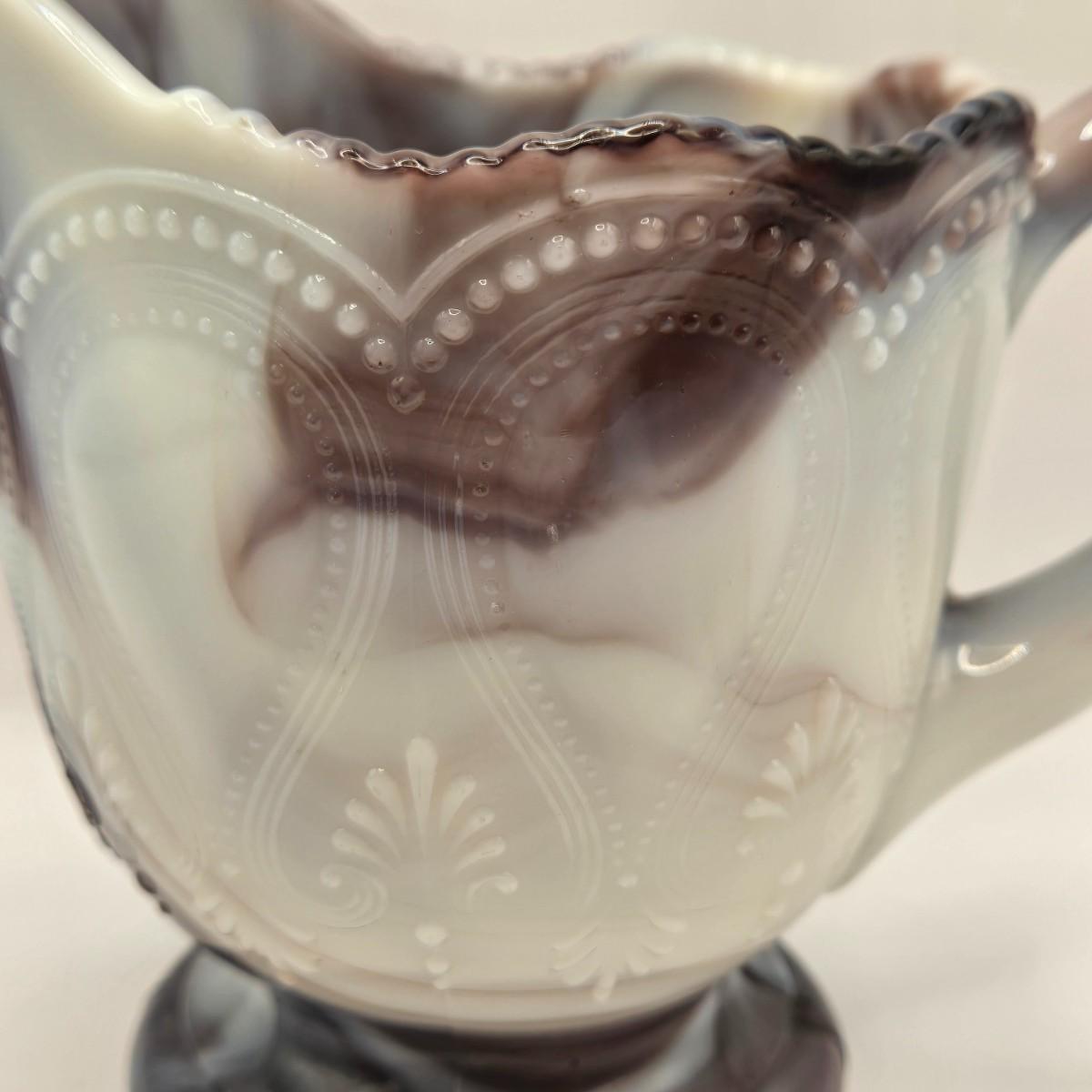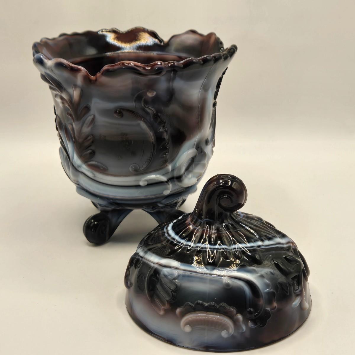 LOT 22L: Purple Slag Imperial Glass Footed Sugar Bowl with Lid and Slag Glass Creamer