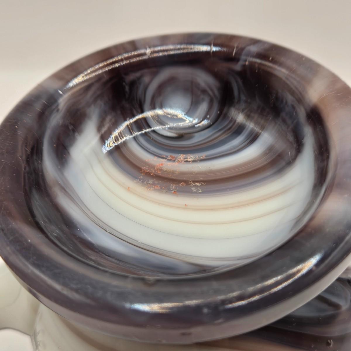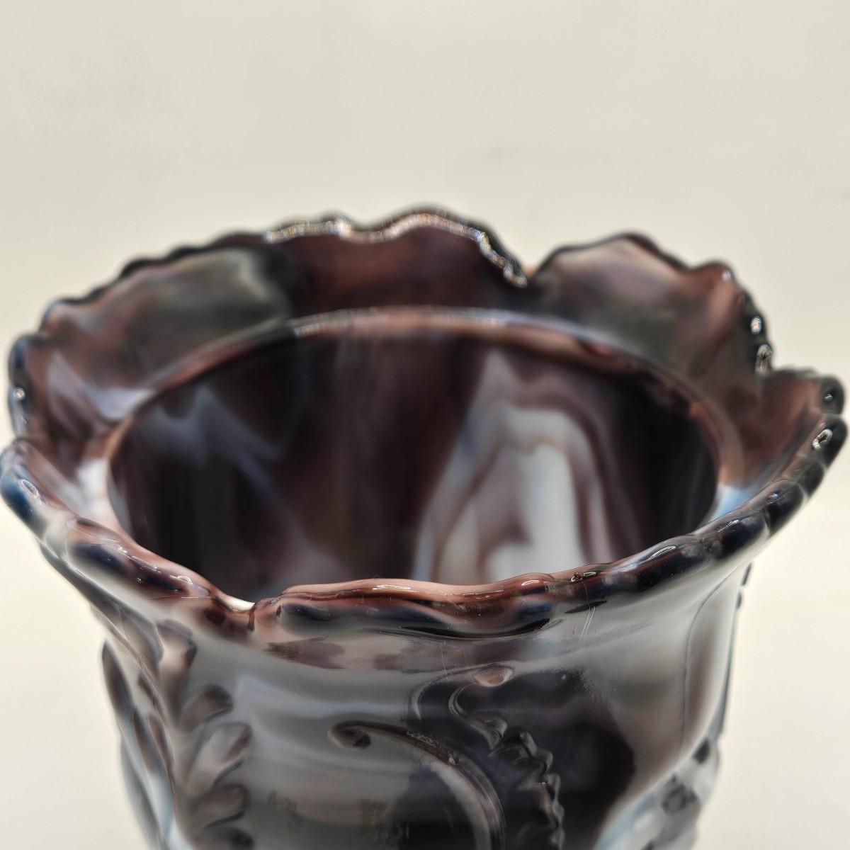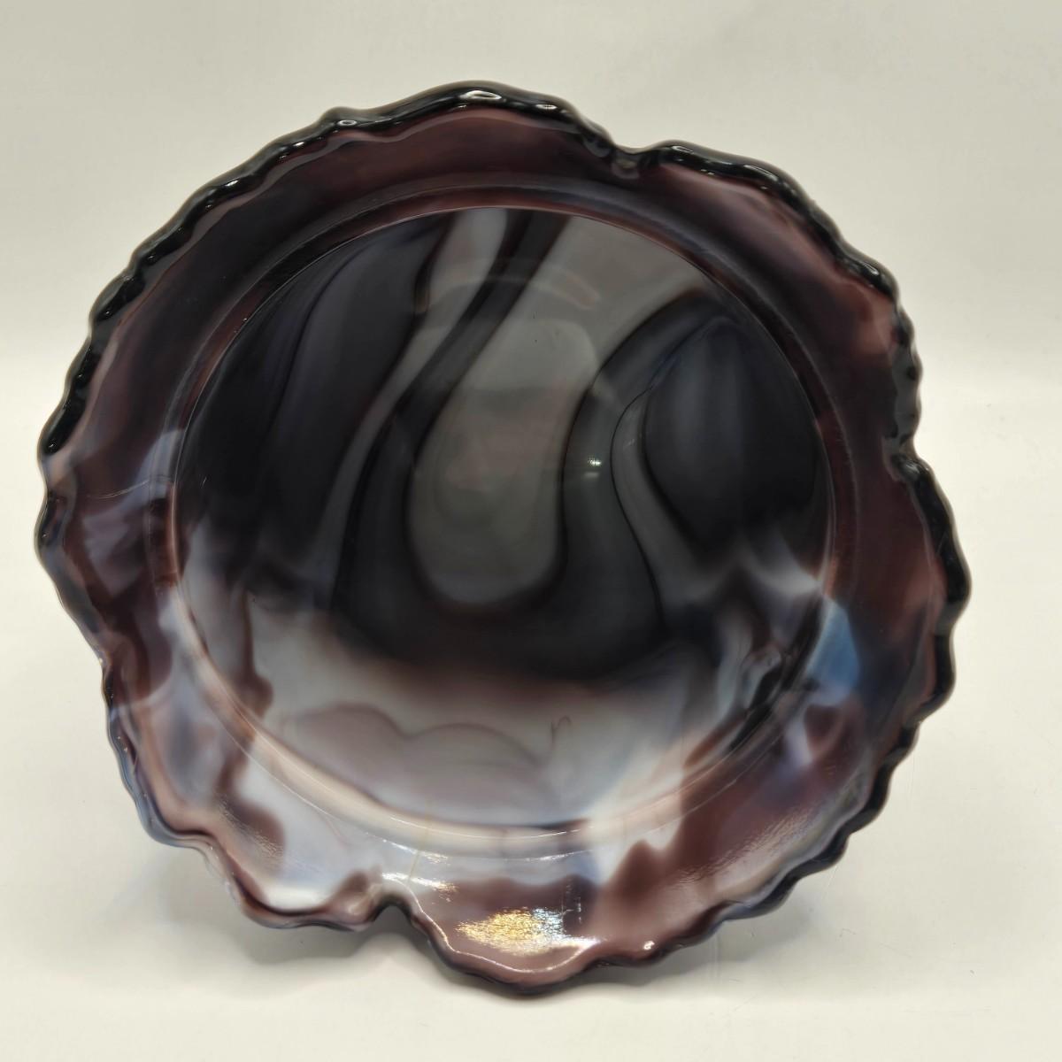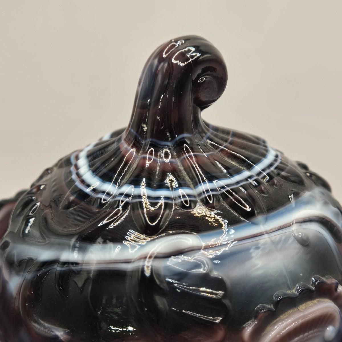 LOT 22L: Purple Slag Imperial Glass Footed Sugar Bowl with Lid and Slag Glass Creamer