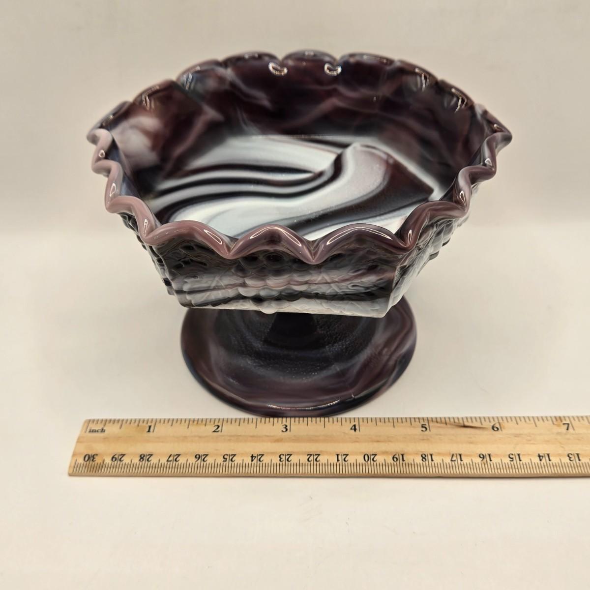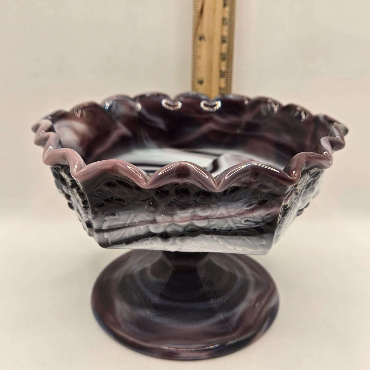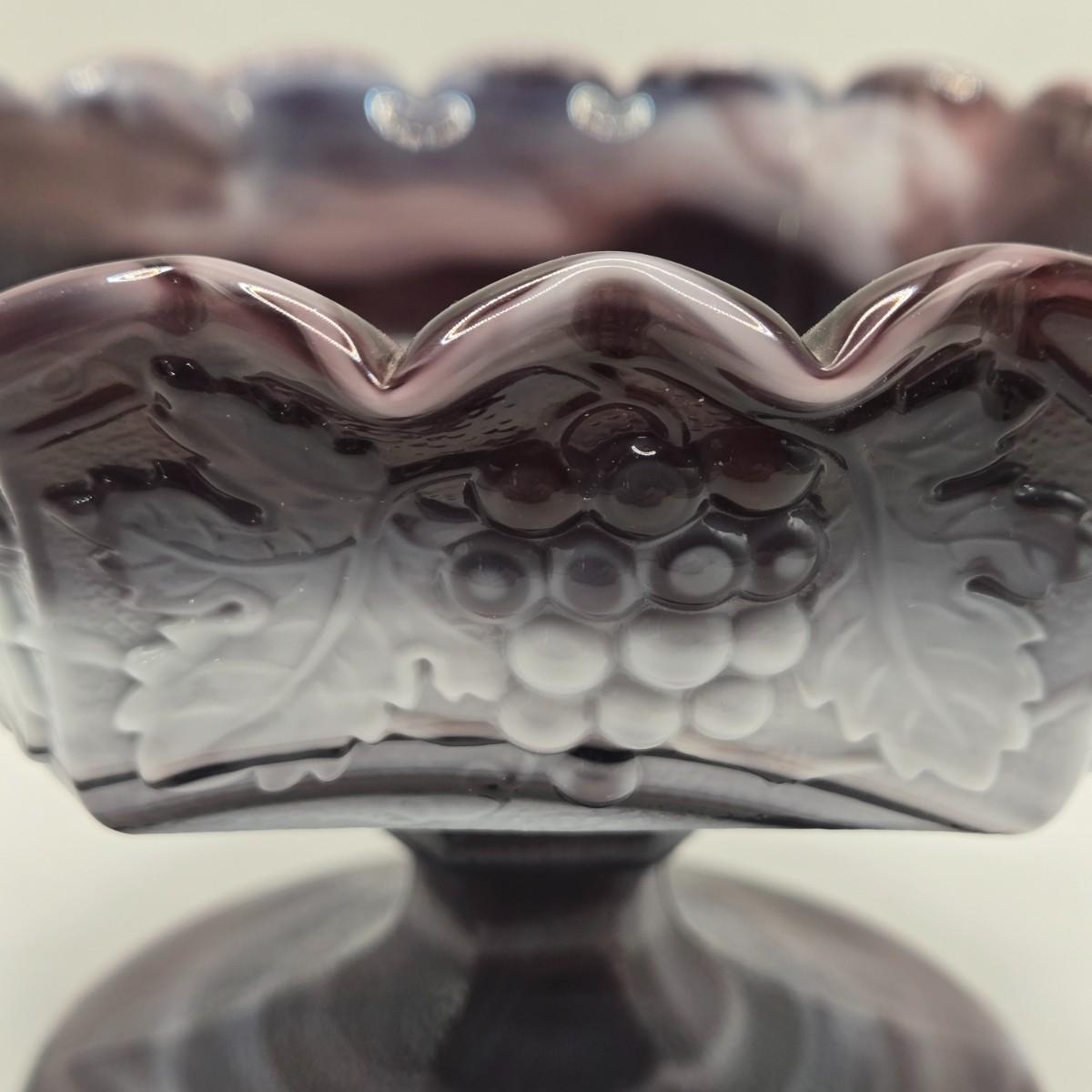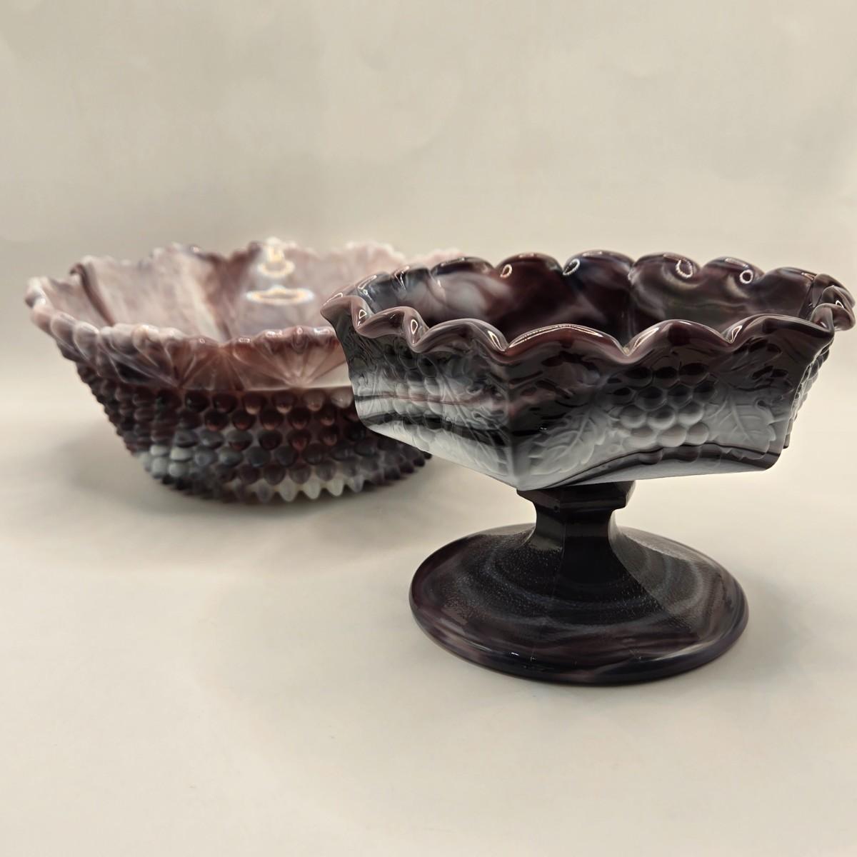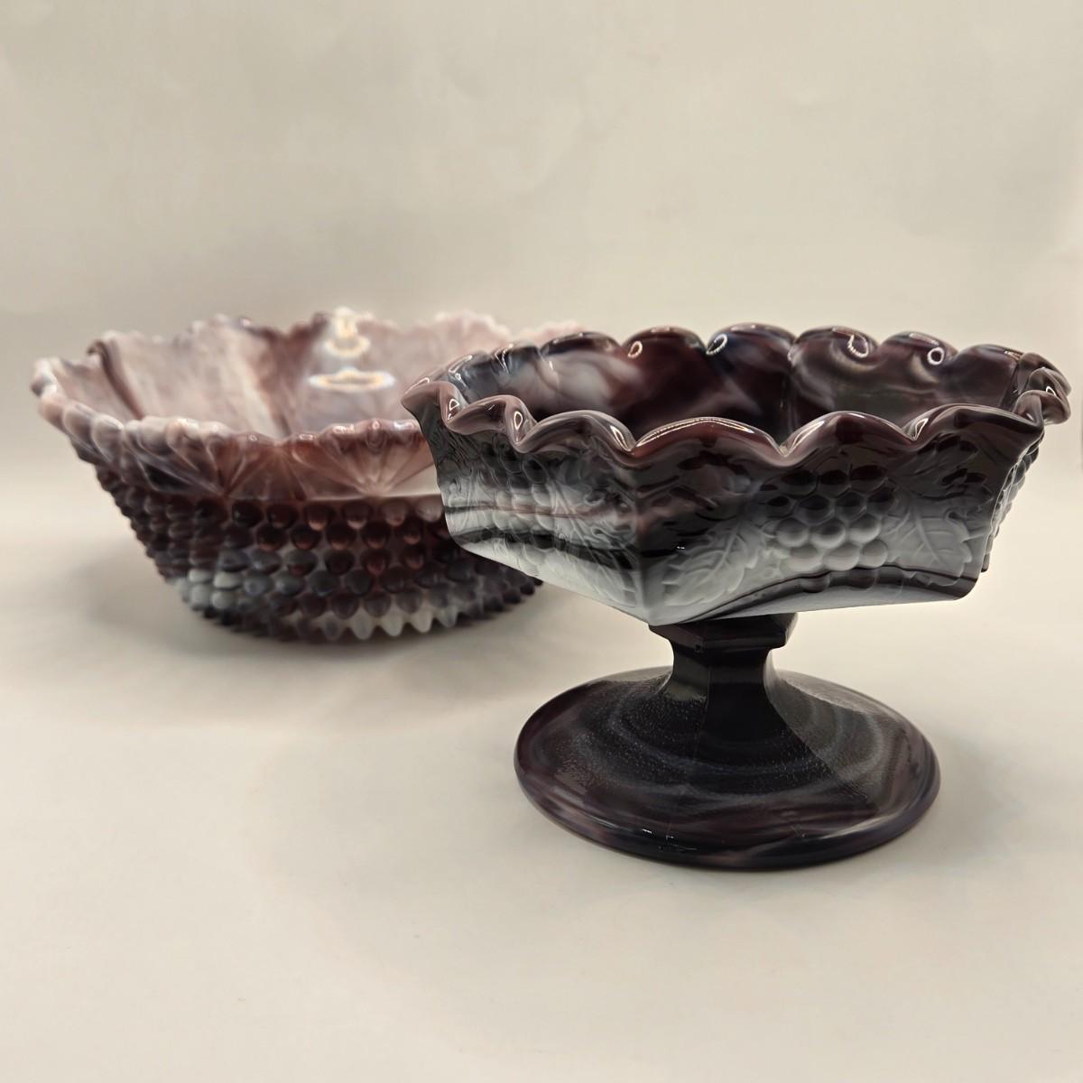 LOT 23L: Purple Imperial Slag Glass Hobnail Bowl and Grapevine Pedestal Bowl