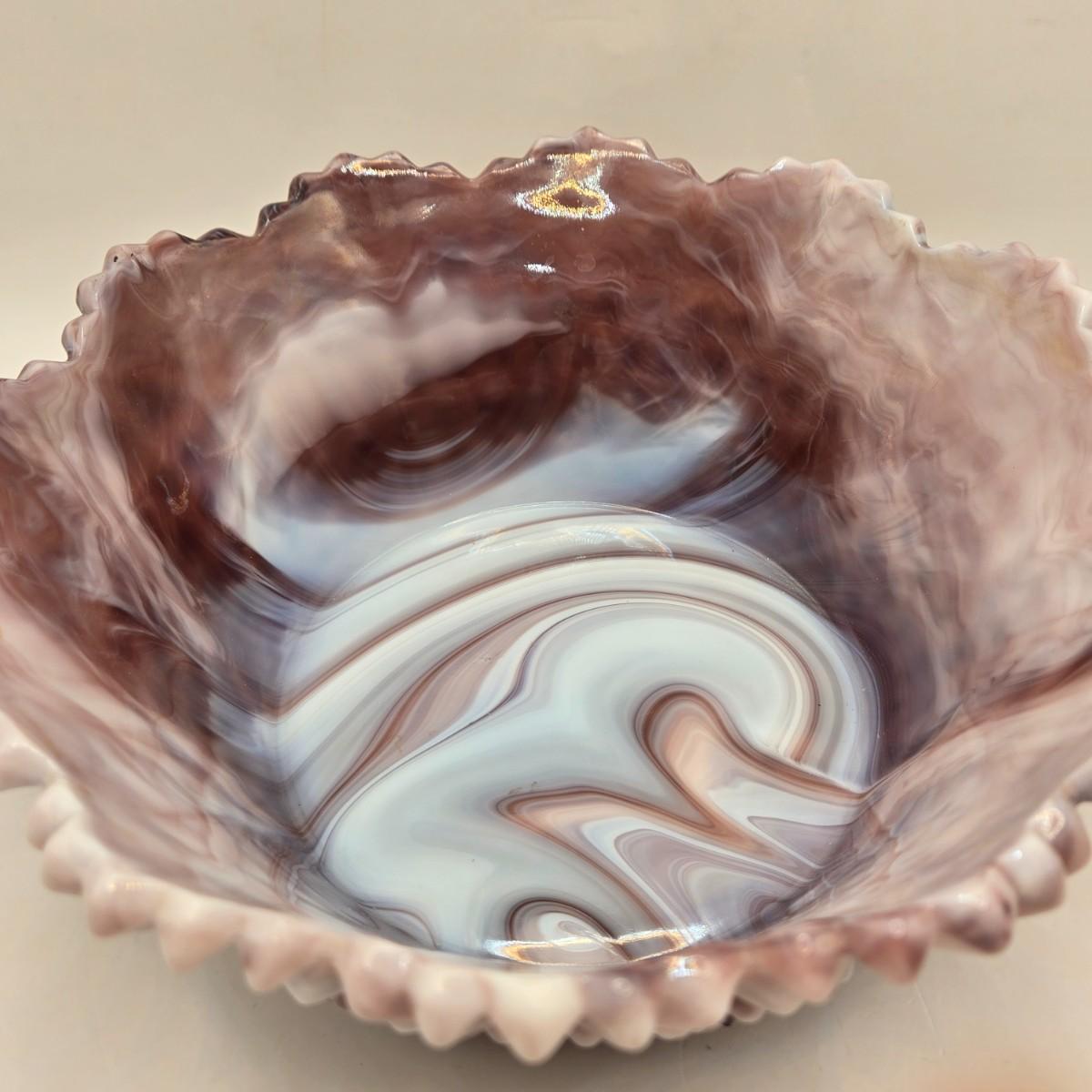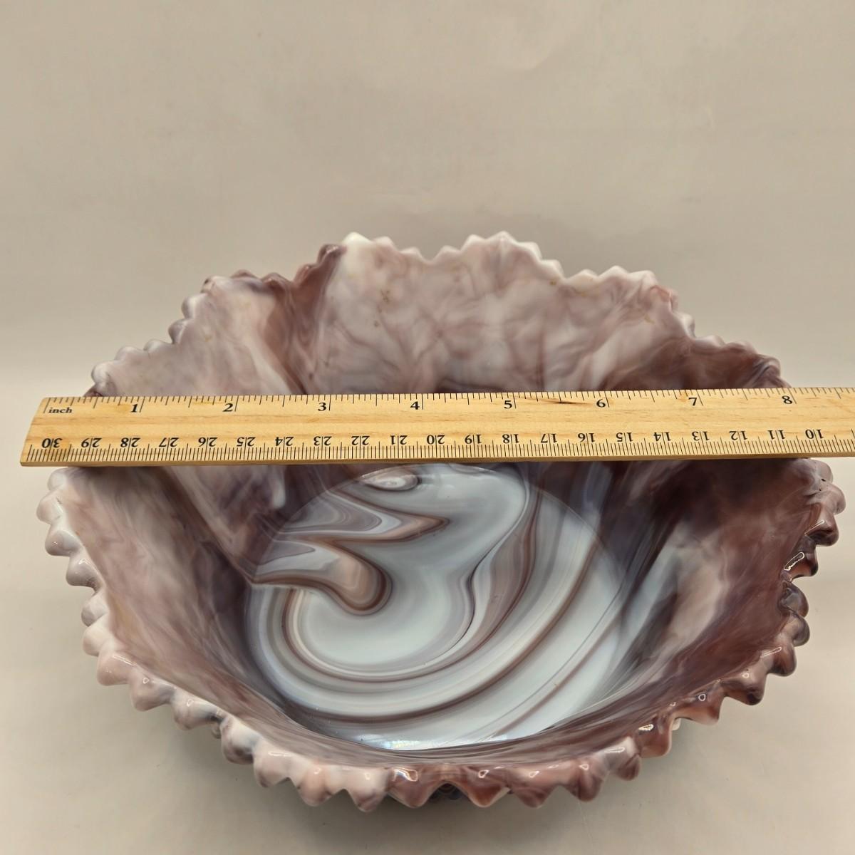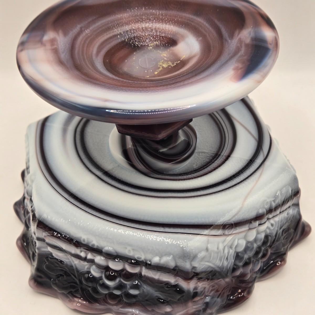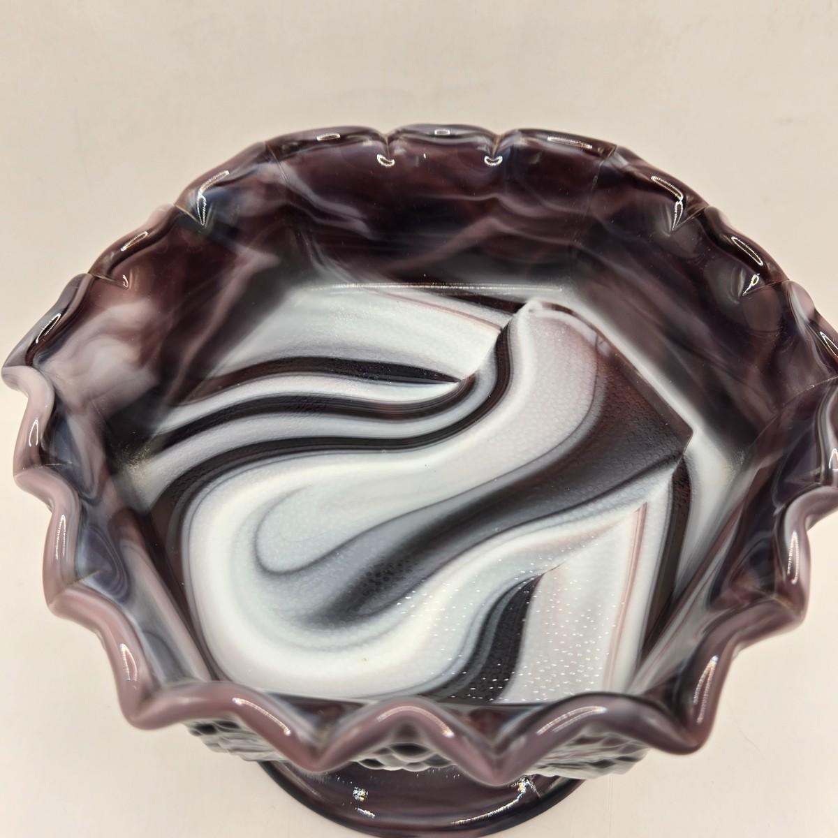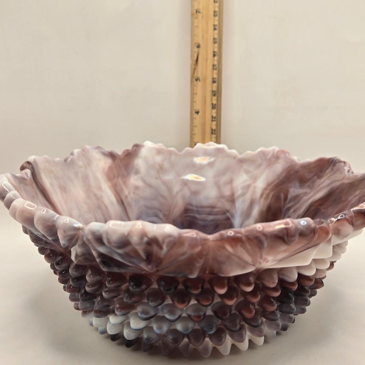 LOT 23L: Purple Imperial Slag Glass Hobnail Bowl and Grapevine Pedestal Bowl