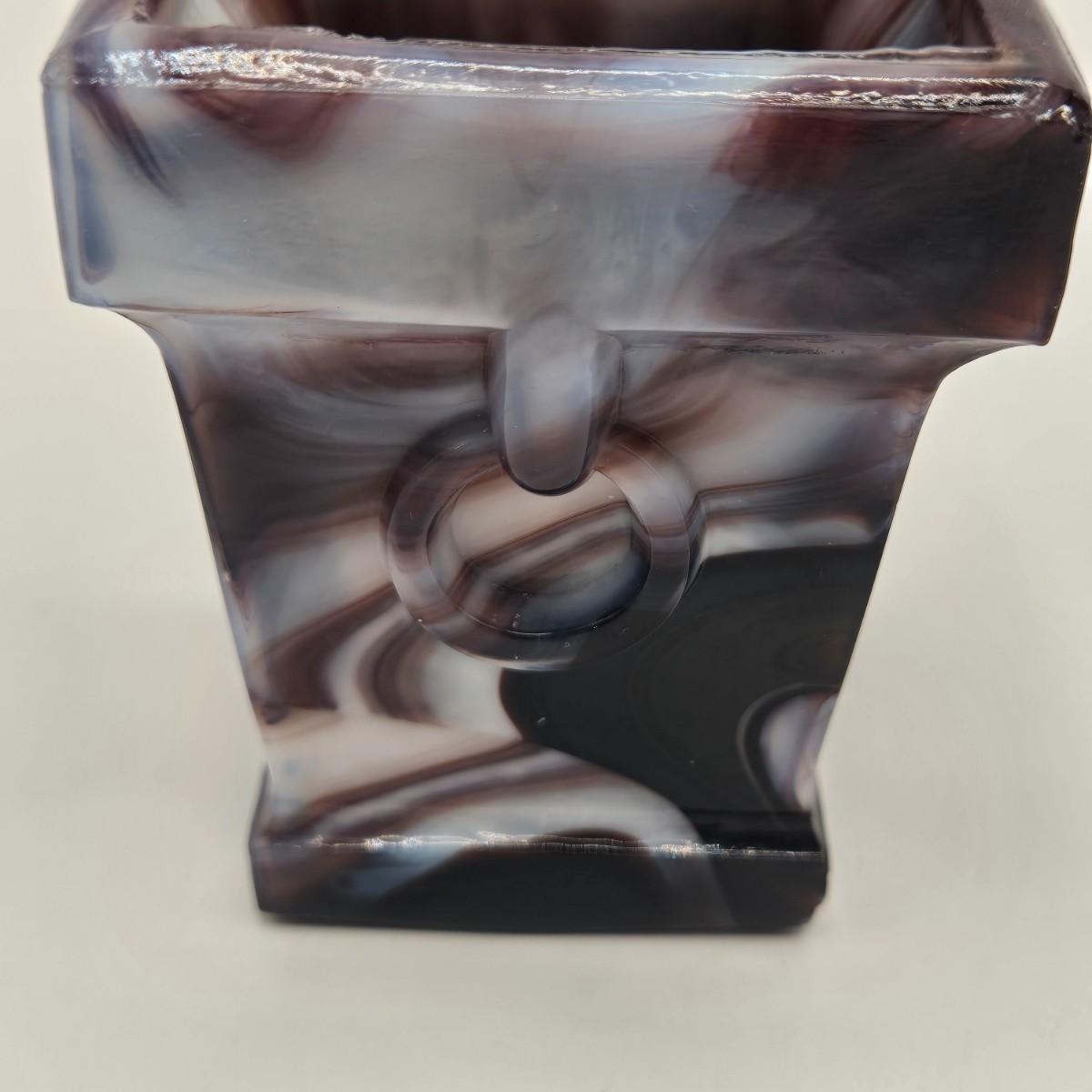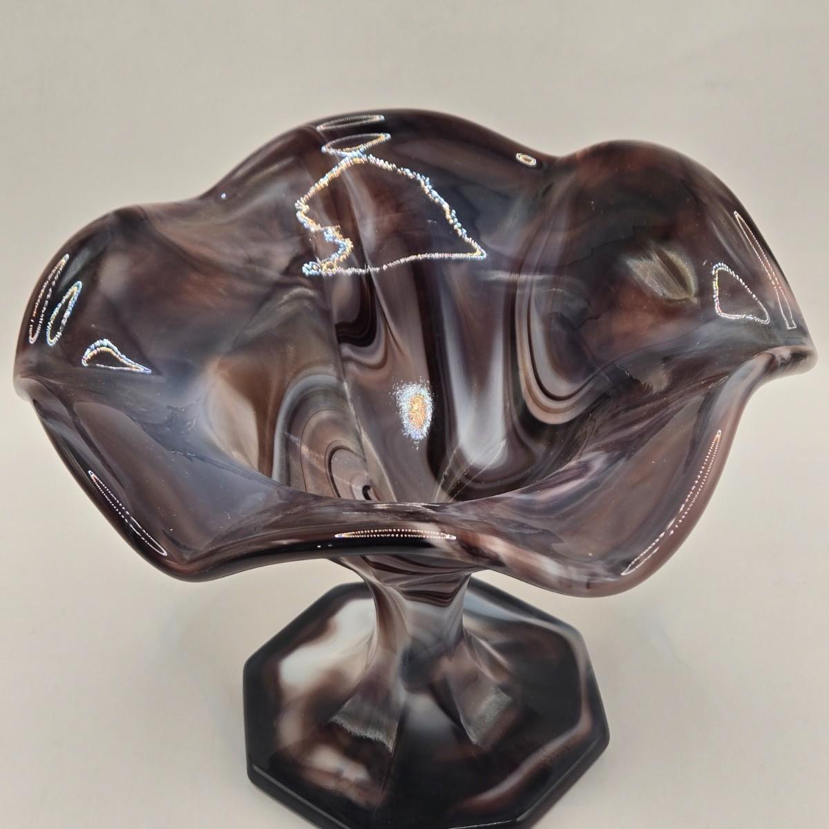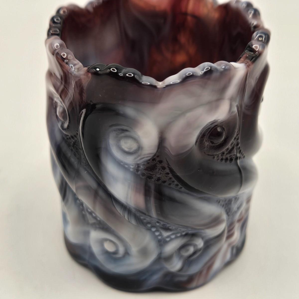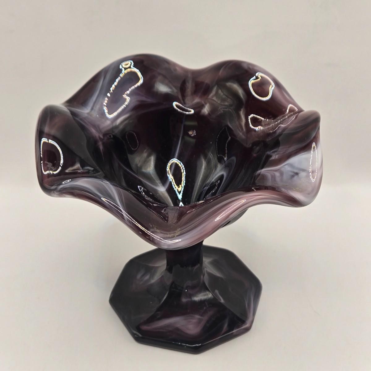 LOT 25L: Two Vintage Slag Candy Dishes with Ruffled Edges and Pedestal Bases, Round Candy Dish , and Two Toothpick Holders