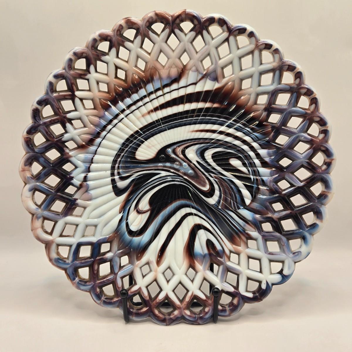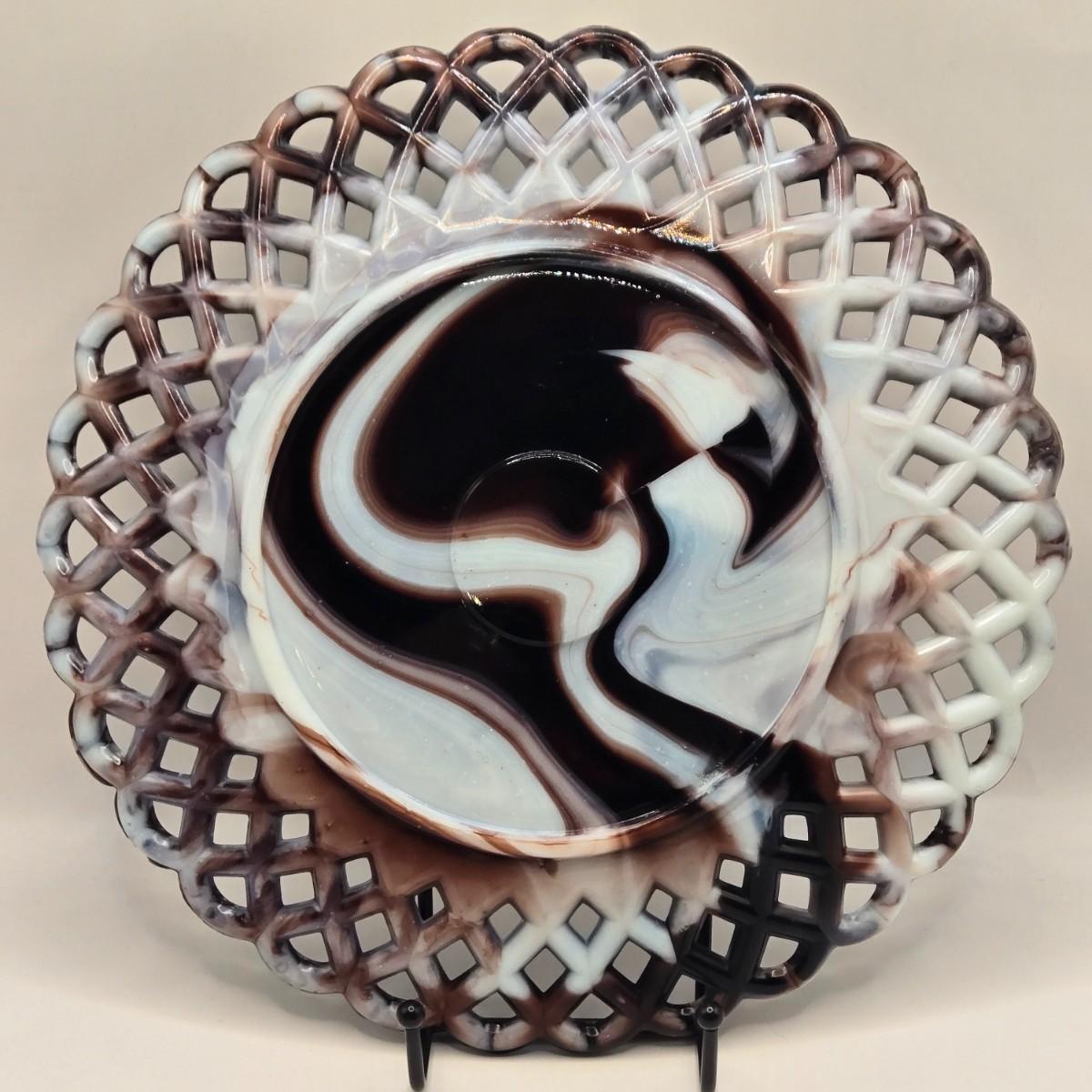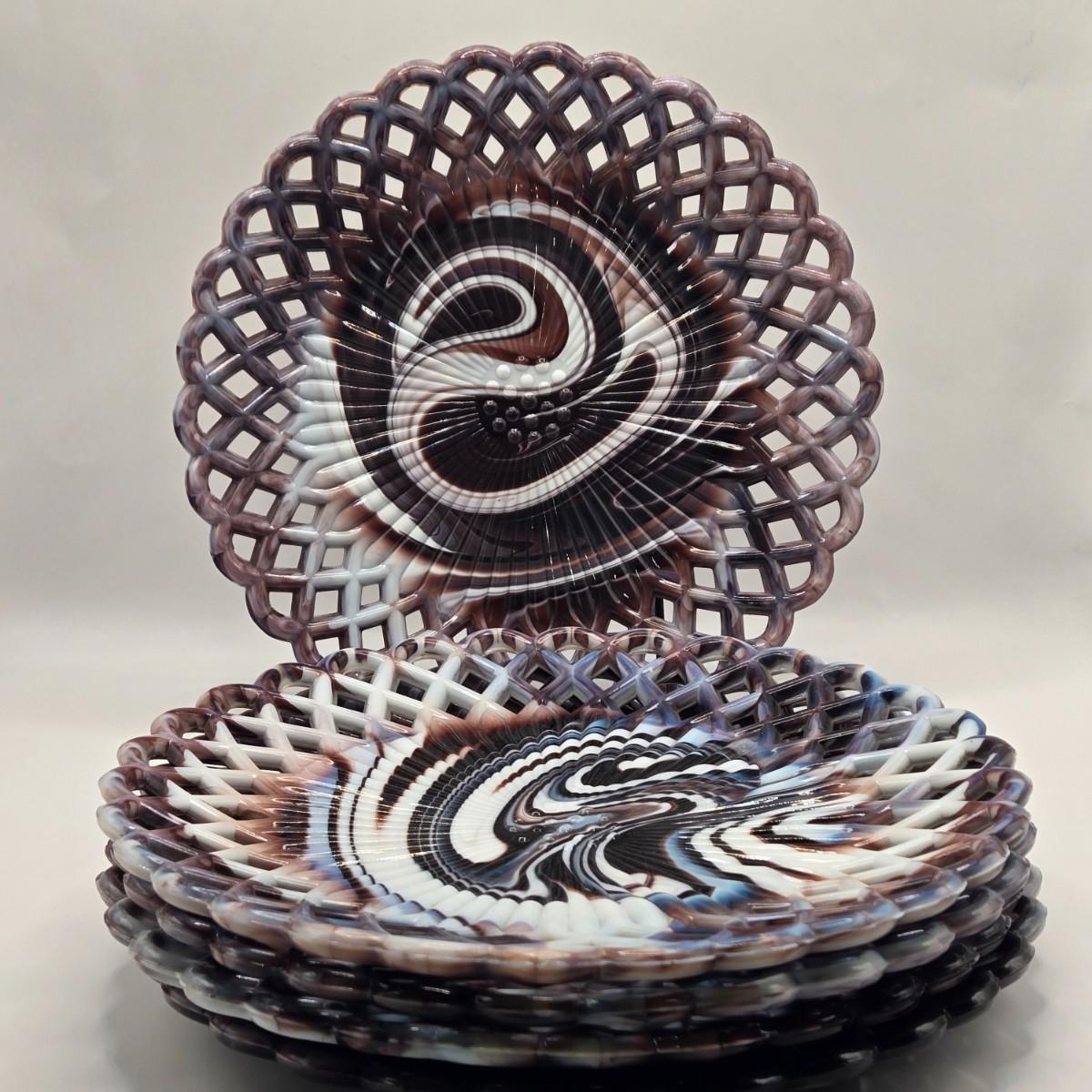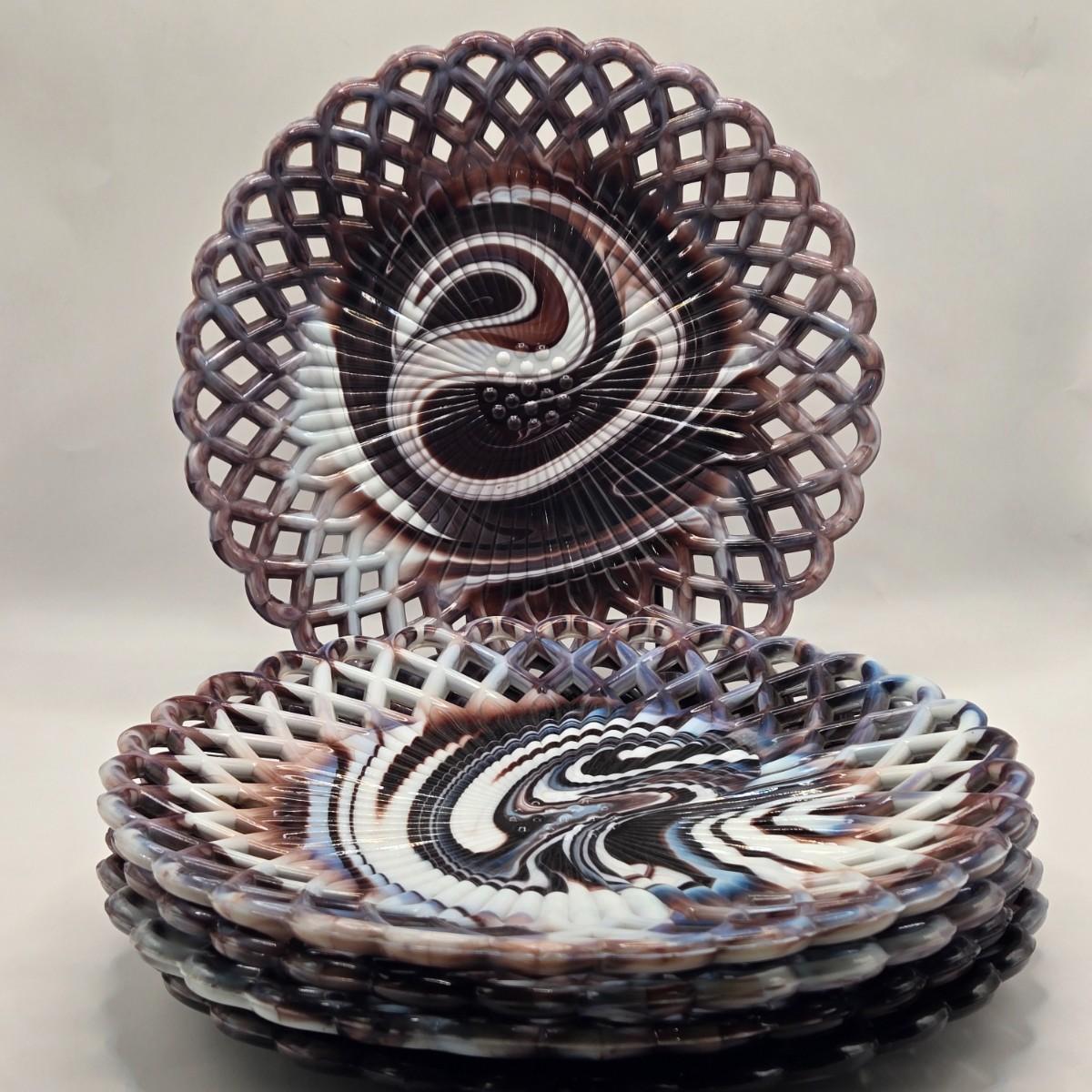 LOT 28L: Five Vintage Slag Glass Ribbon Plates