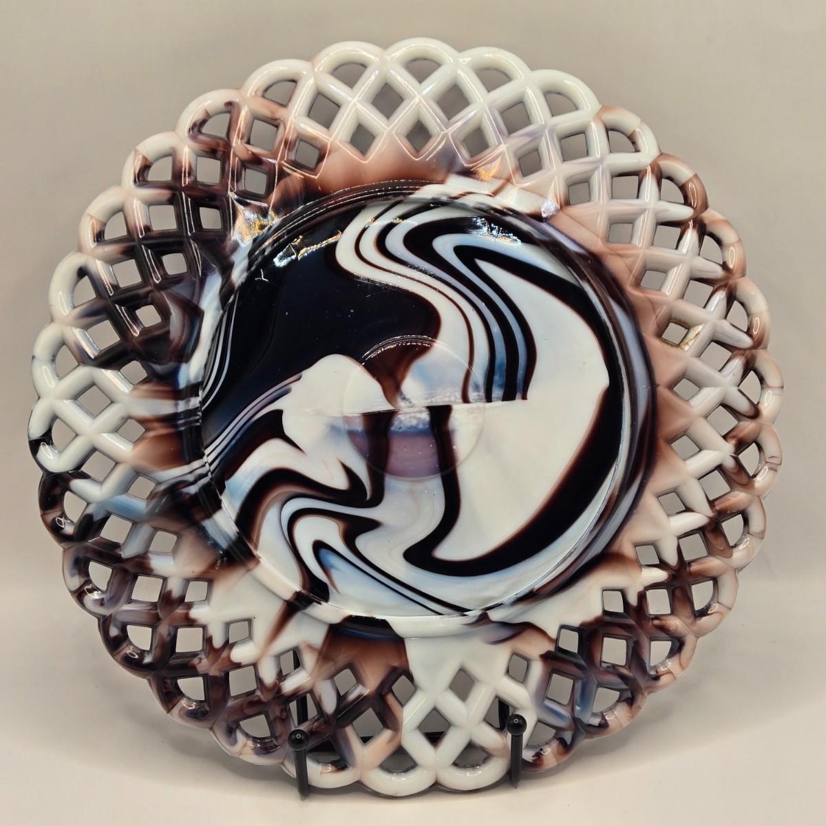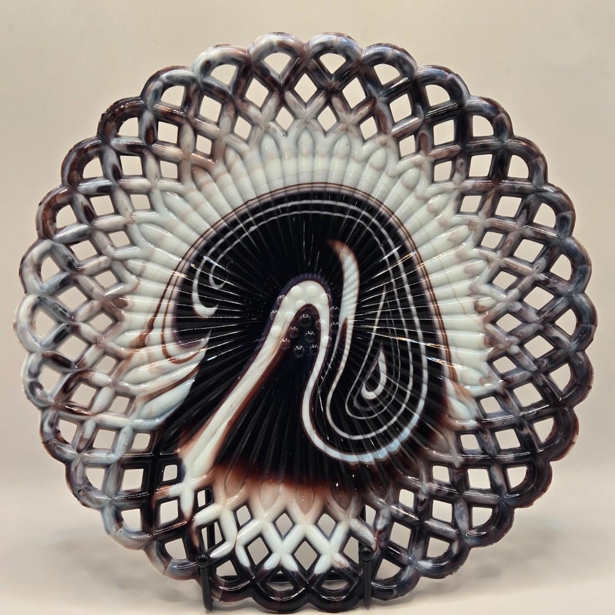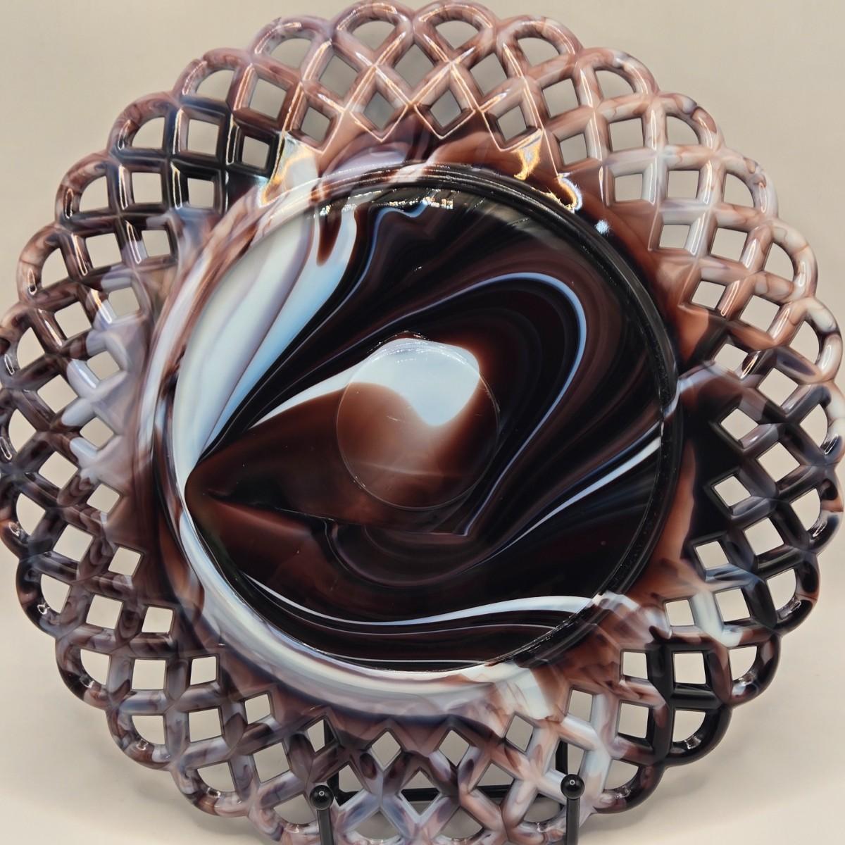 LOT 28L: Five Vintage Slag Glass Ribbon Plates