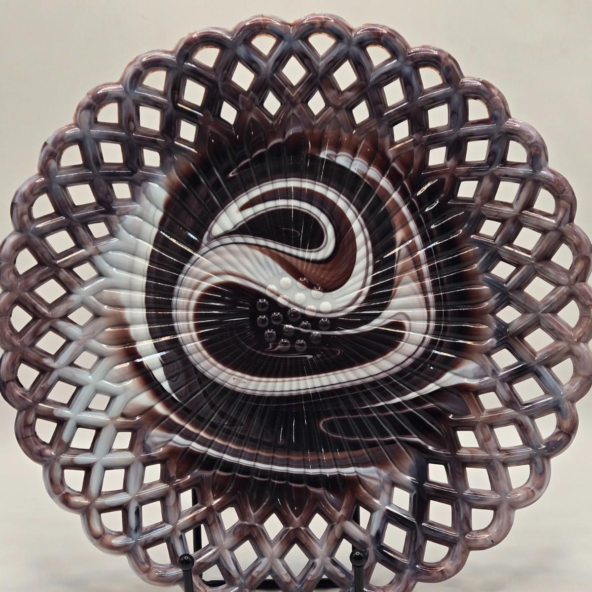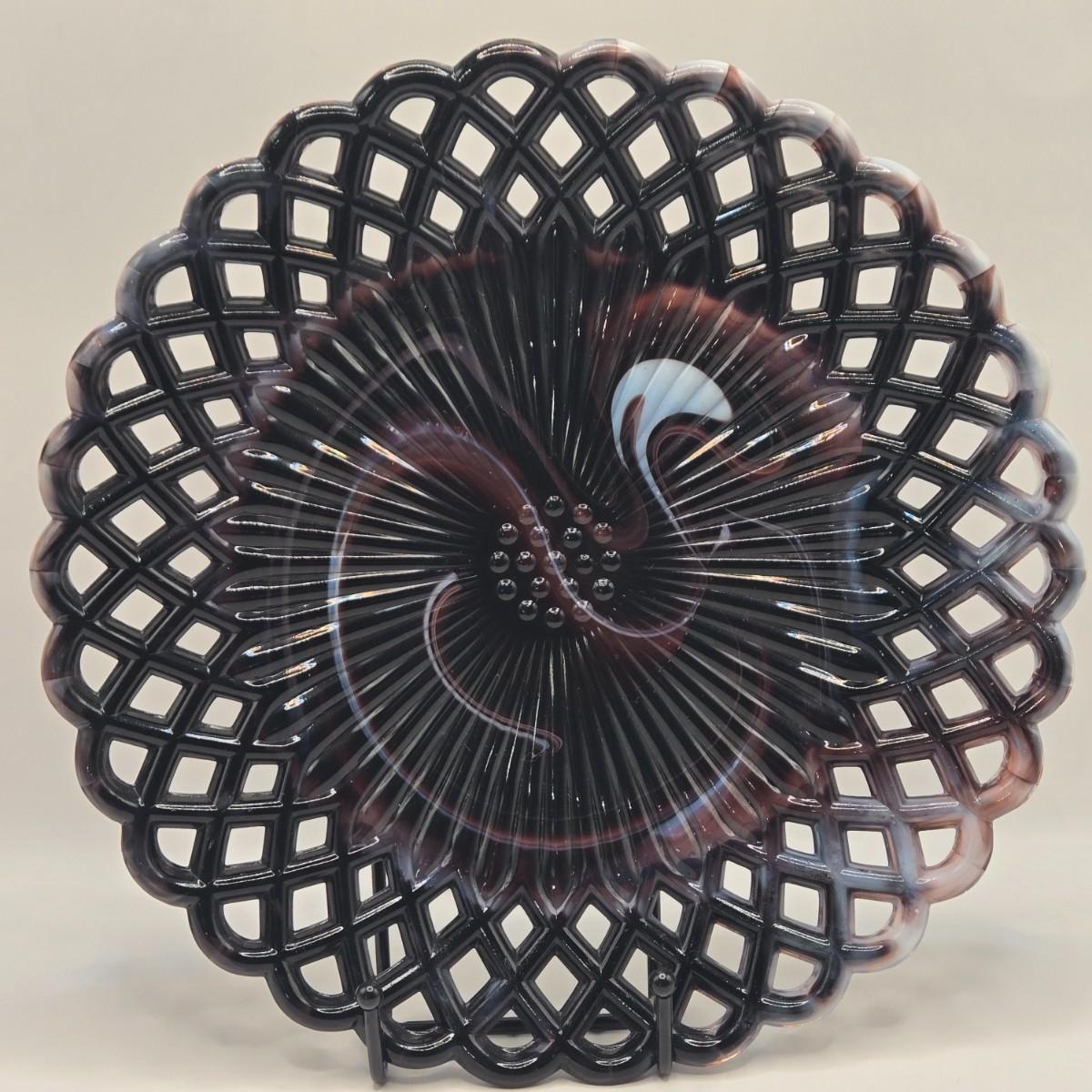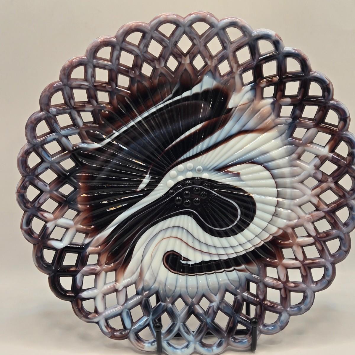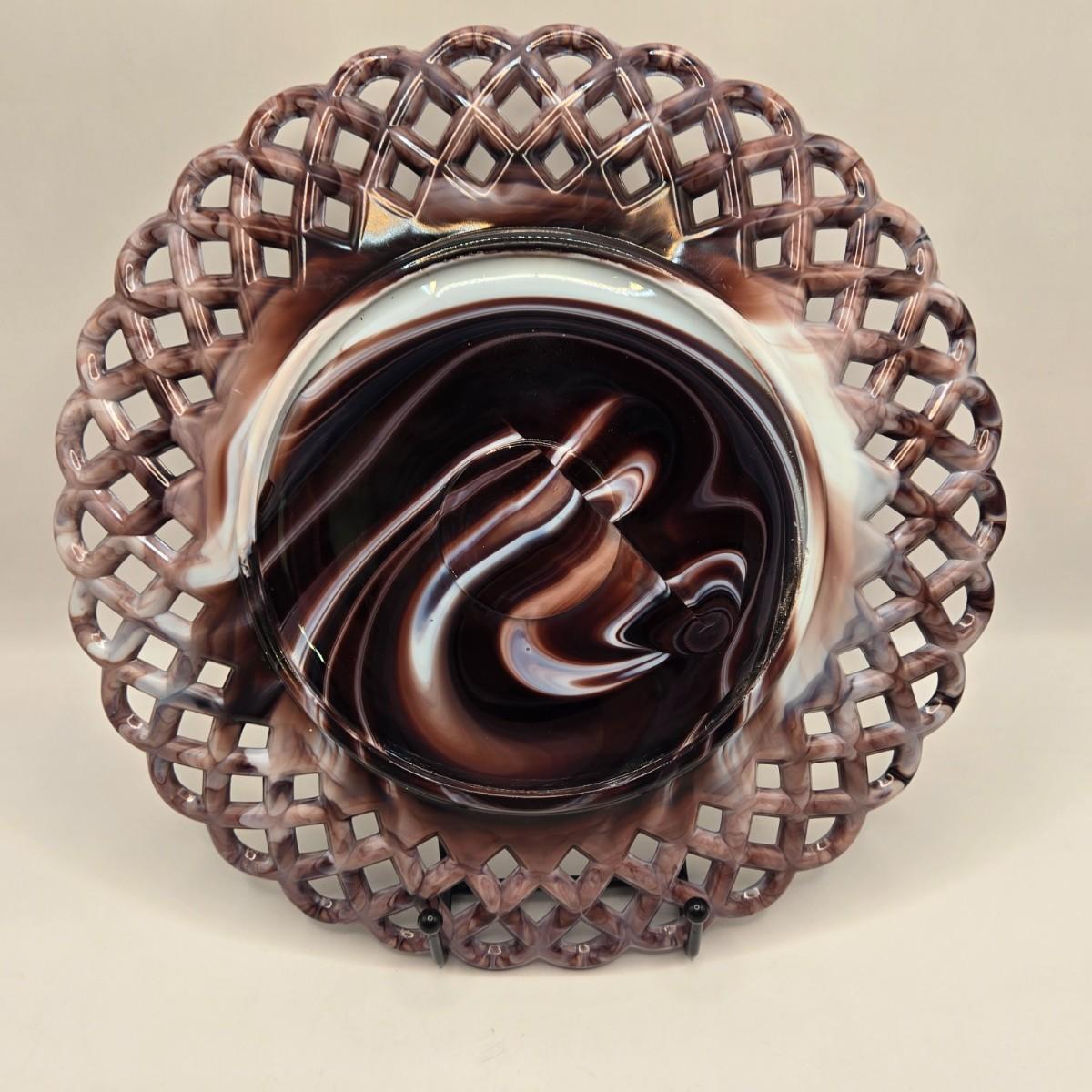 LOT 28L: Five Vintage Slag Glass Ribbon Plates