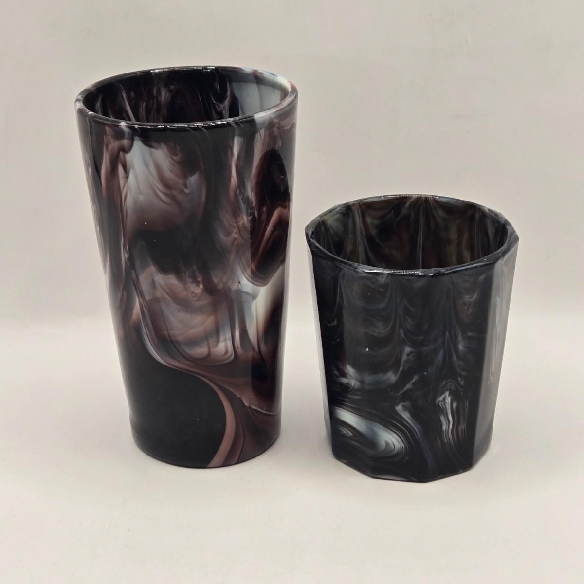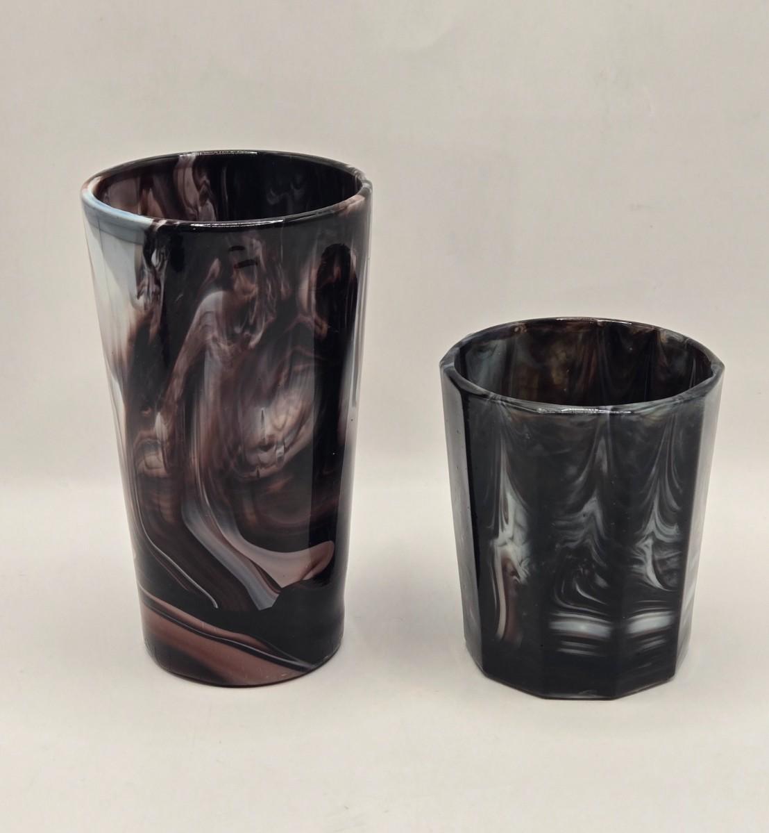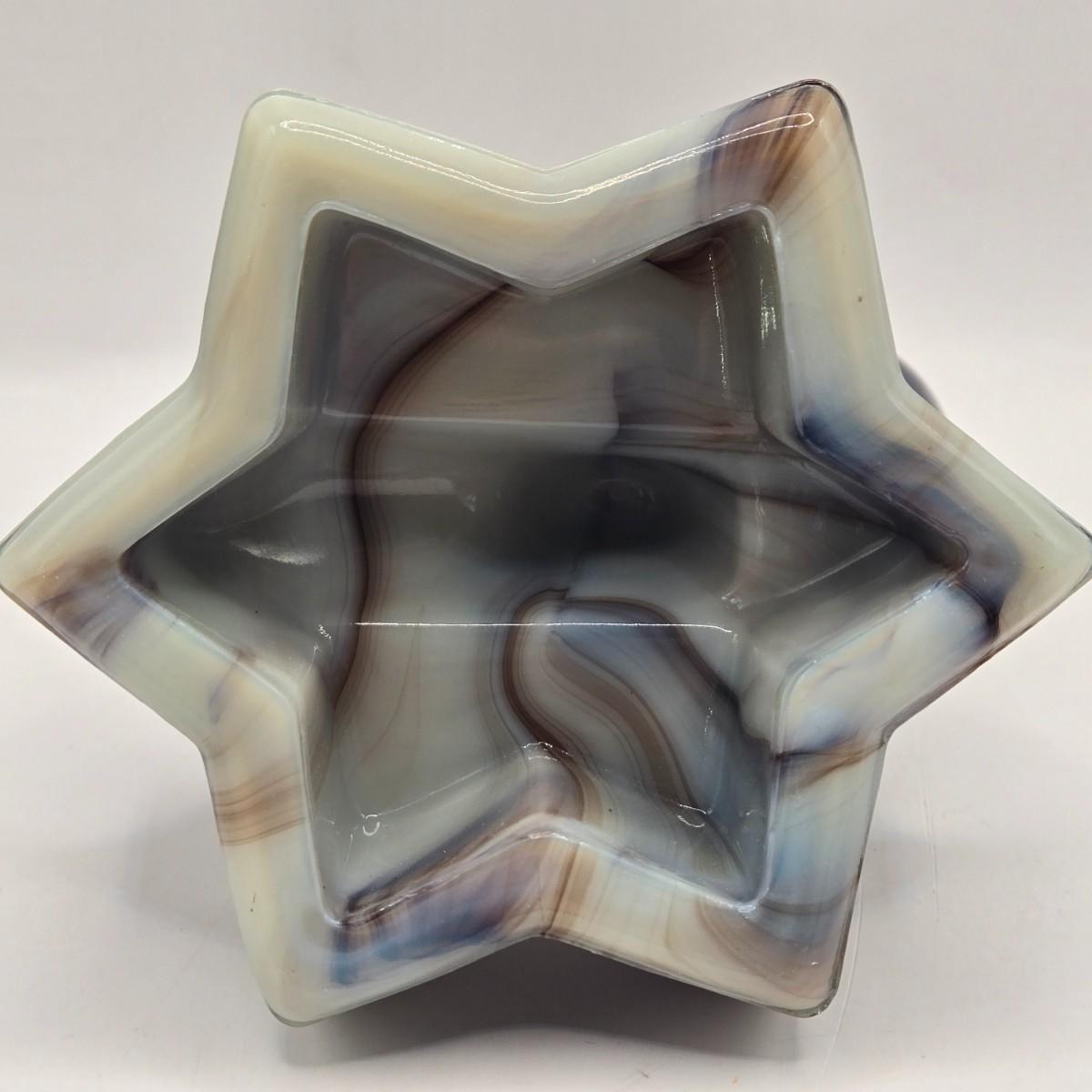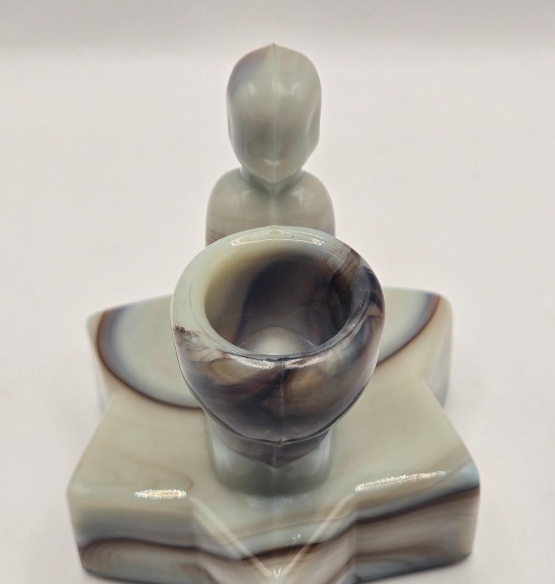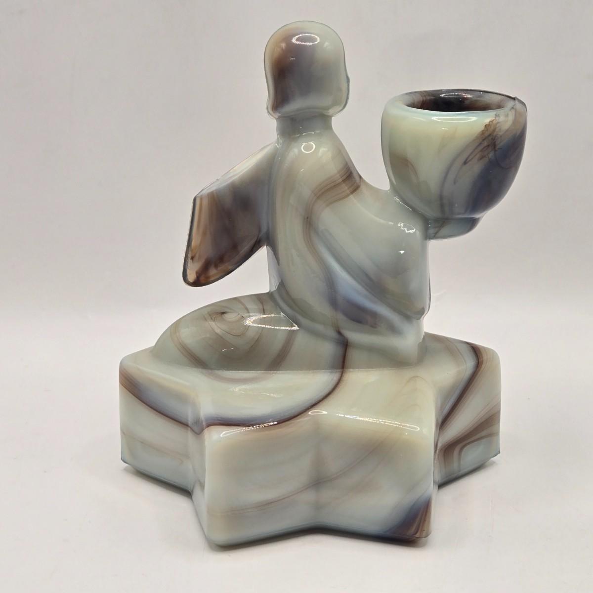 LOT 30L: Vintage Purple Slag Glass Angel on a Star Candle Holder, Small Cornucopia, Creamer/Small Pitcher, and Two Tumbler Glasses