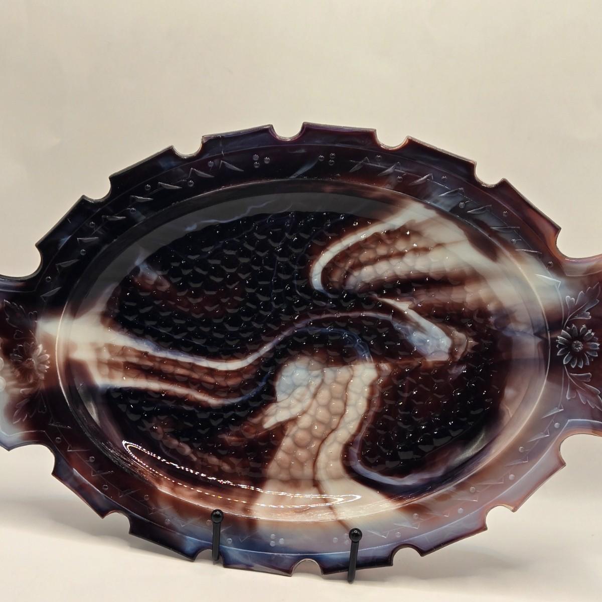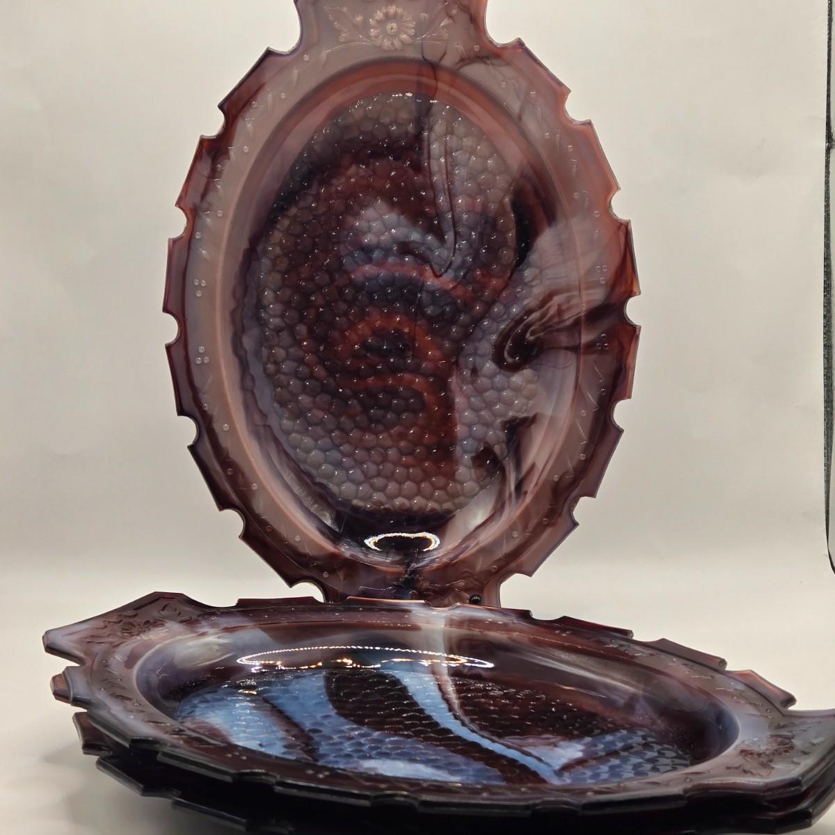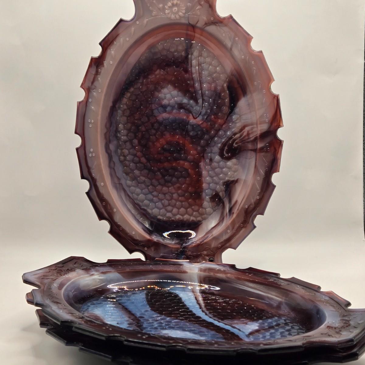 LOT 31L: Three Notched Border Purple Slag Glass Serving Platters