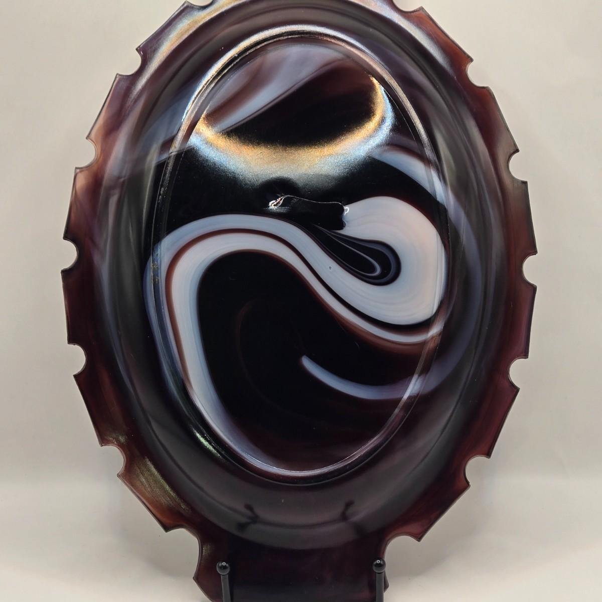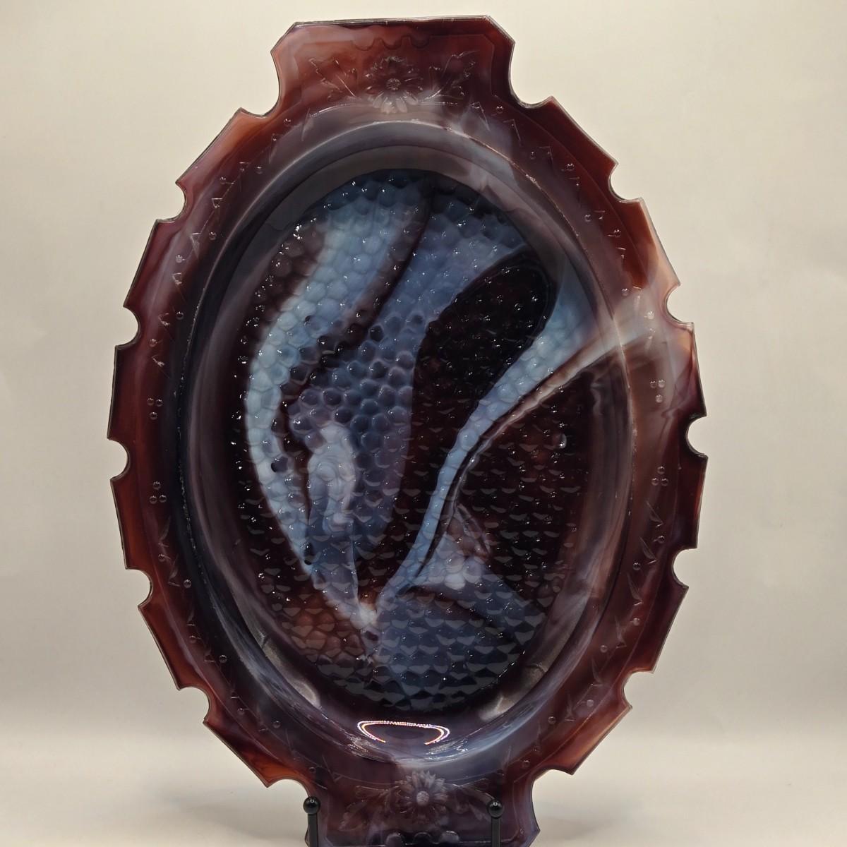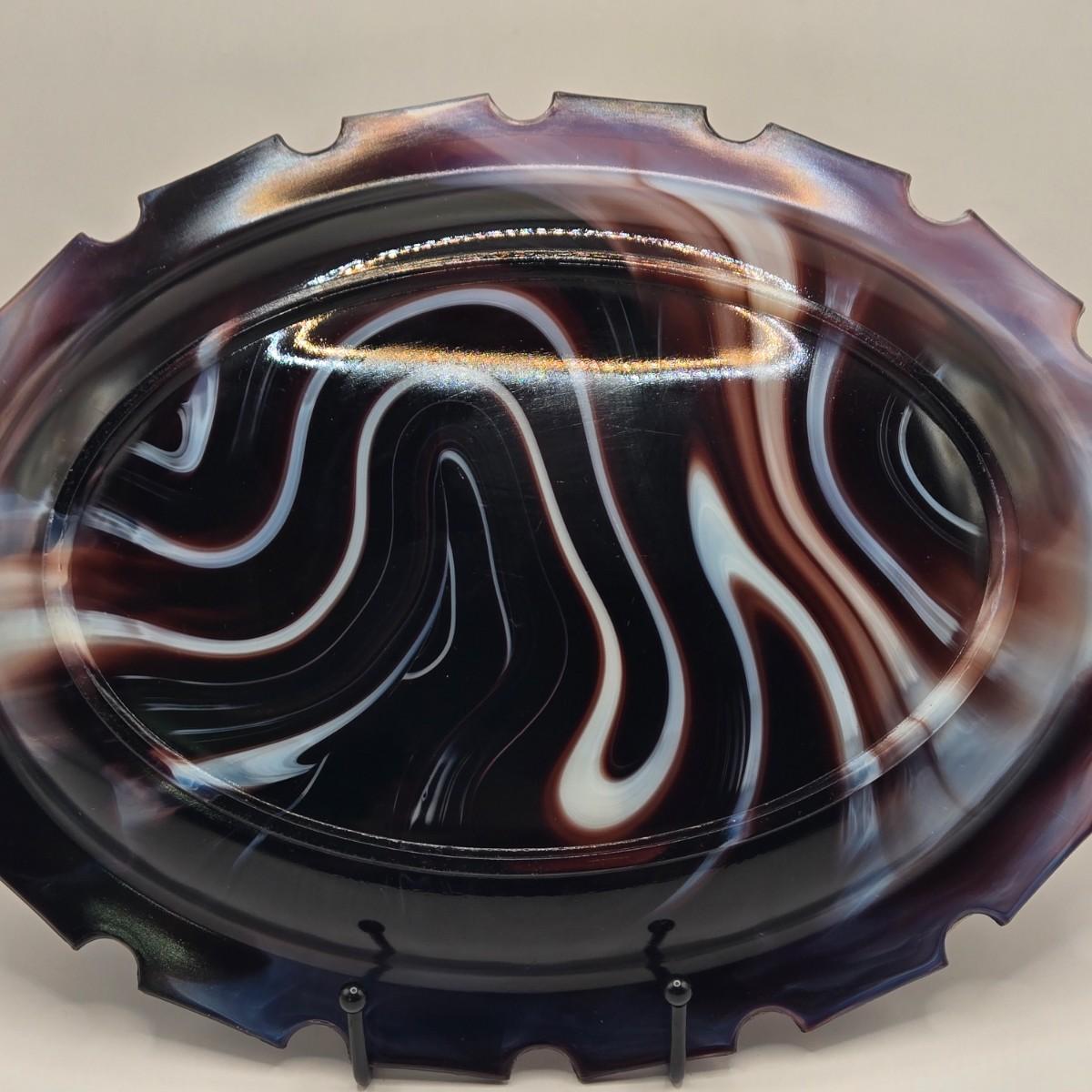 LOT 31L: Three Notched Border Purple Slag Glass Serving Platters