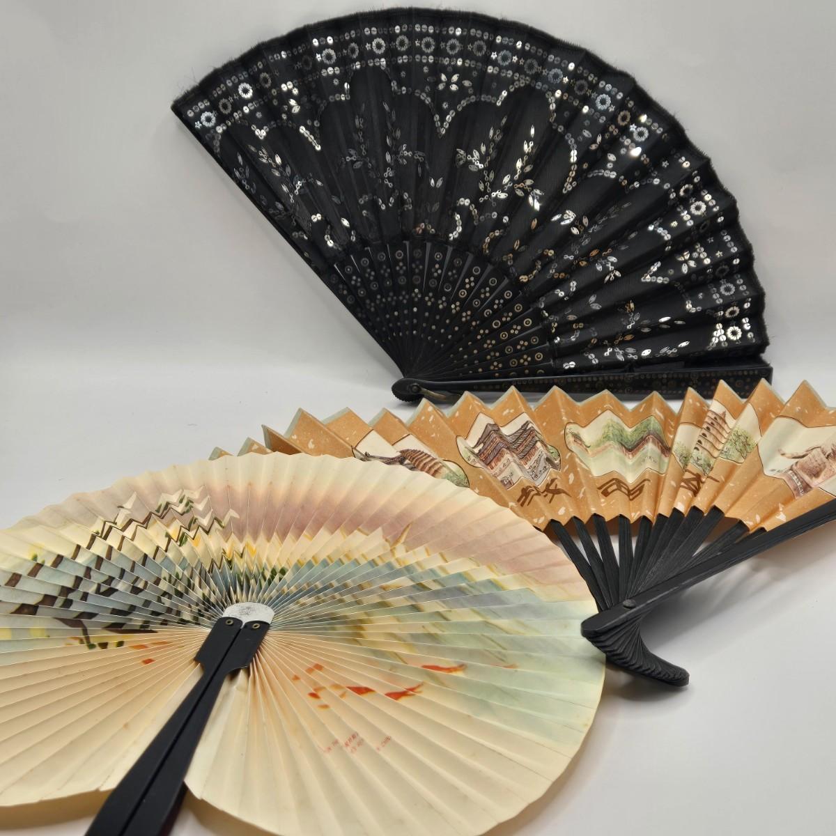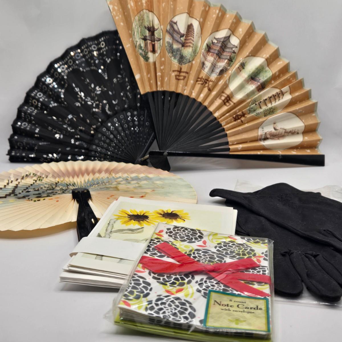 LOT 35L: Ladies Hand Fans. Dress Gloves, and Stationary