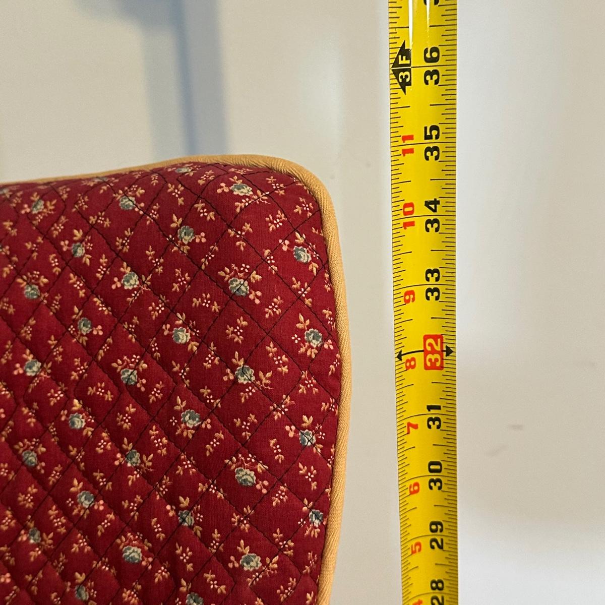 Chairs have tears under covers, Table top is 48x30” - Please see all pictures as they are the best representation of the items. The pictures show condition, measurements if taken, and what is included in the lot. Due to the large amount that we photograph and the time frame, we are not always able to take measurements. All items unless noted, are pre-owned and have been used. If you purchased furniture, you must bring help. We do not allow one person to carry large furniture out on their own. Bring help, tools and a truck for the safety of our client’s homes, and your personal safety. Any damages that result to the property including walls, and floors due to moving of the furniture will be charged to the buyer. Company policy. Thank you.