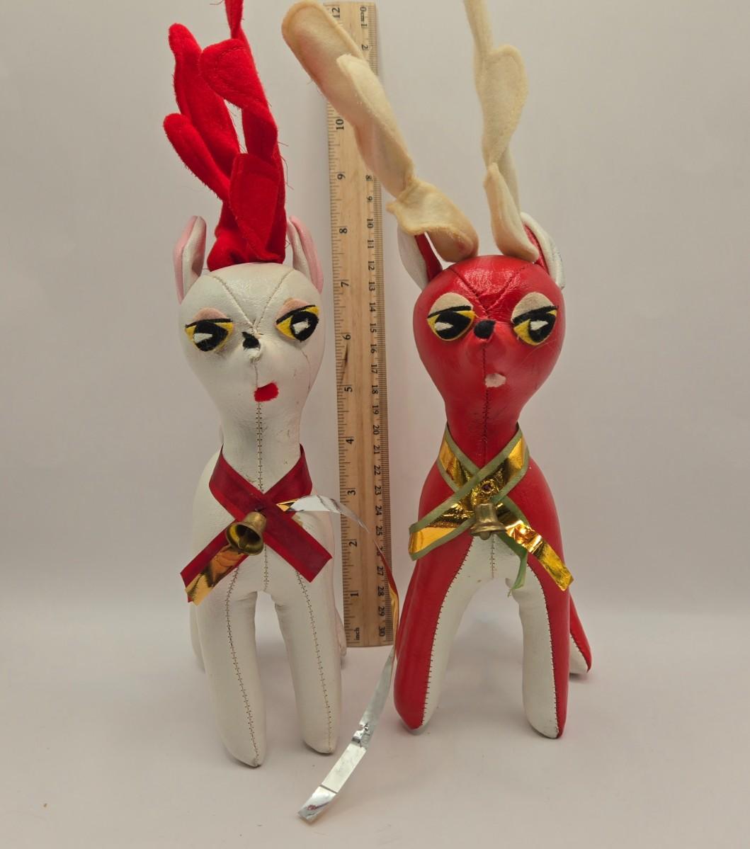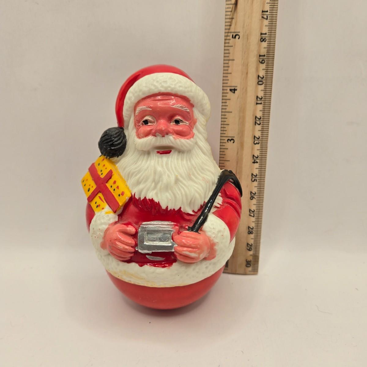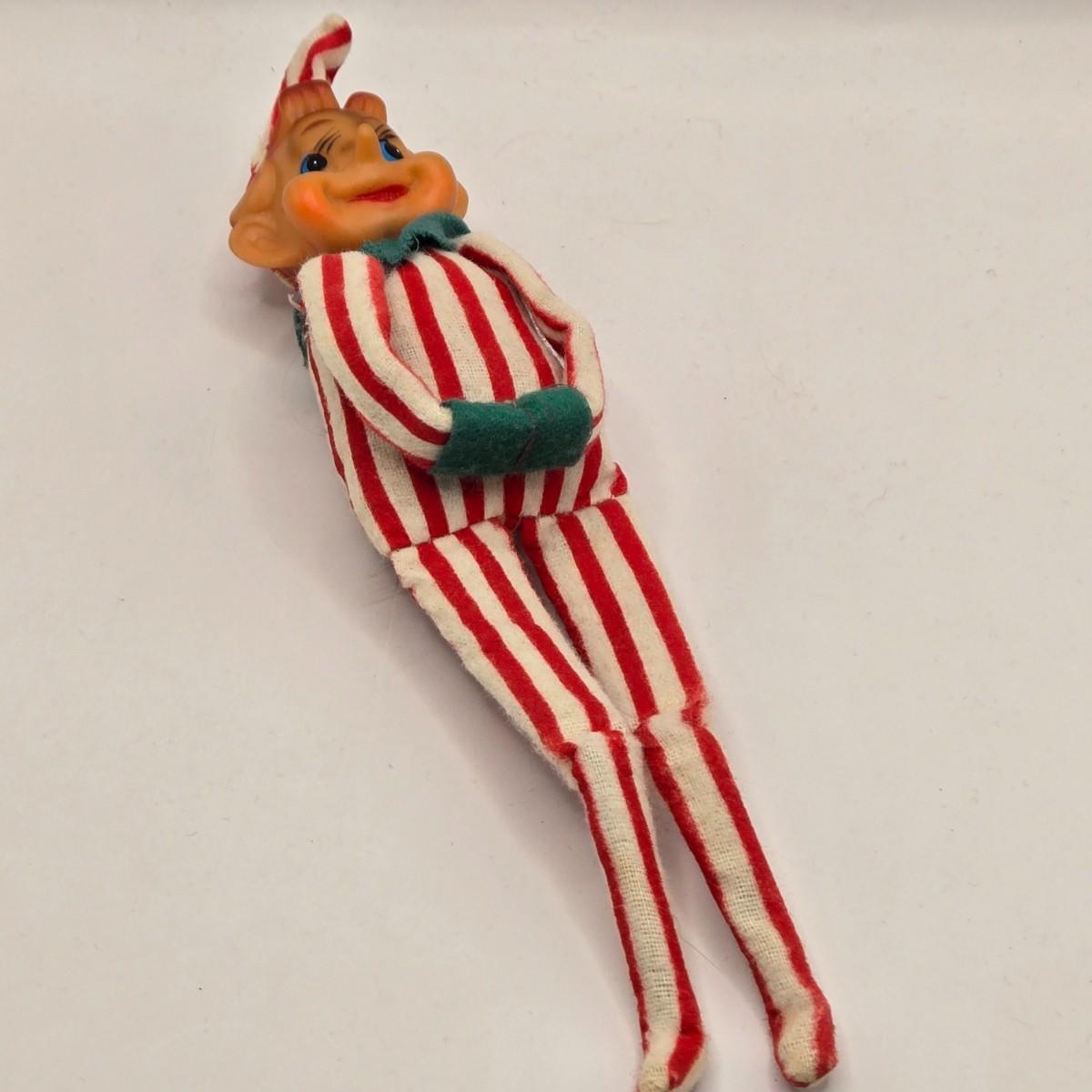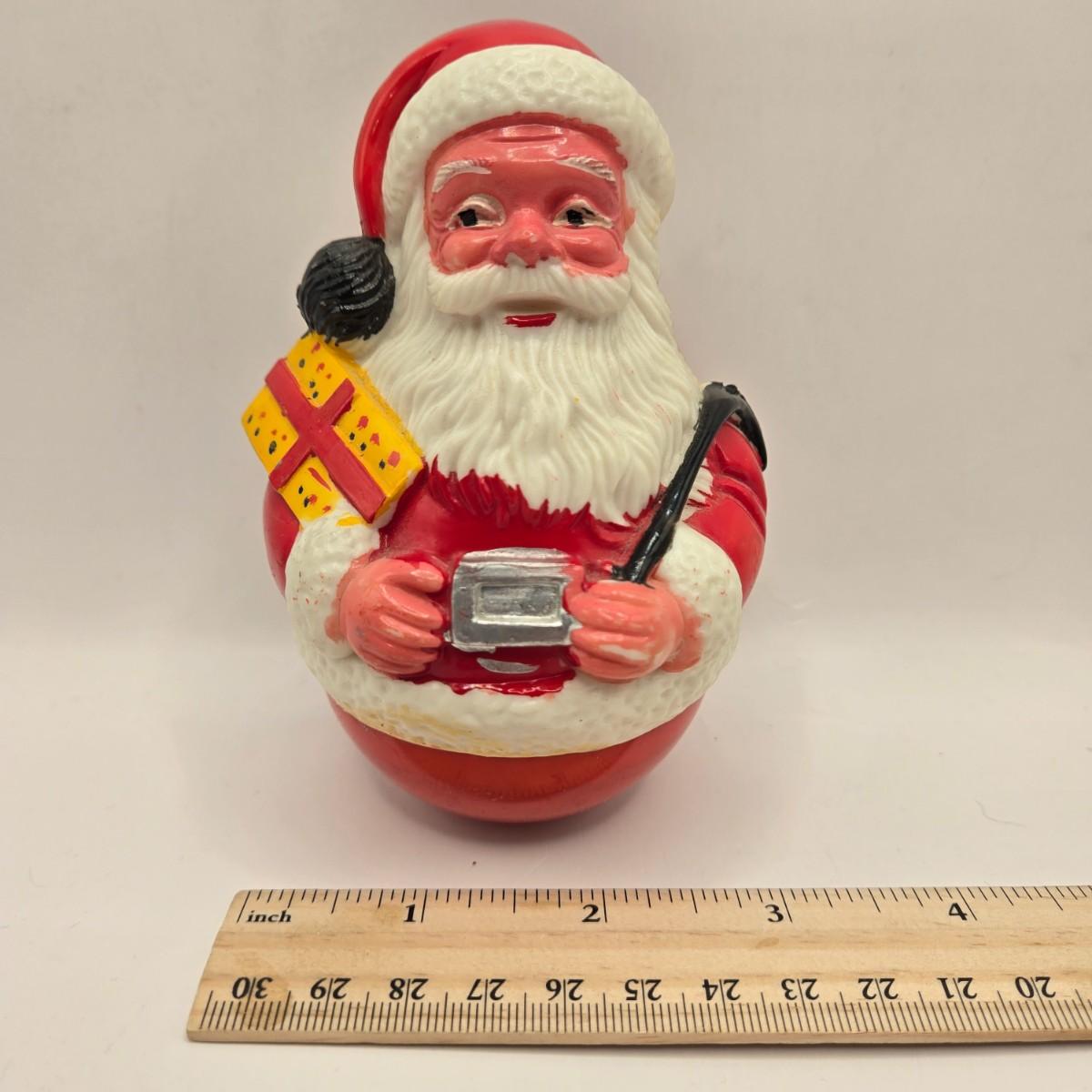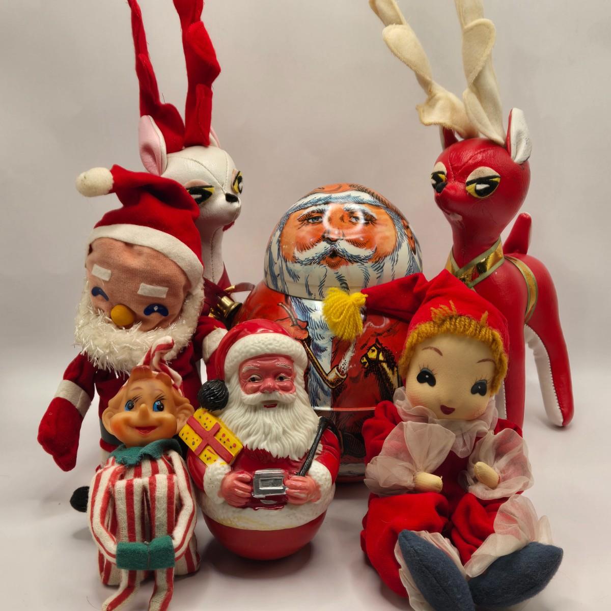 LOT 157L: Dakin Dream Pets Reindeer Pair, Vintage Cheinco Roly Poly Santa Claus, Roly Poly Plastic Santa, 1950s Poseable Elf, Boy That Transforms Into Santa,& Knee Hugger Pixie Elf