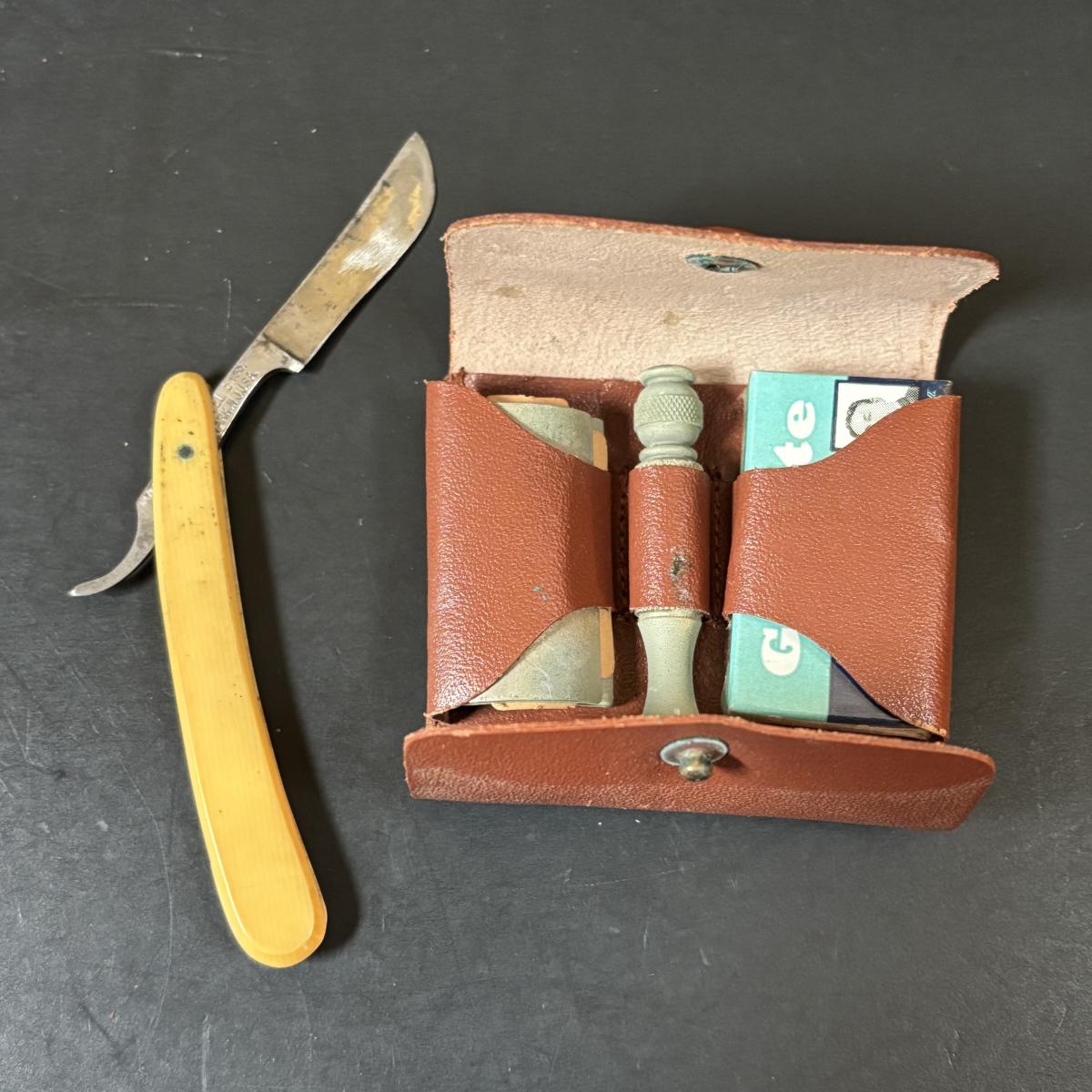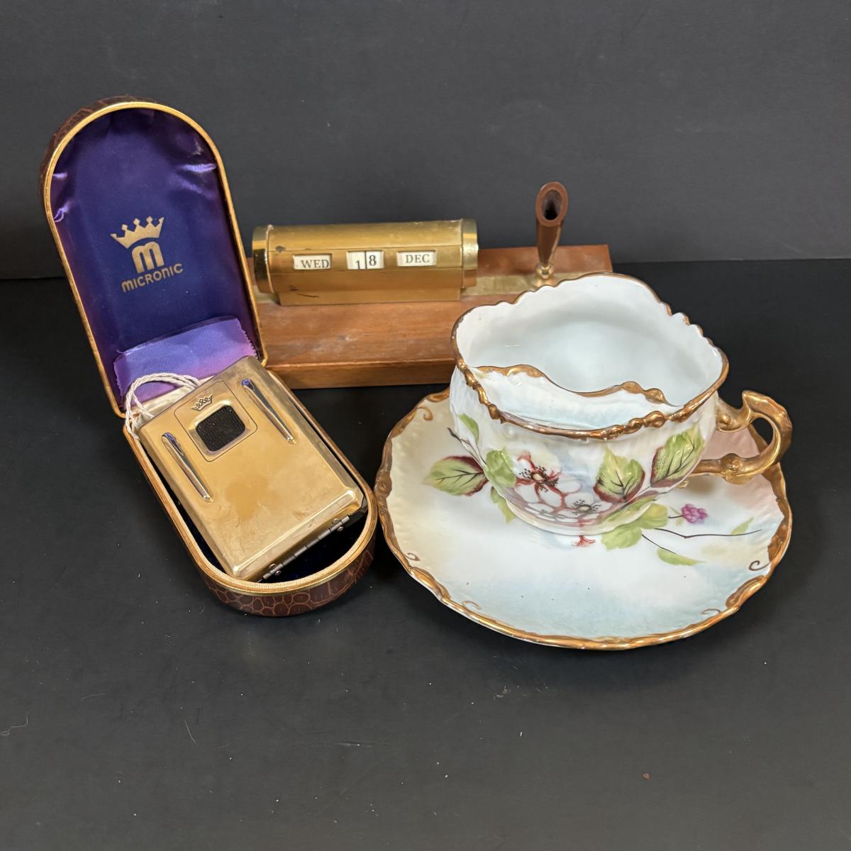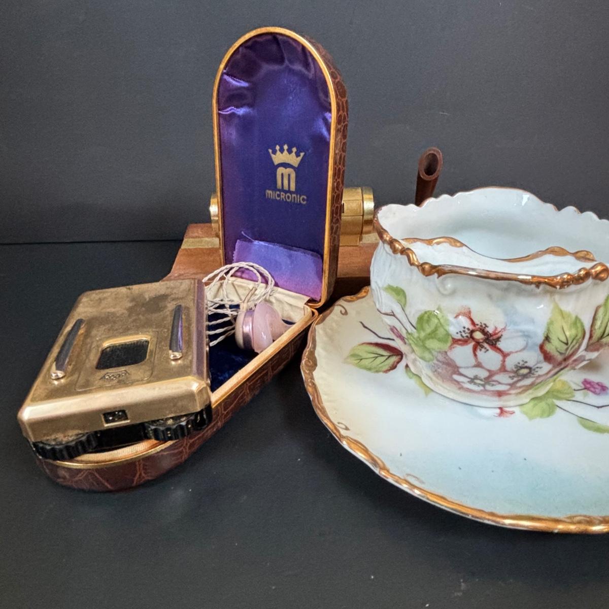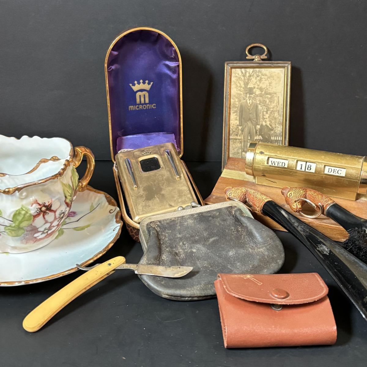 LOT 55: Vintage Audivox, Inc., Micronic Model #303, Antique Brandenburg Porcelain Mustache Cup, Gillett Razor, Schnefel Bros. Straight Edge Razor & More