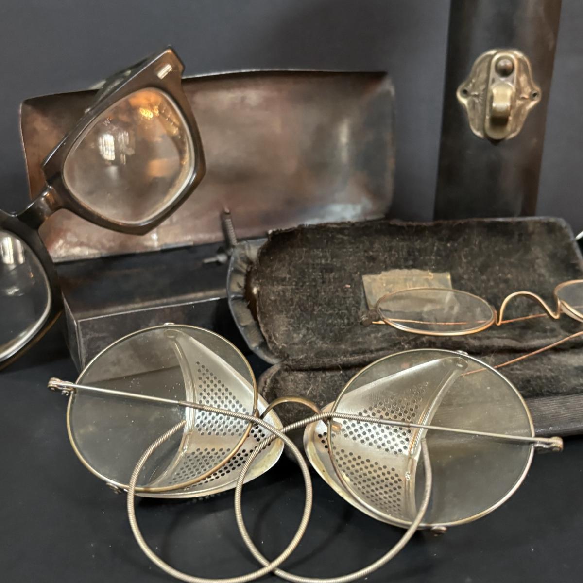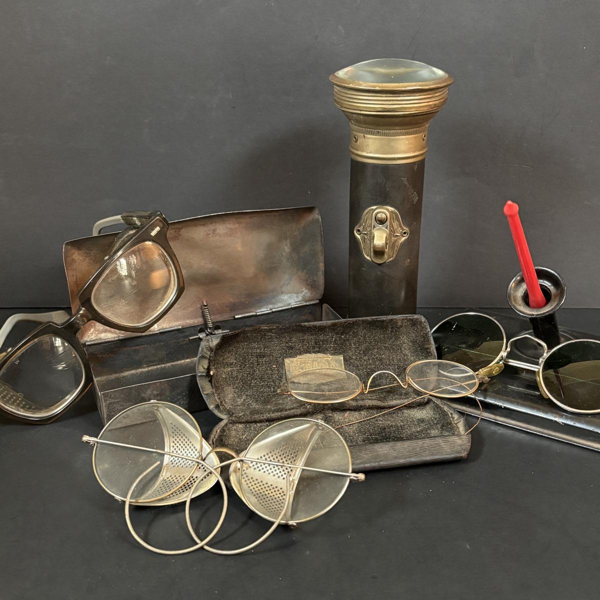 LOT 56: Antique/Vintage Spectacles, Franco Flashlight, Zaner Bloser Dip Pen w./Nib & a Tin Holder