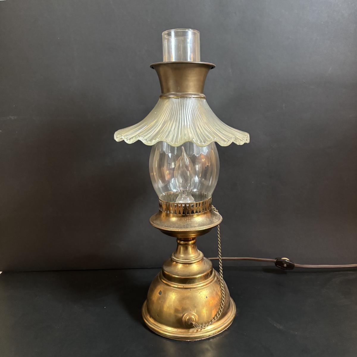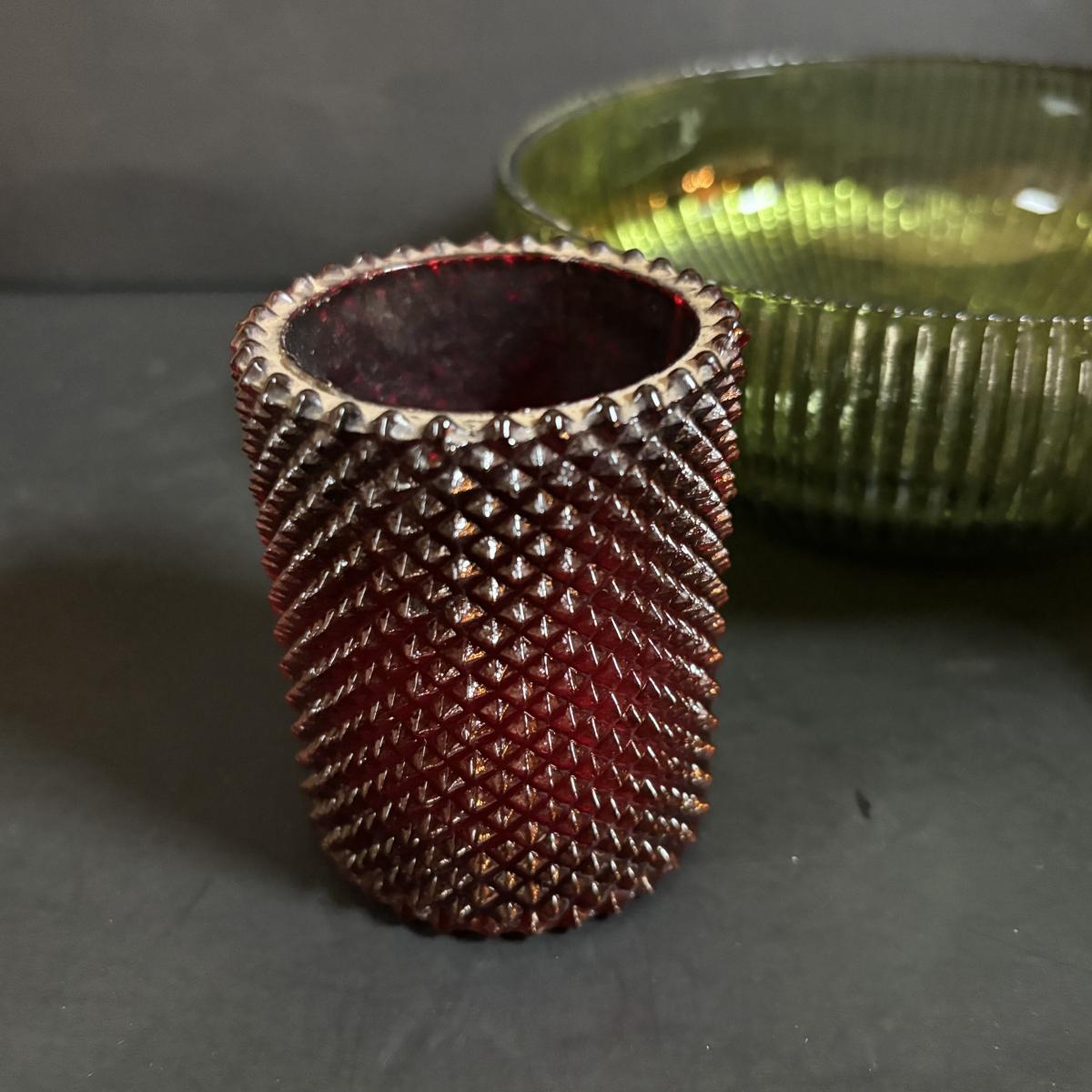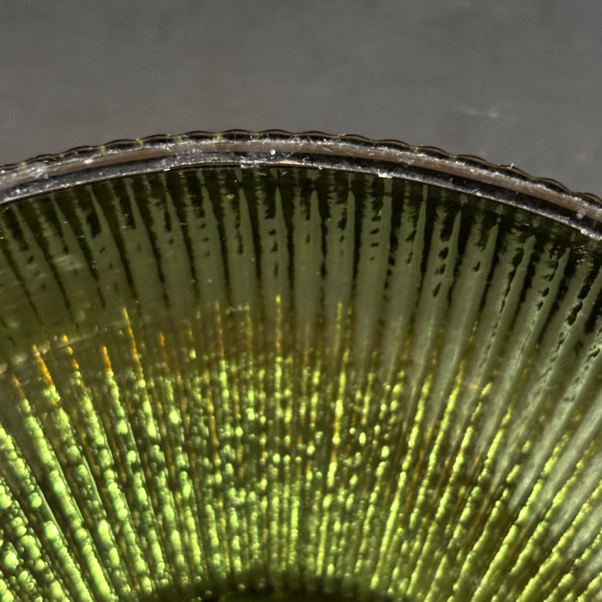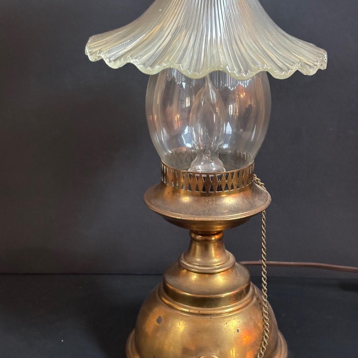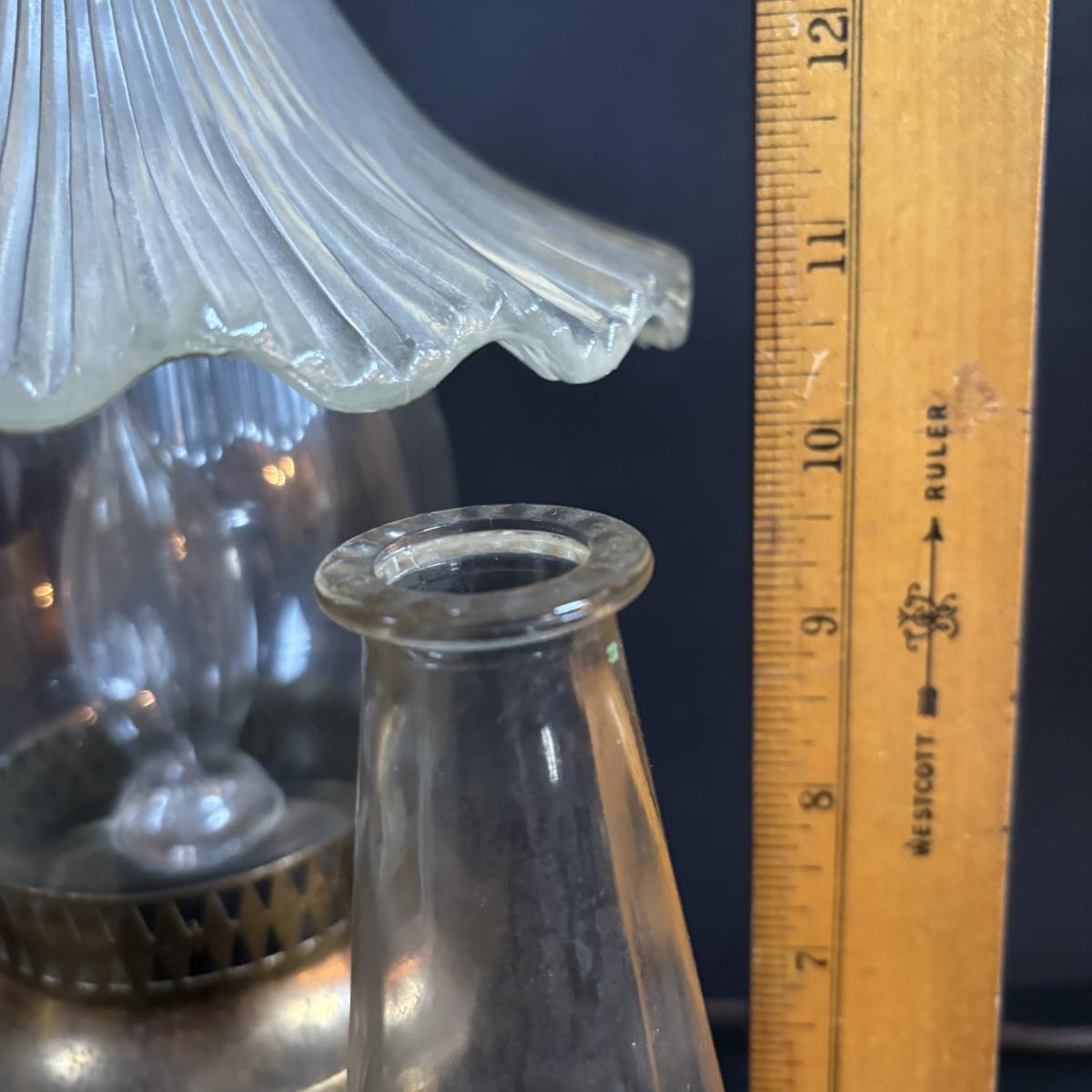 LOT 58: Vintage Olive Green Glass Collection: E.O. Brody Dish, Bucket Ashtray & Boot, Faroy Glass Votive/Toothpick Holder, Patriotic Oil Lamp & Brass Electrified Oil Lamp