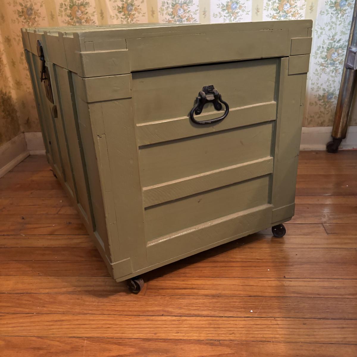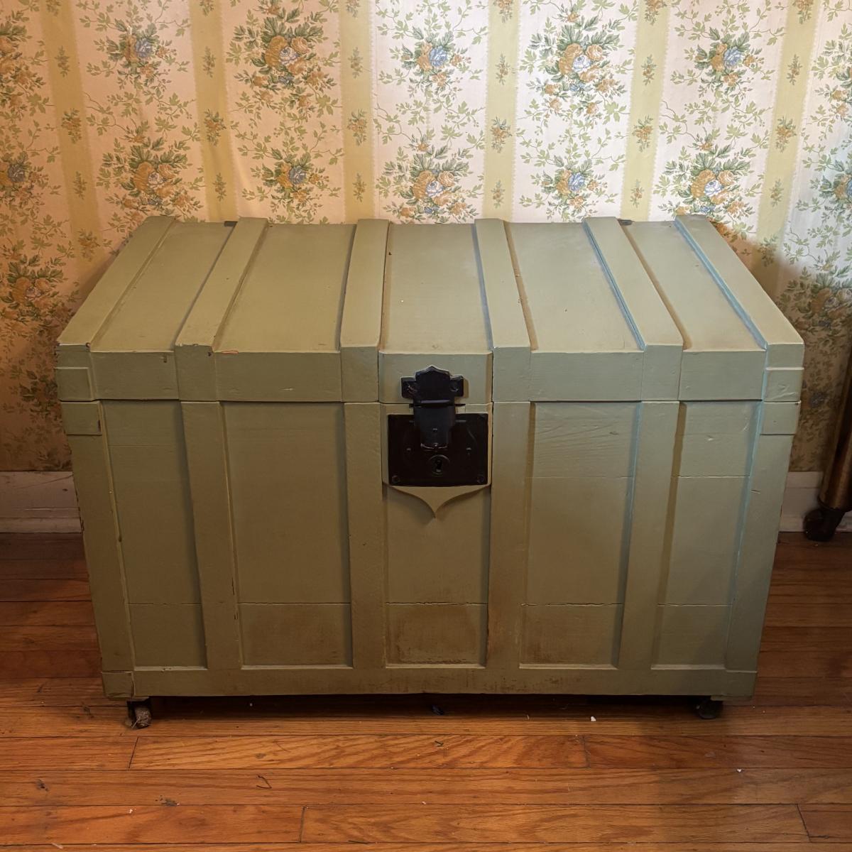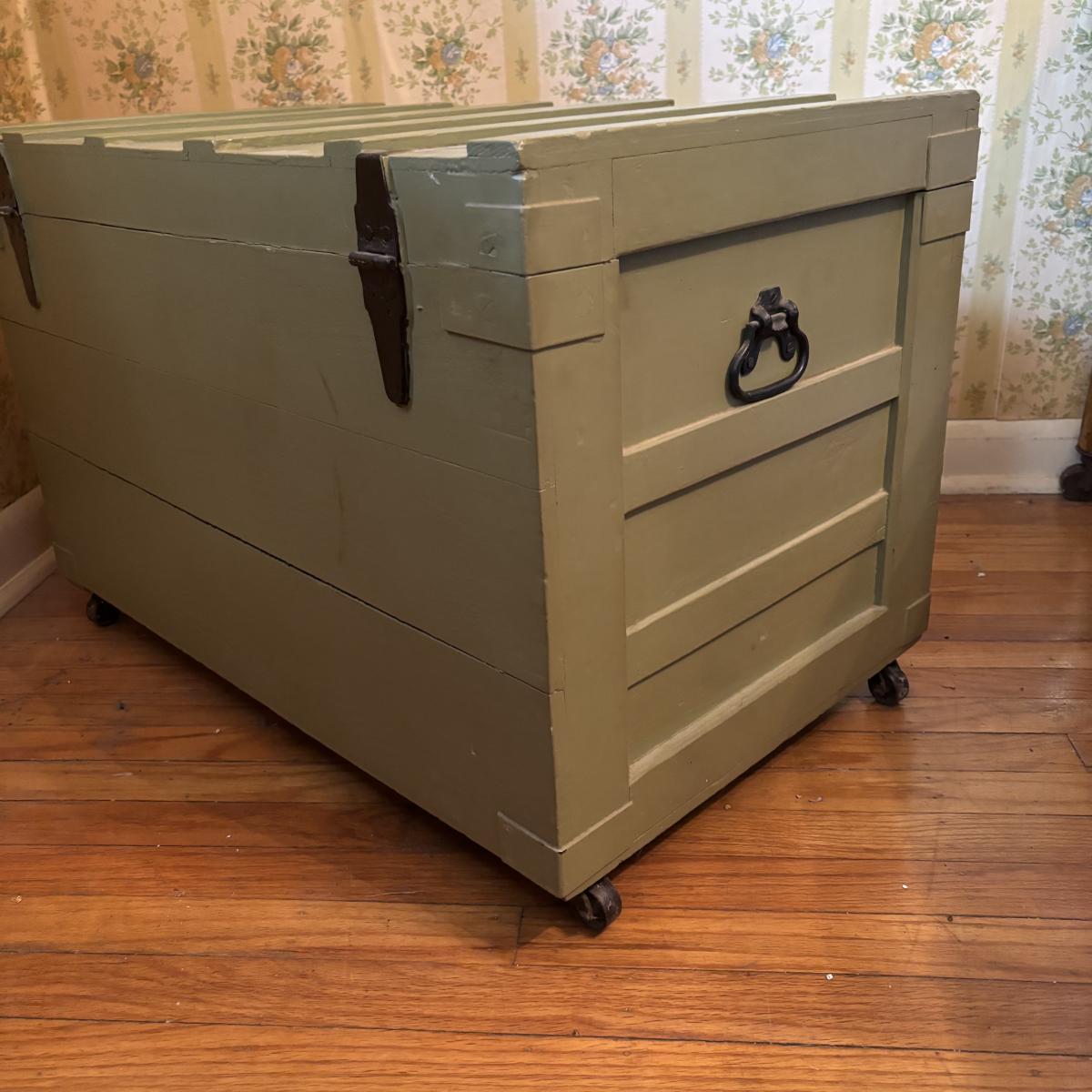 LOT 71: Painted Green Trunk/Chest on Wheels
