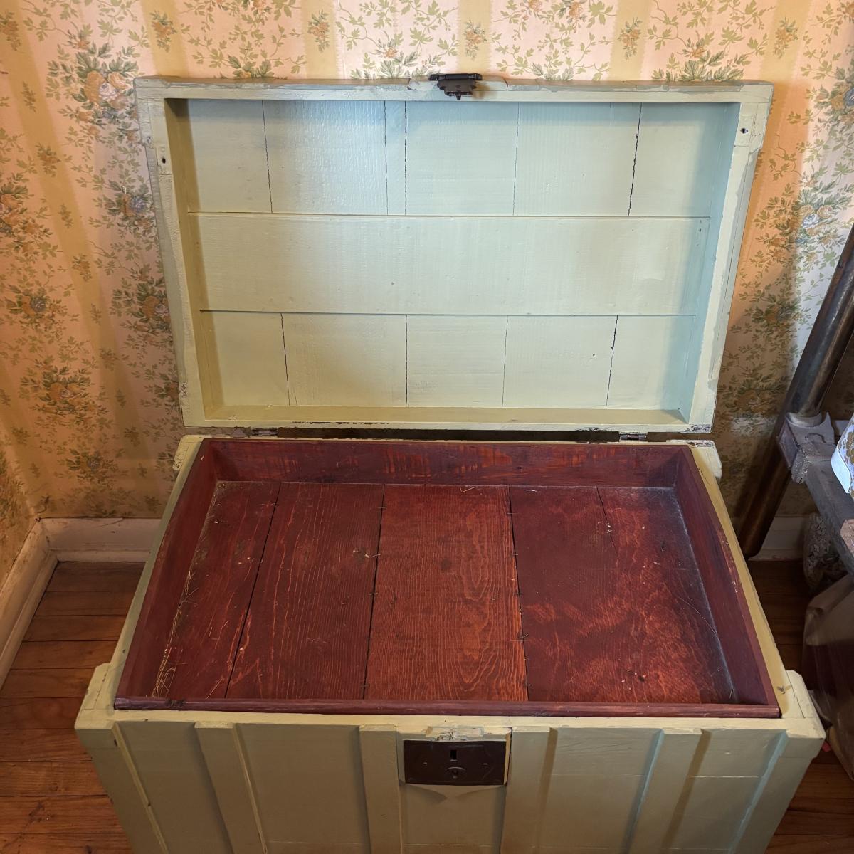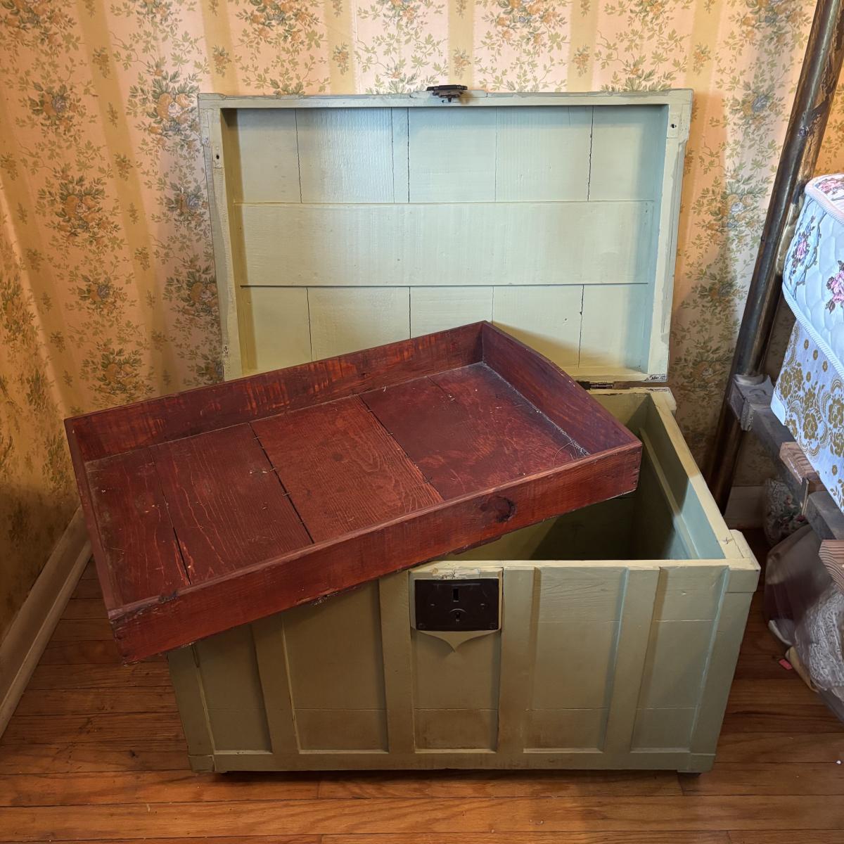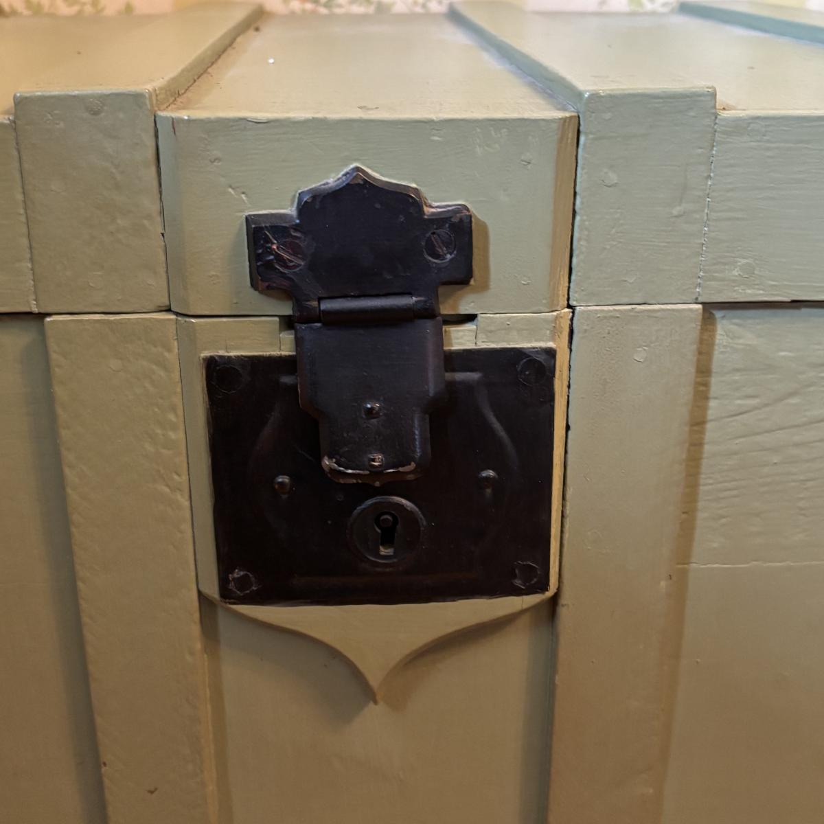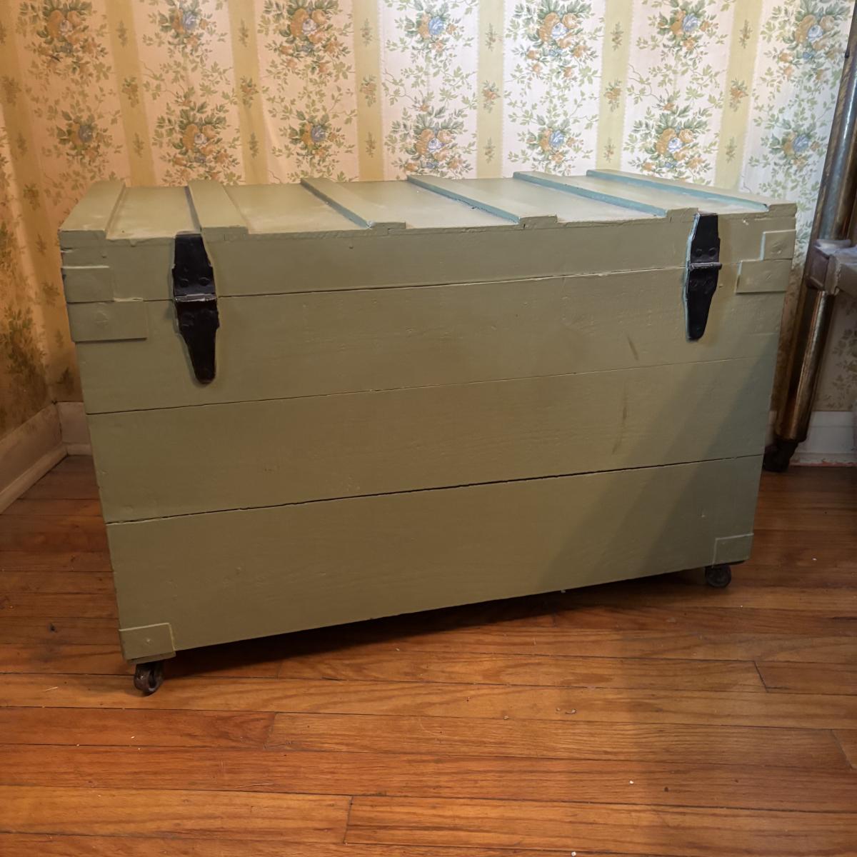 LOT 71: Painted Green Trunk/Chest on Wheels