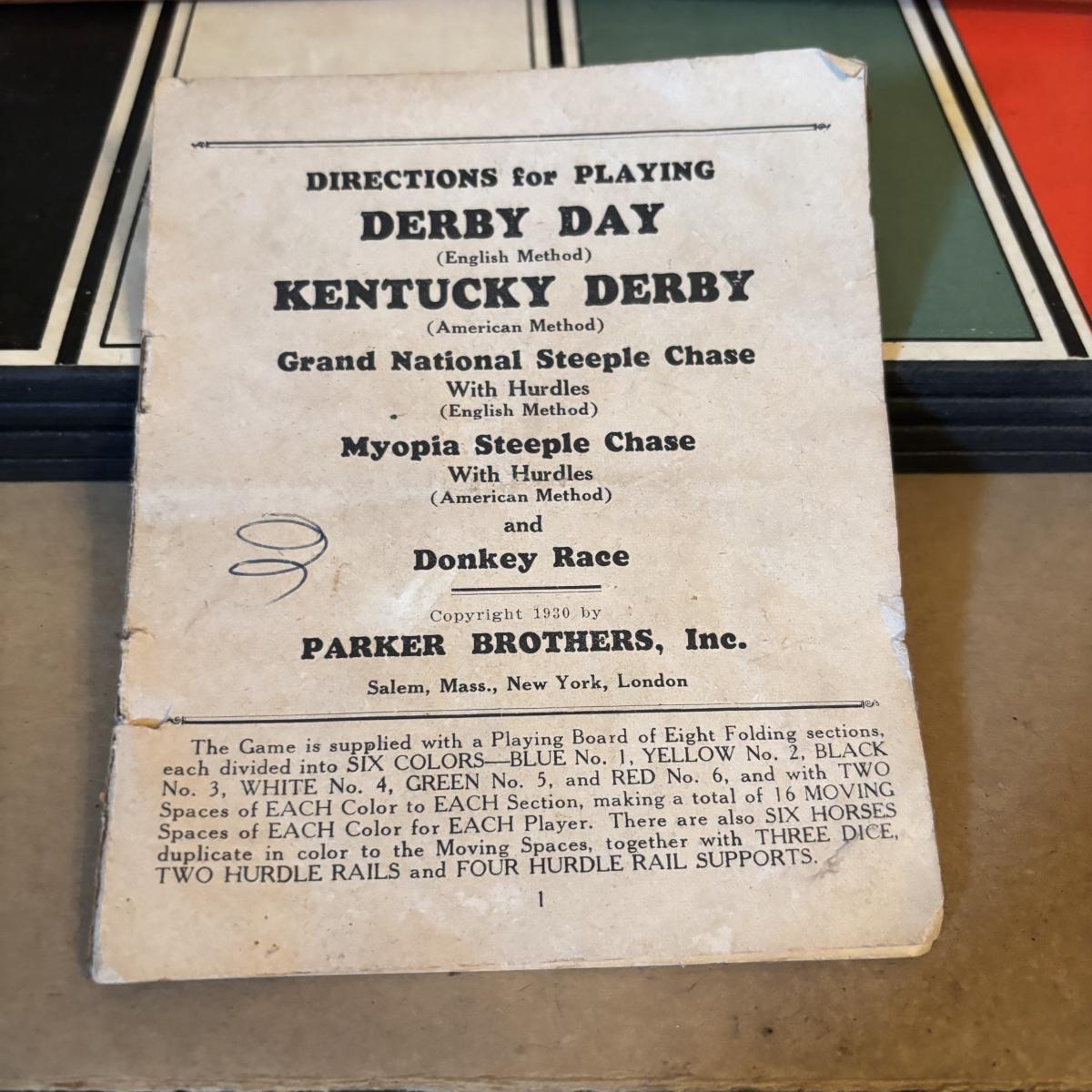 LOT 76: Antique Derby Day Parker Brothers 1930s Horse Race Game