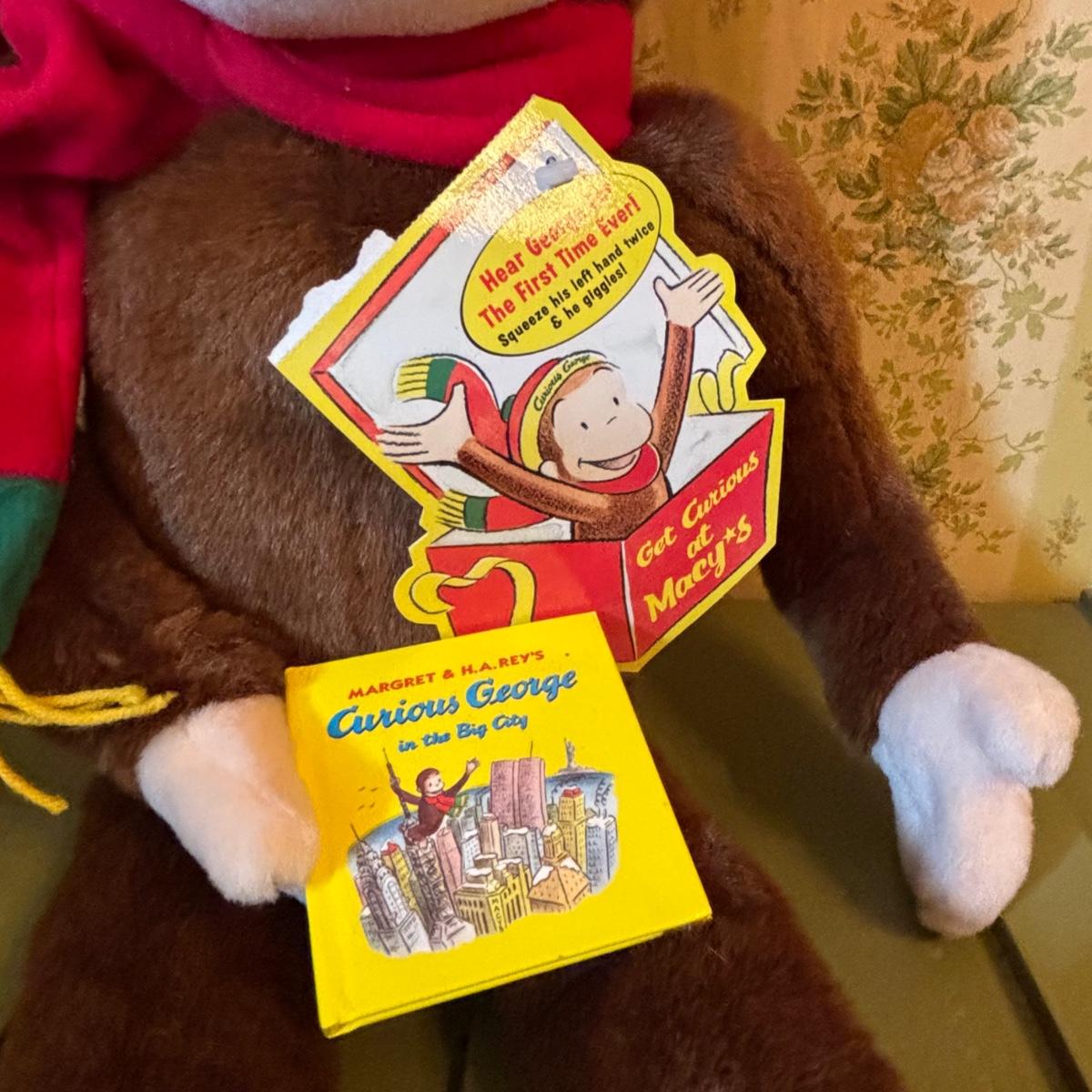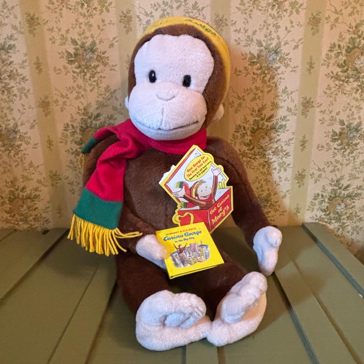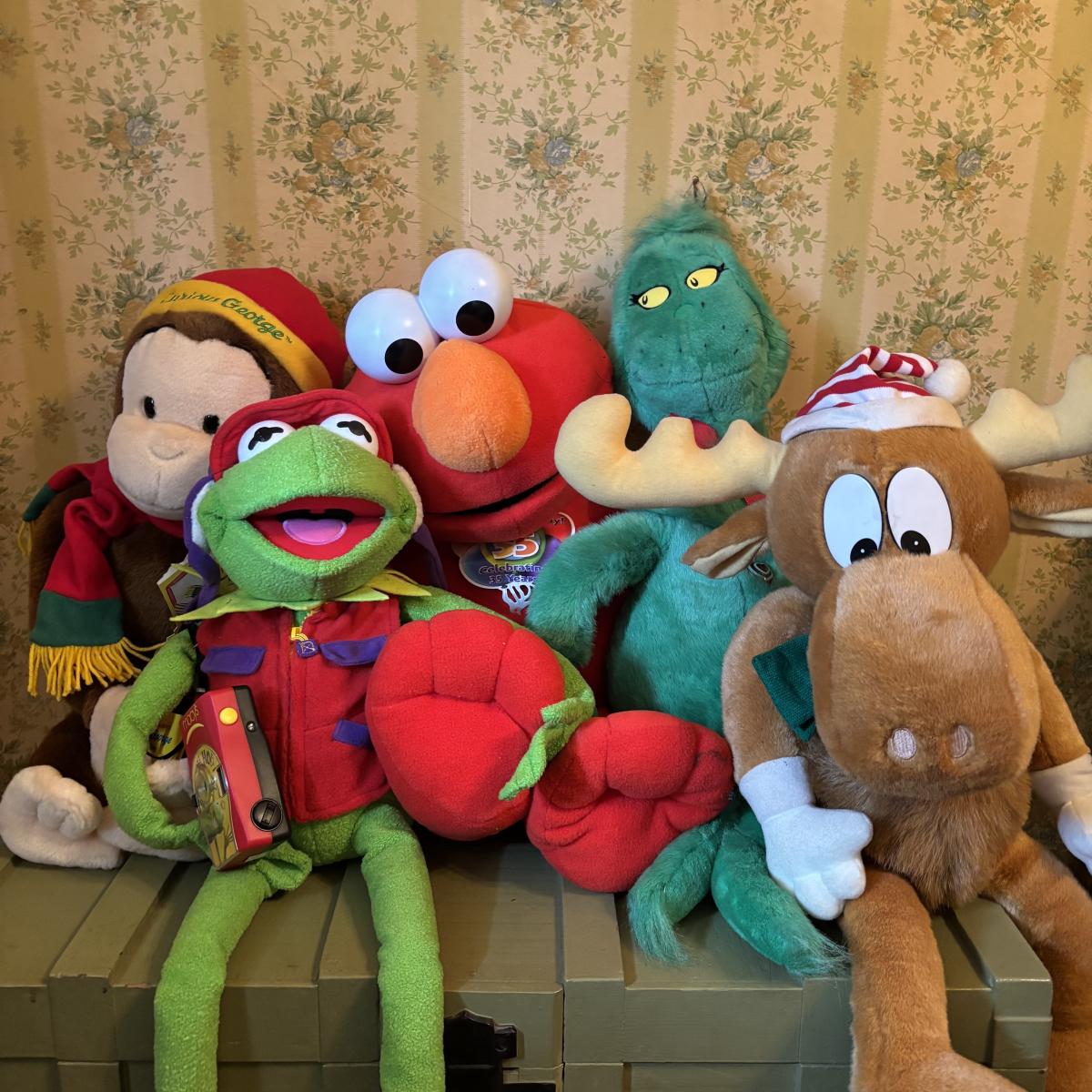 LOT 78: Toys R Us 35th Birthday Elmo, Macys Thanksgiving 2002 Kermit Frog Plush w/Camera, Macy's 2001 Curious George Macy's Plush Toy w/Book, Macy's 1997 Grinch Plush & More