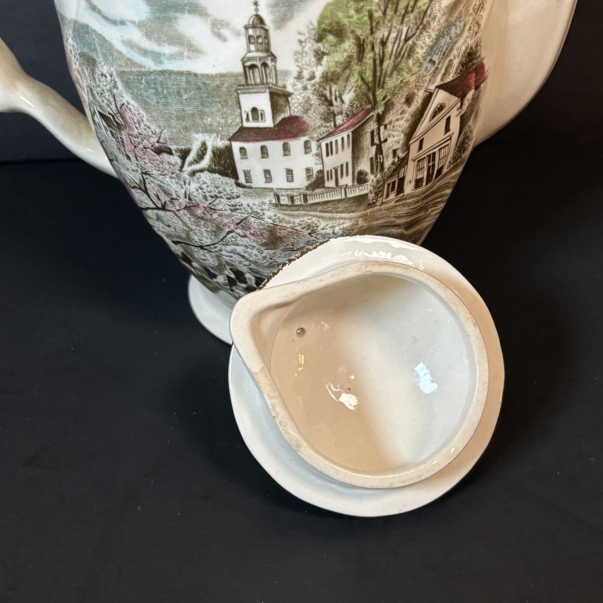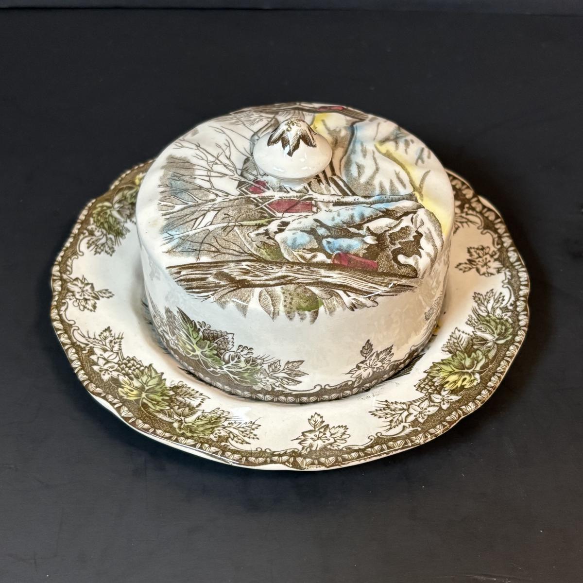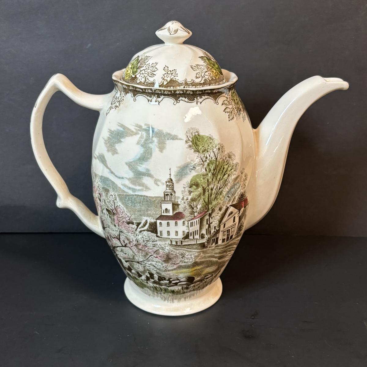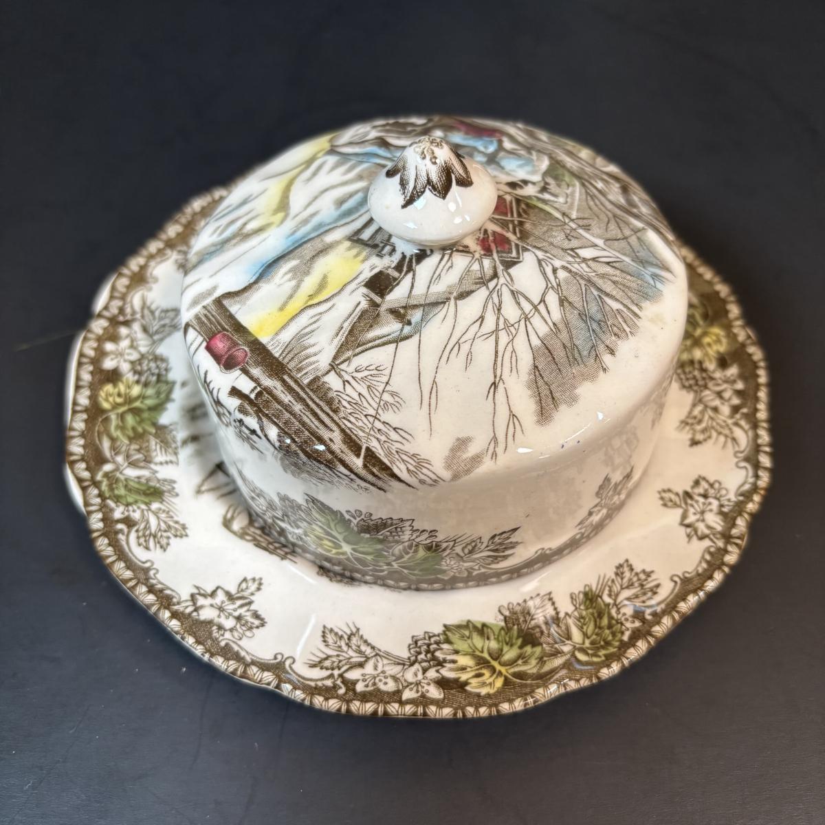 LOT 84: Johnson Bros. of England Ironstone Coffee Pot, Butter Dish & Small Oval Platter Dishware: The Friendly Village Collection