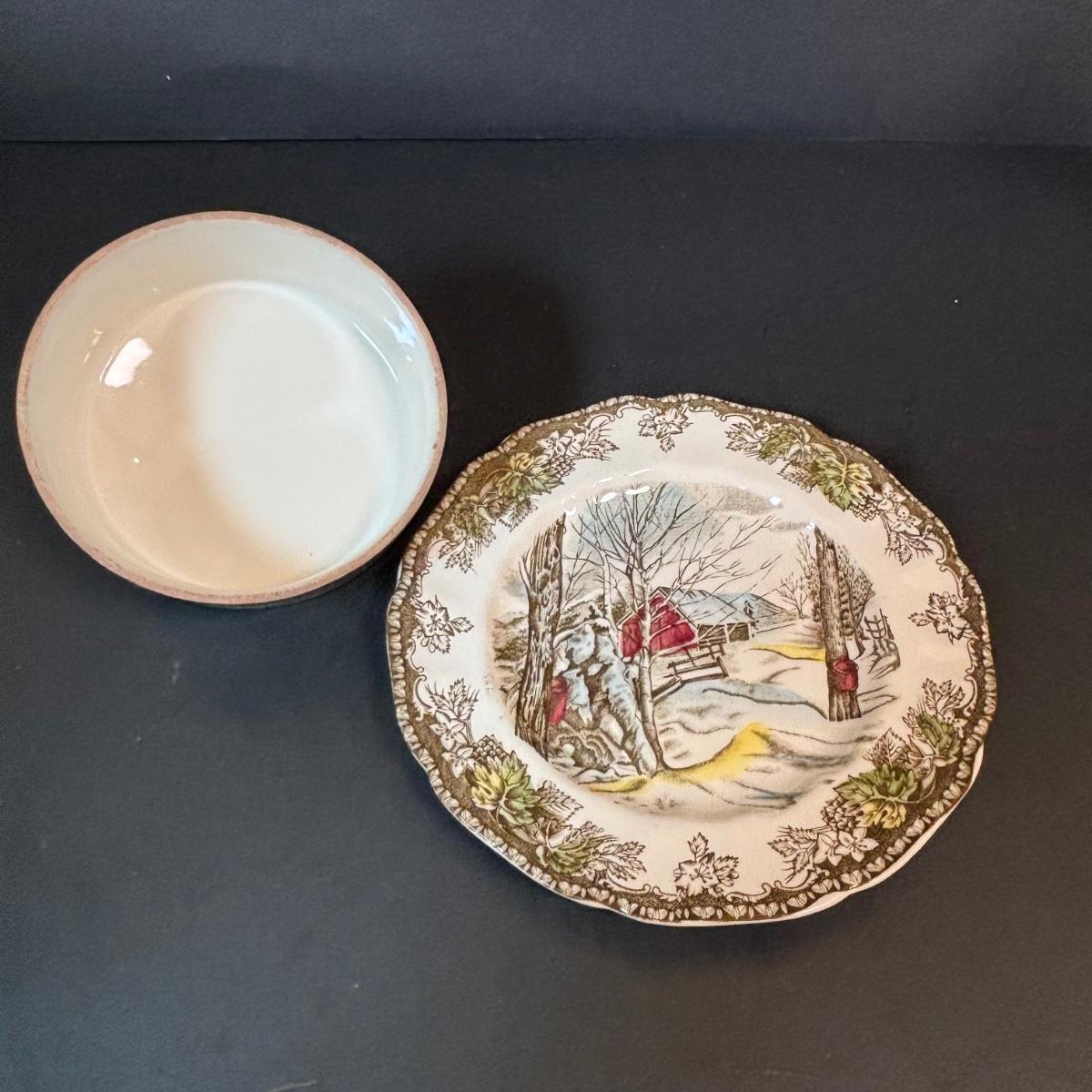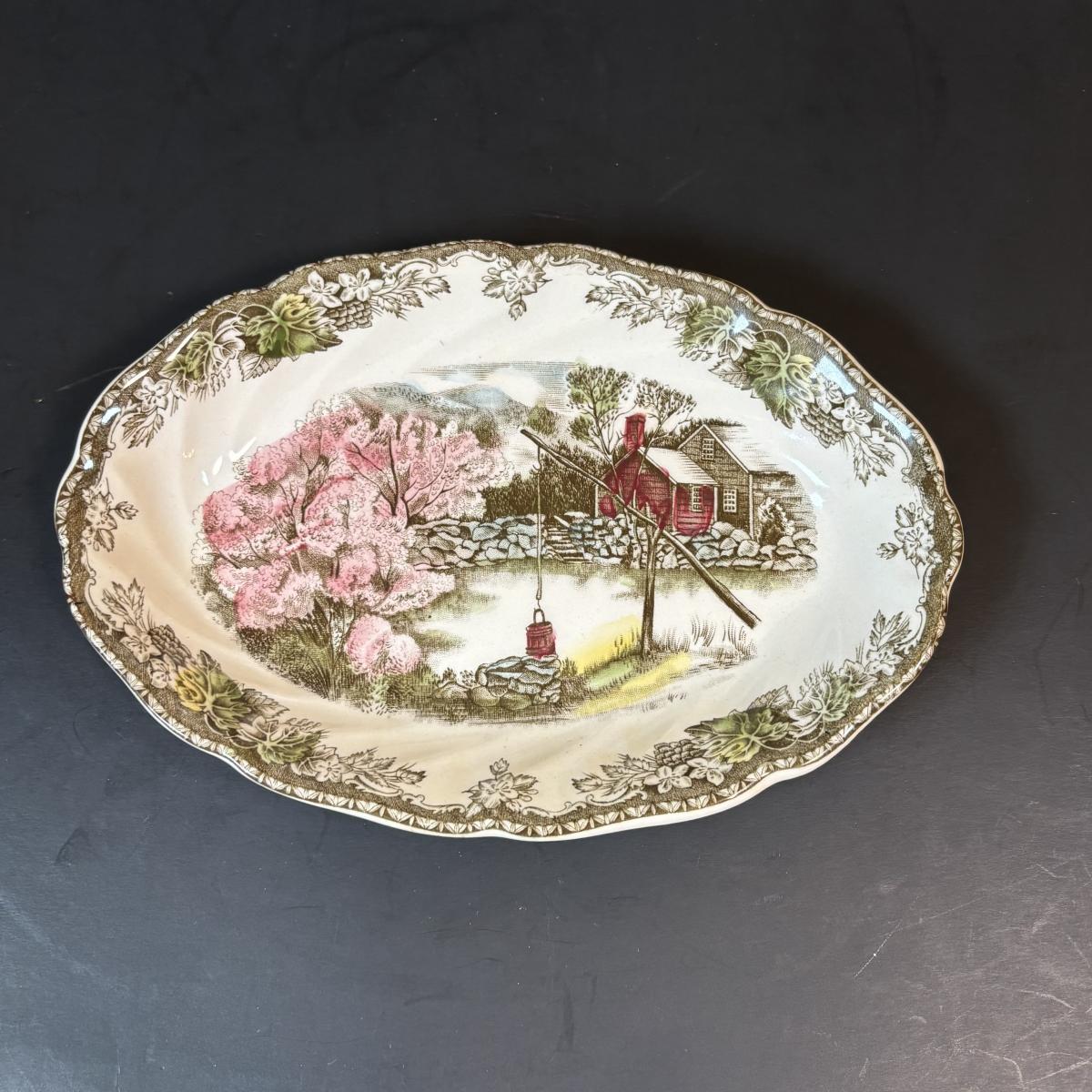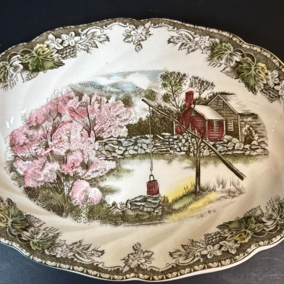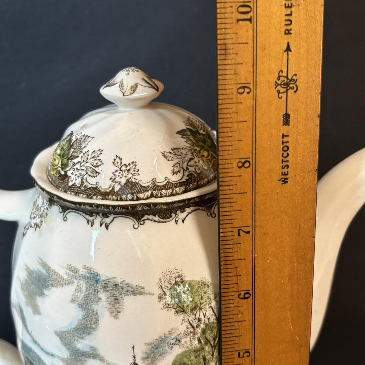 LOT 84: Johnson Bros. of England Ironstone Coffee Pot, Butter Dish & Small Oval Platter Dishware: The Friendly Village Collection