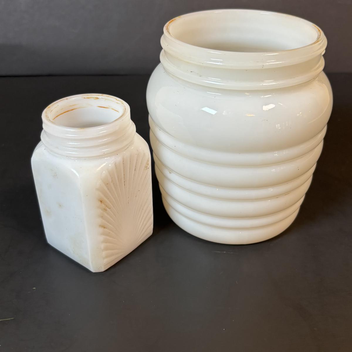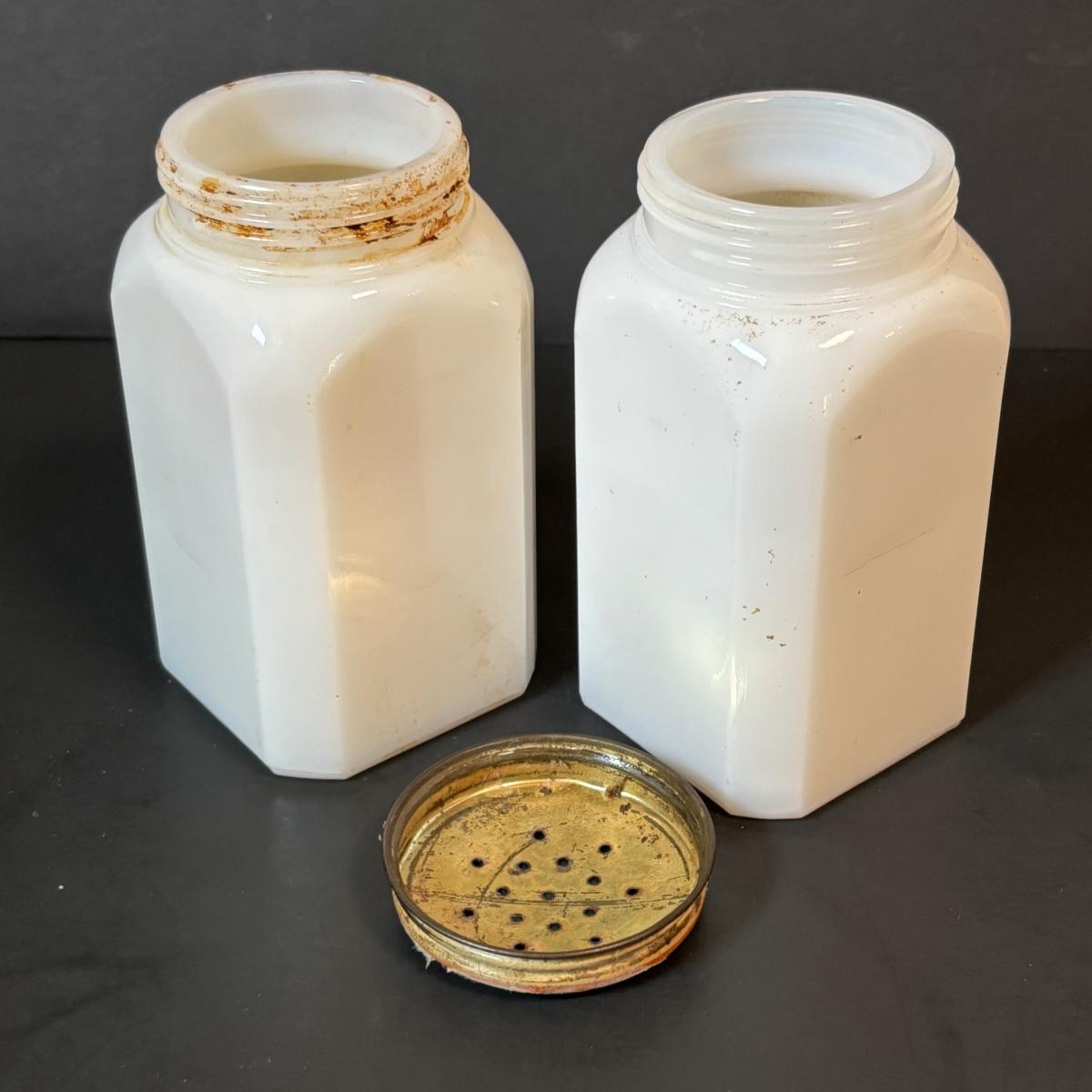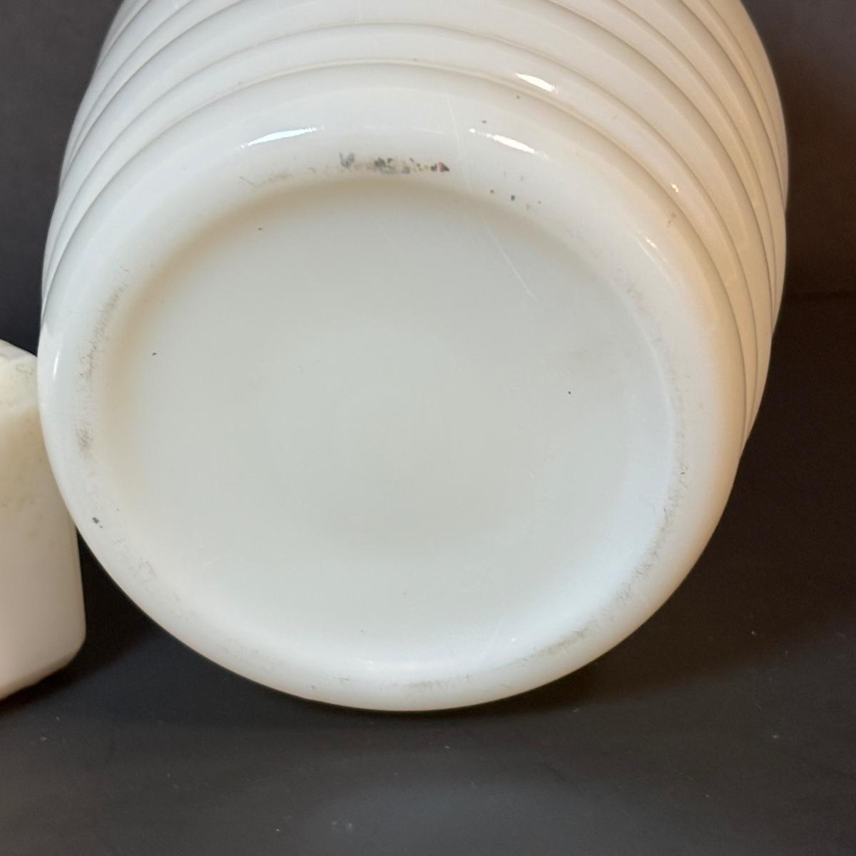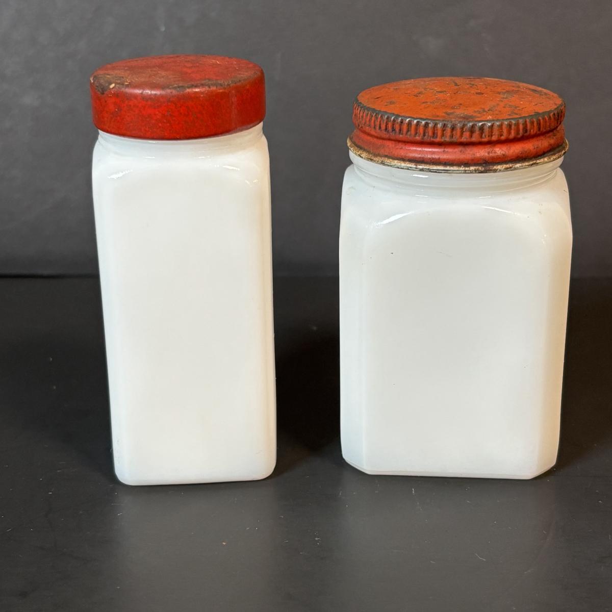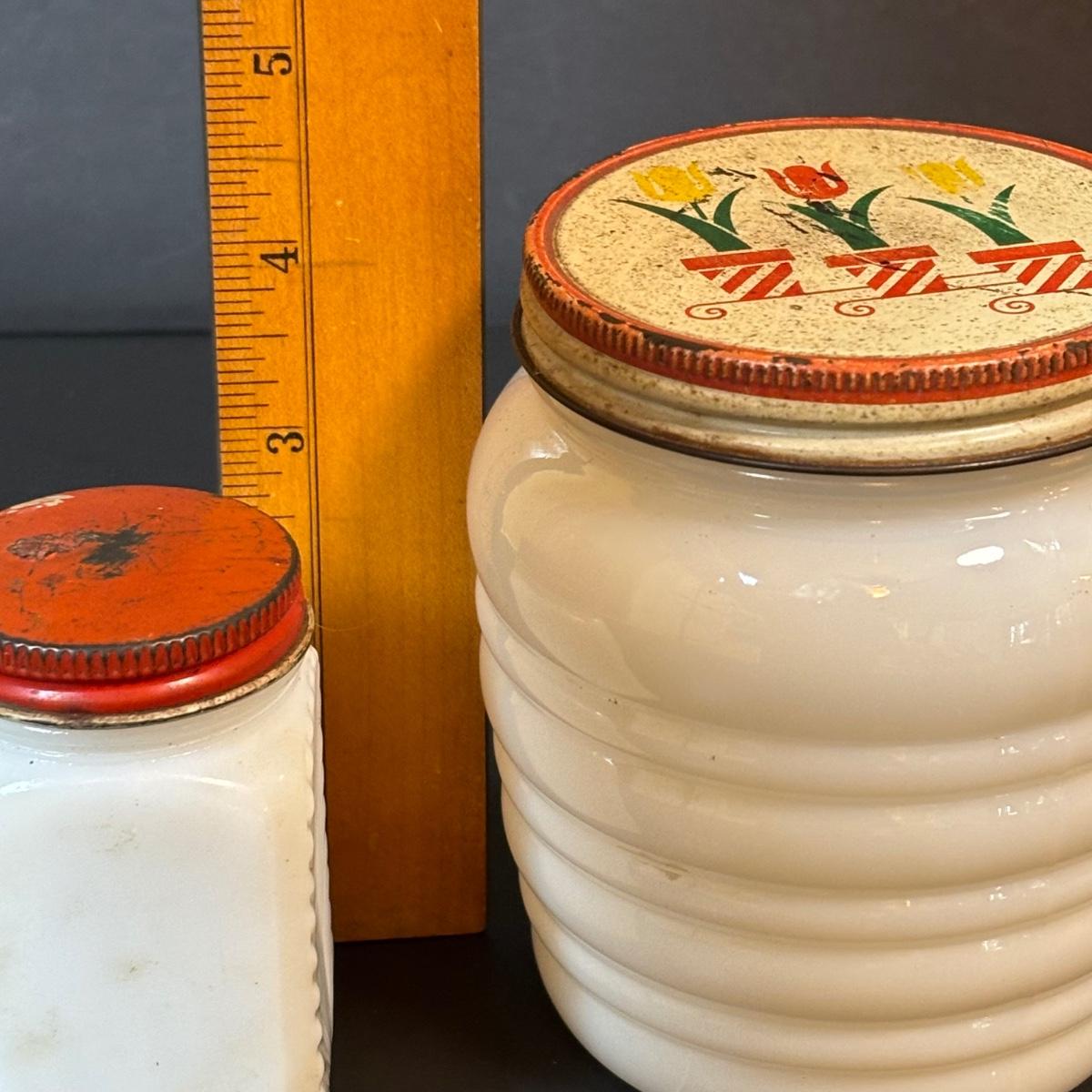 LOT 87: Vintage Milk Glass Salt/Pepper Shakers, Spice Jars and Beehive Grease Jar