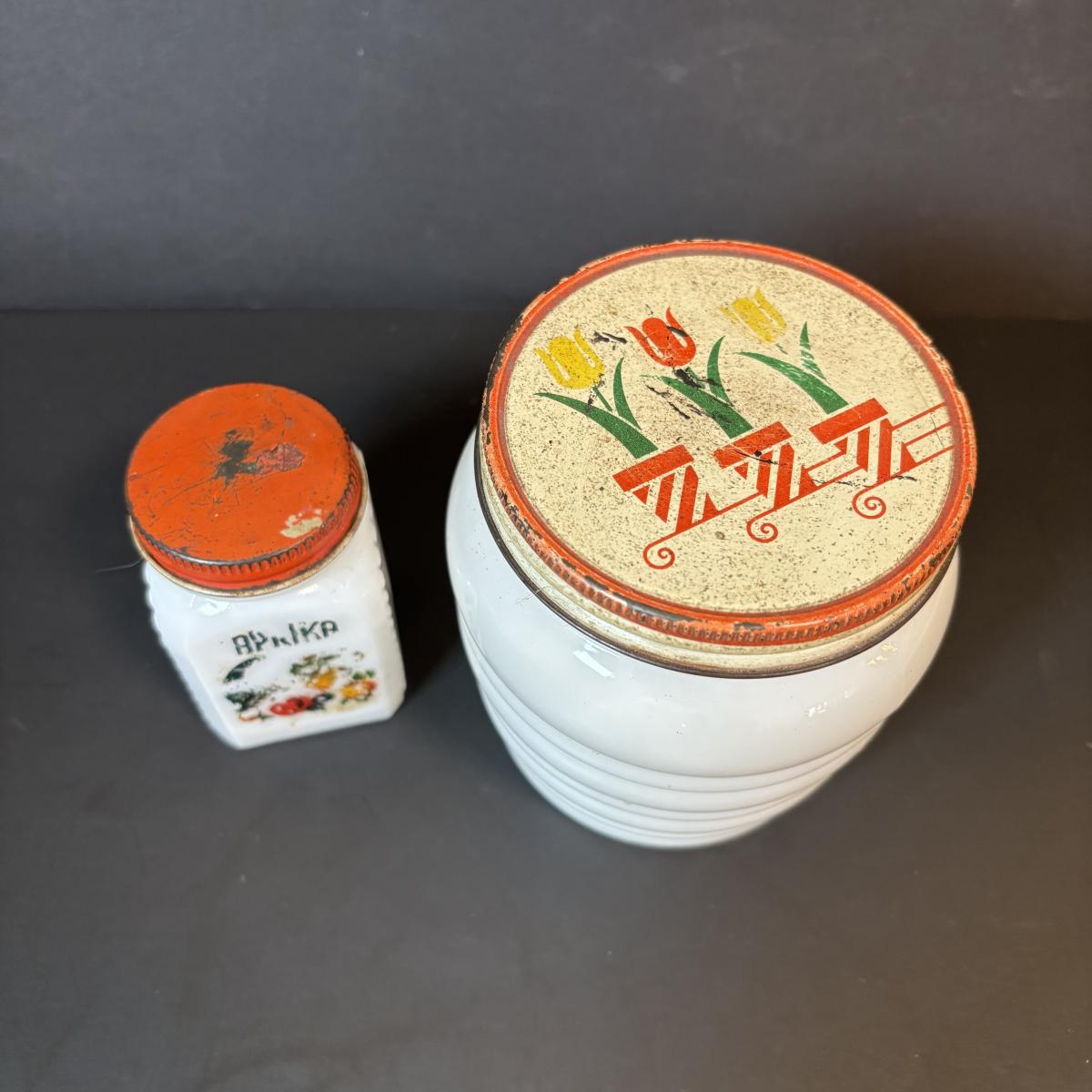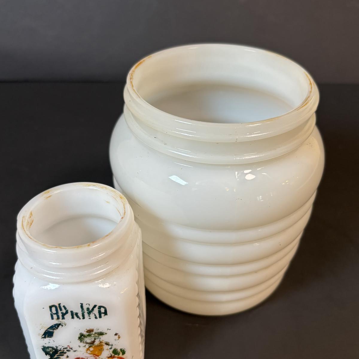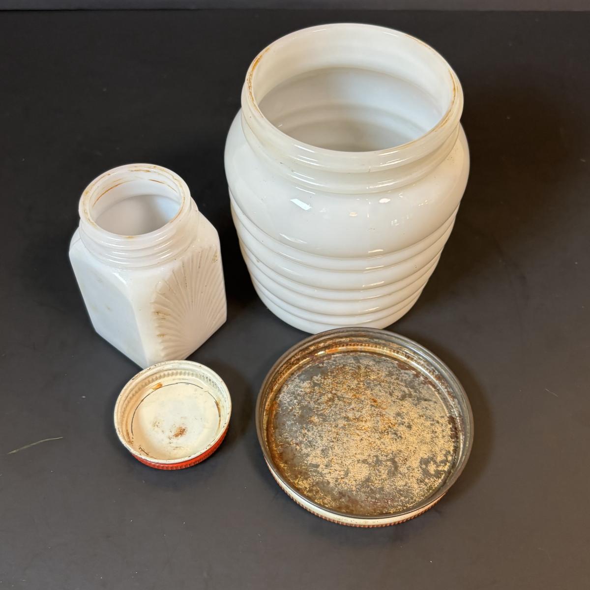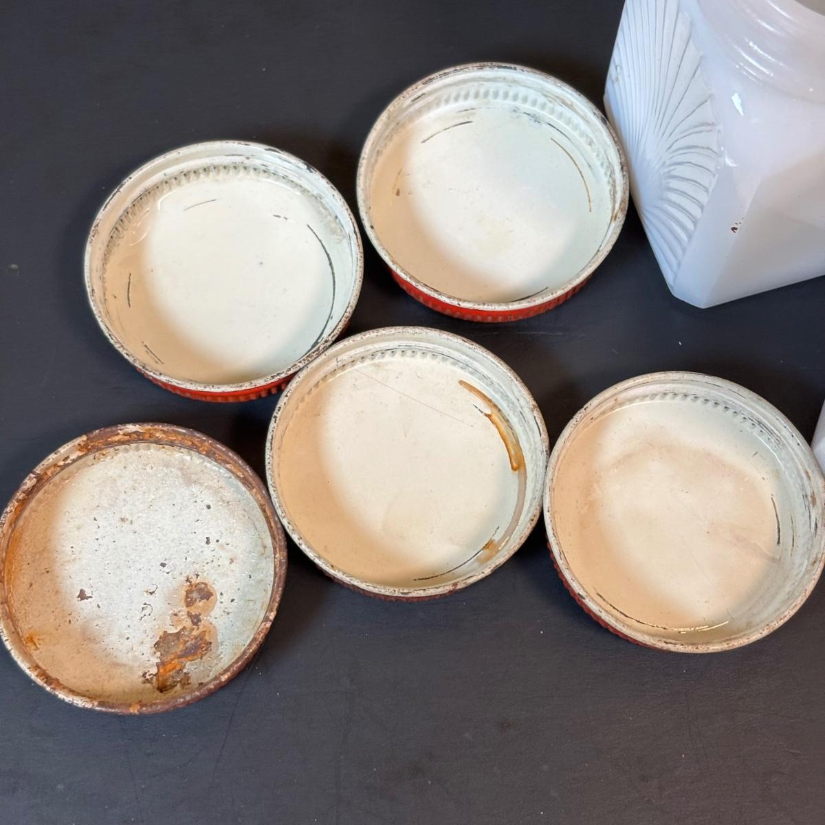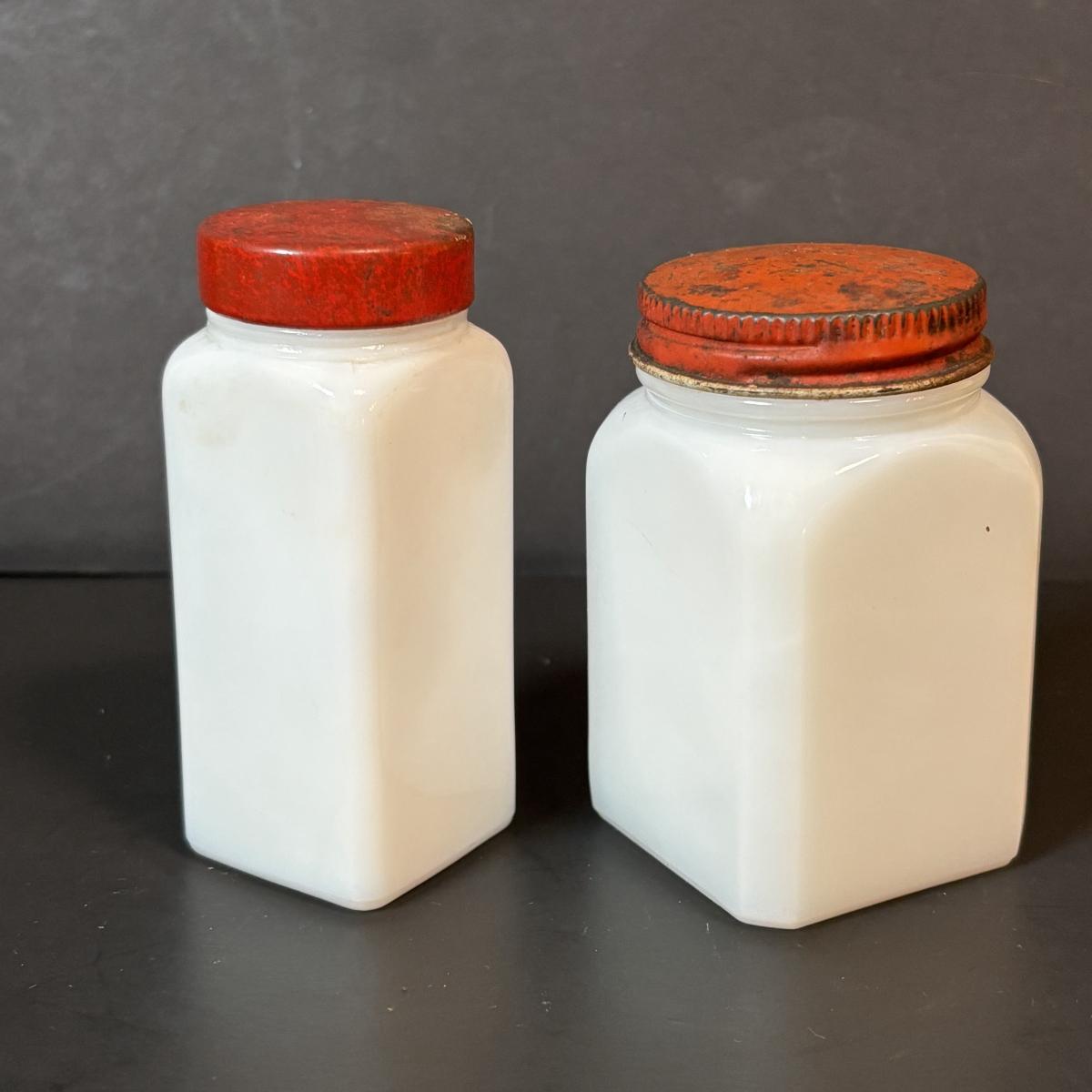 LOT 87: Vintage Milk Glass Salt/Pepper Shakers, Spice Jars and Beehive Grease Jar