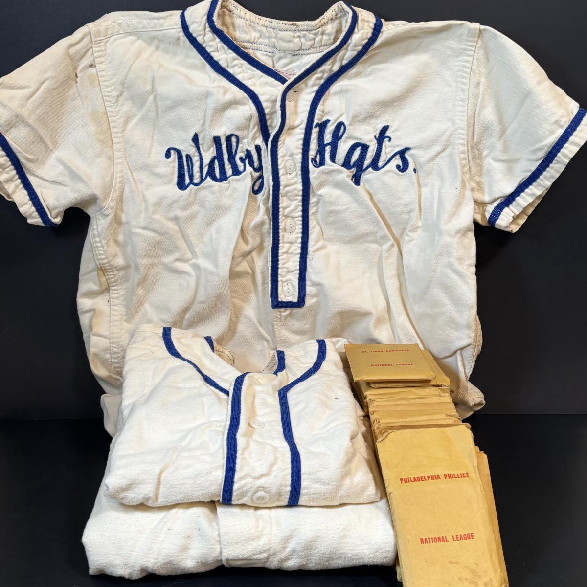 LOT 92: Vintage Woodbury Height Baseball Uniform & APBA Major League Baseball Game Cards 20+ Packets