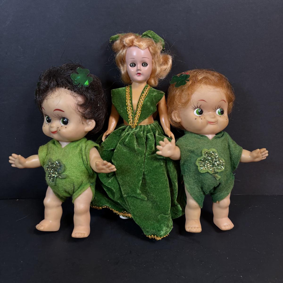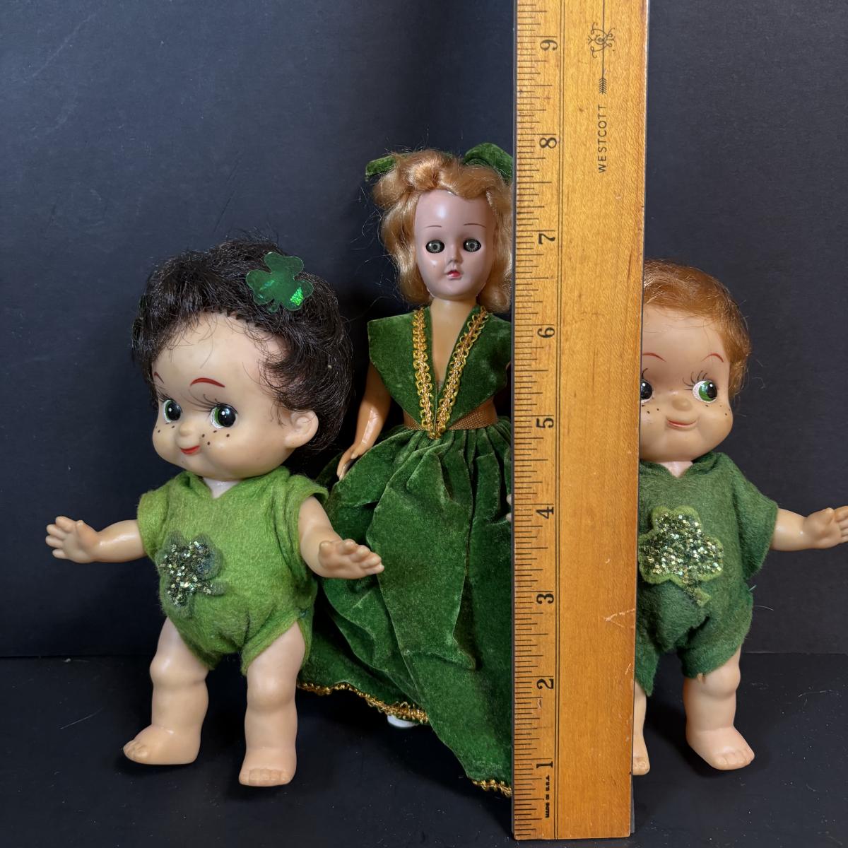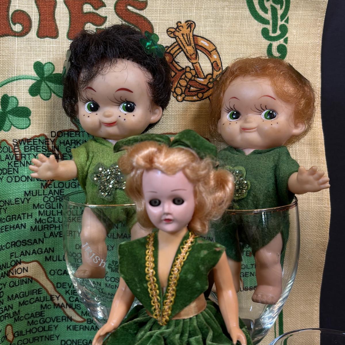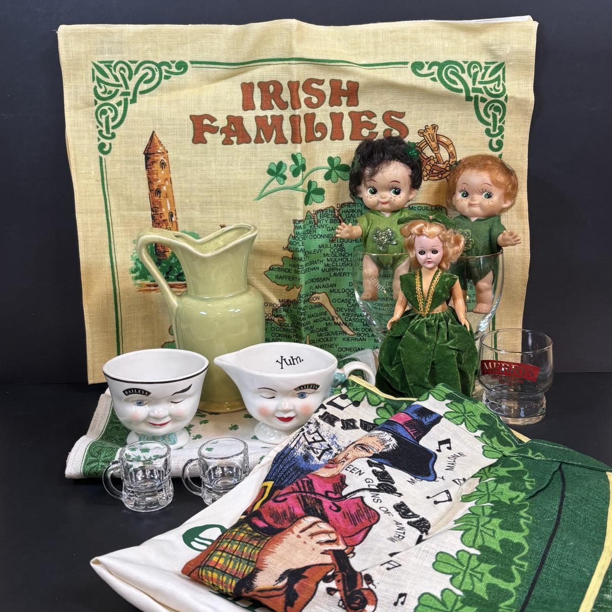 LOT 96: Celebrating Ireland & More Collection: Made in Ireland Linens, Dolls, Glassware, Dolls, Made in USA Green Pitcher/Vase