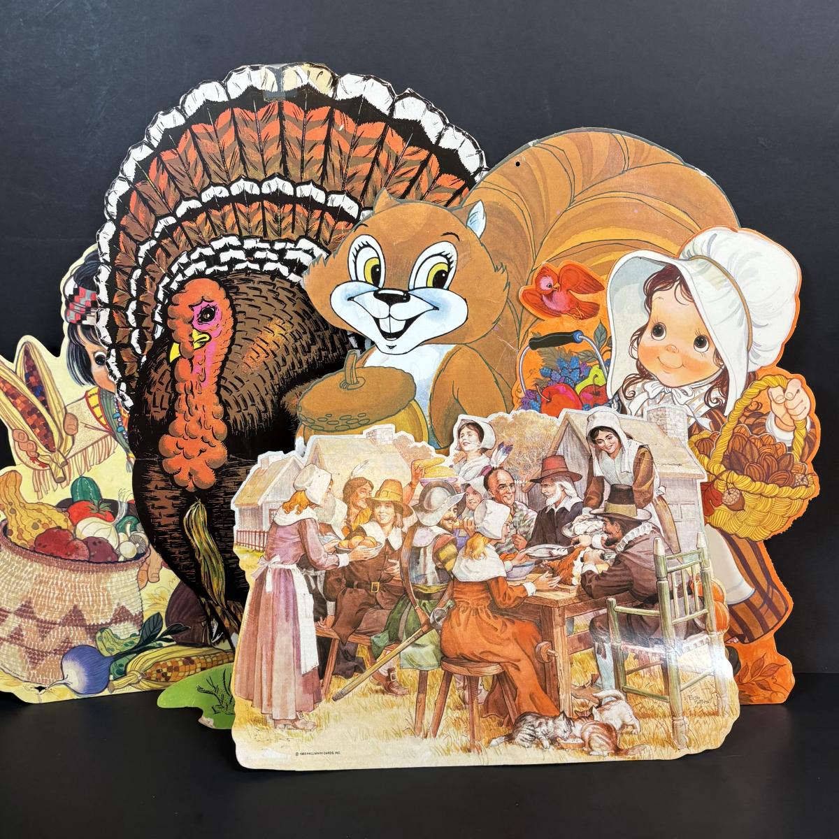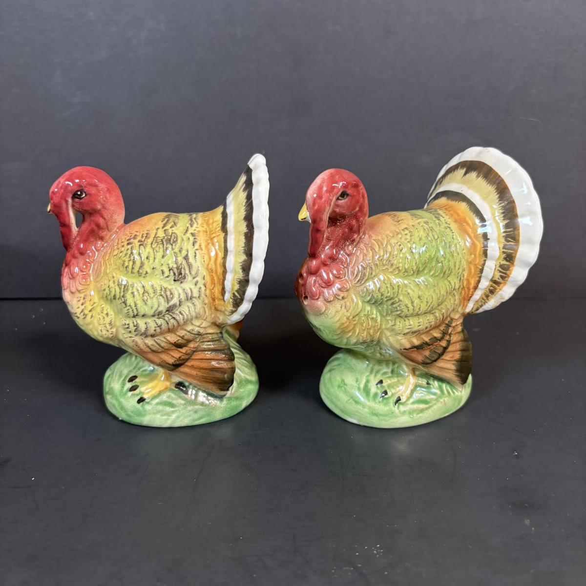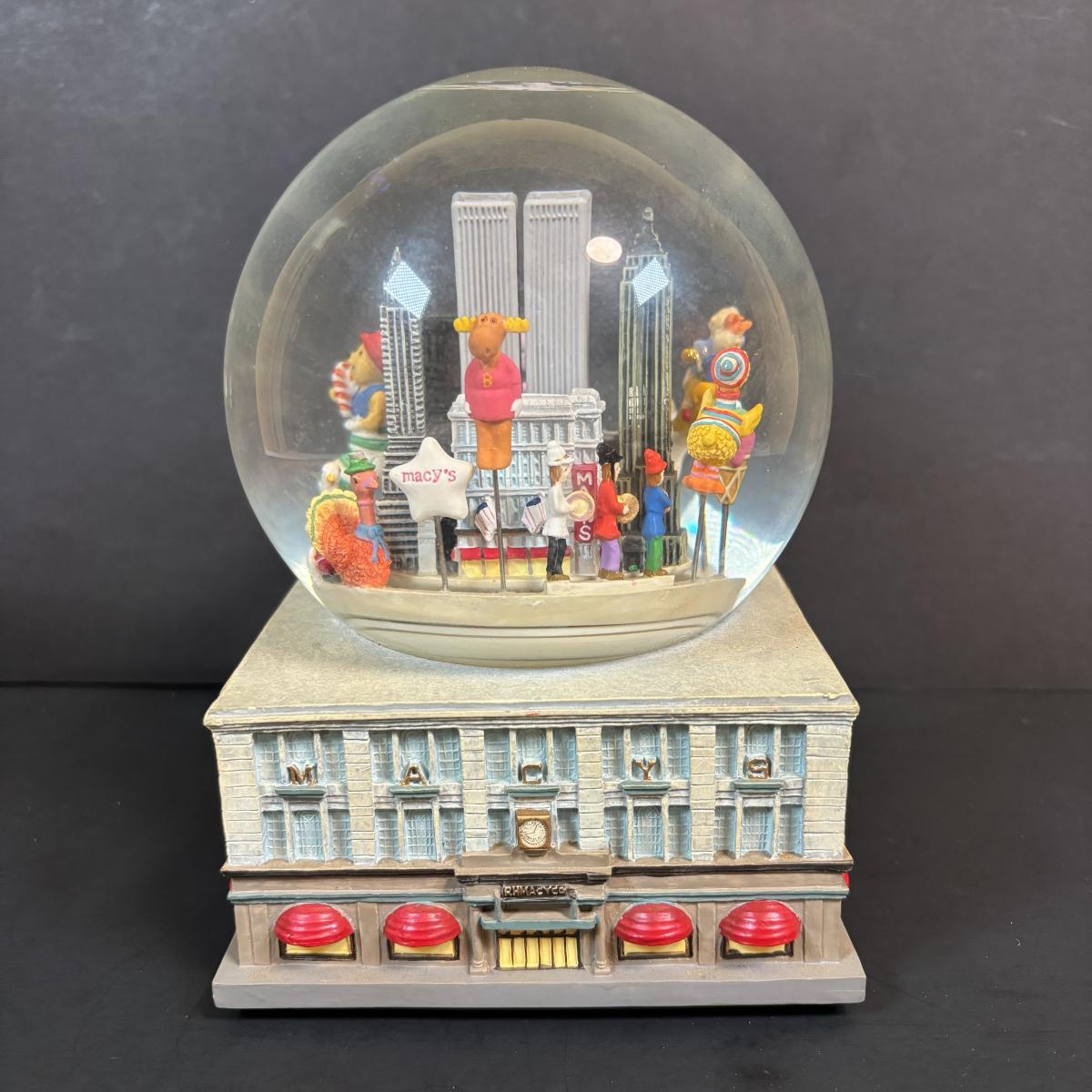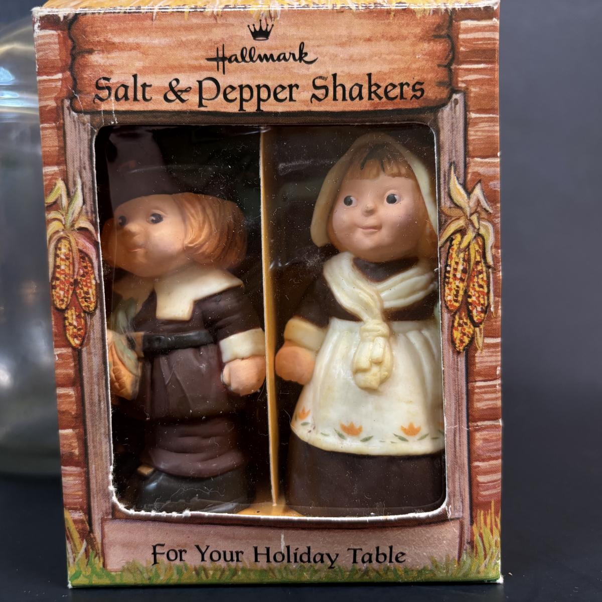 LOT 98: Fall Collection: Paper Decorations, Macy's Day Parade Musical Snow Globe, Lefton Turkey Salt/Pepper Shakers, Glass Pumpkin