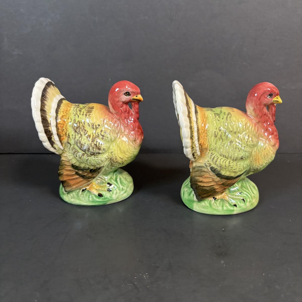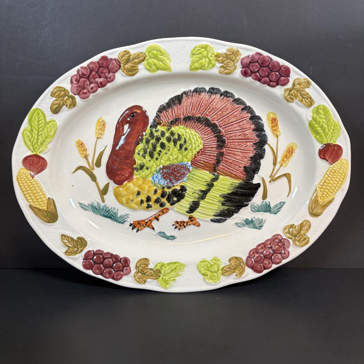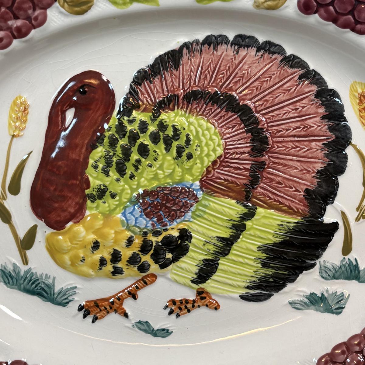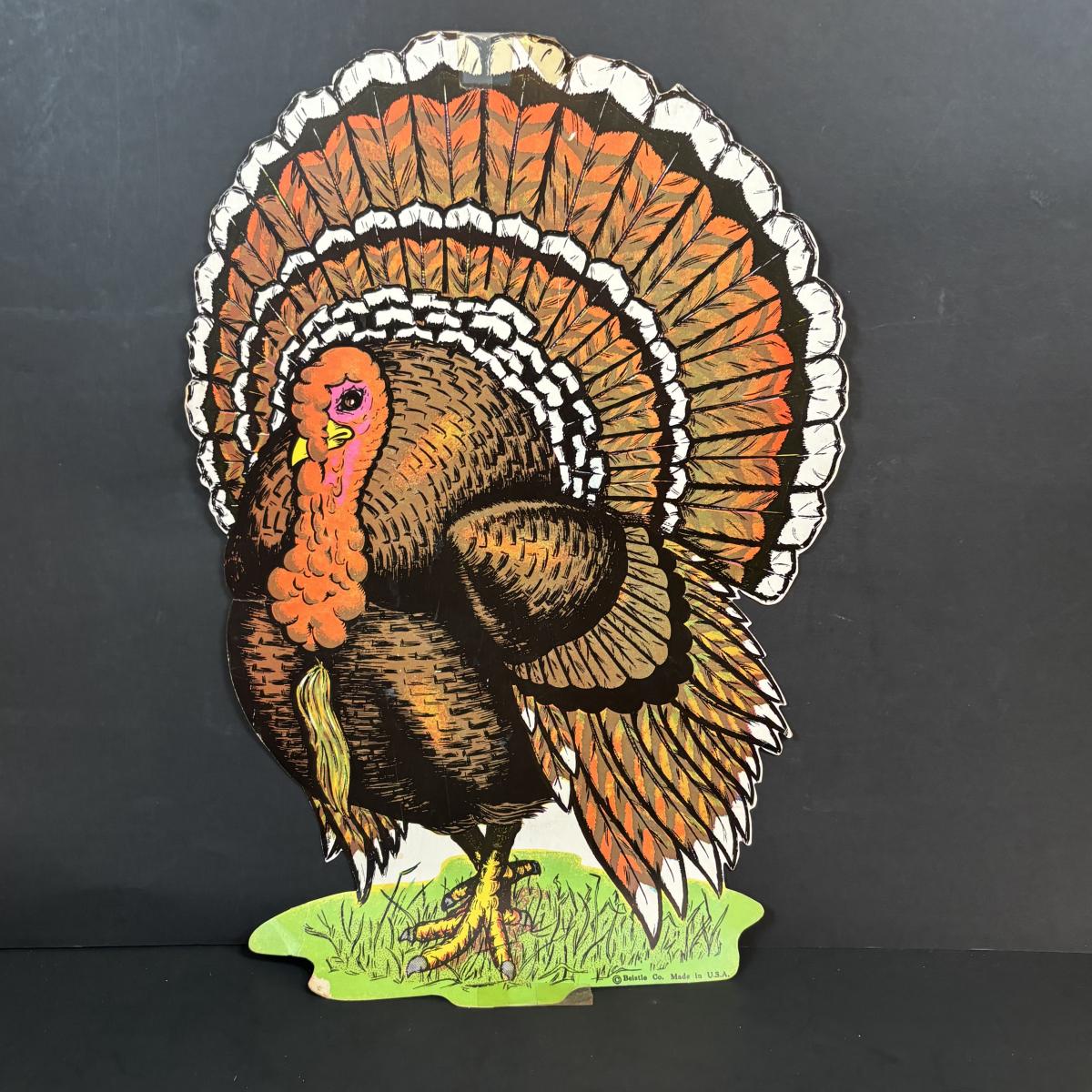 LOT 98: Fall Collection: Paper Decorations, Macy's Day Parade Musical Snow Globe, Lefton Turkey Salt/Pepper Shakers, Glass Pumpkin