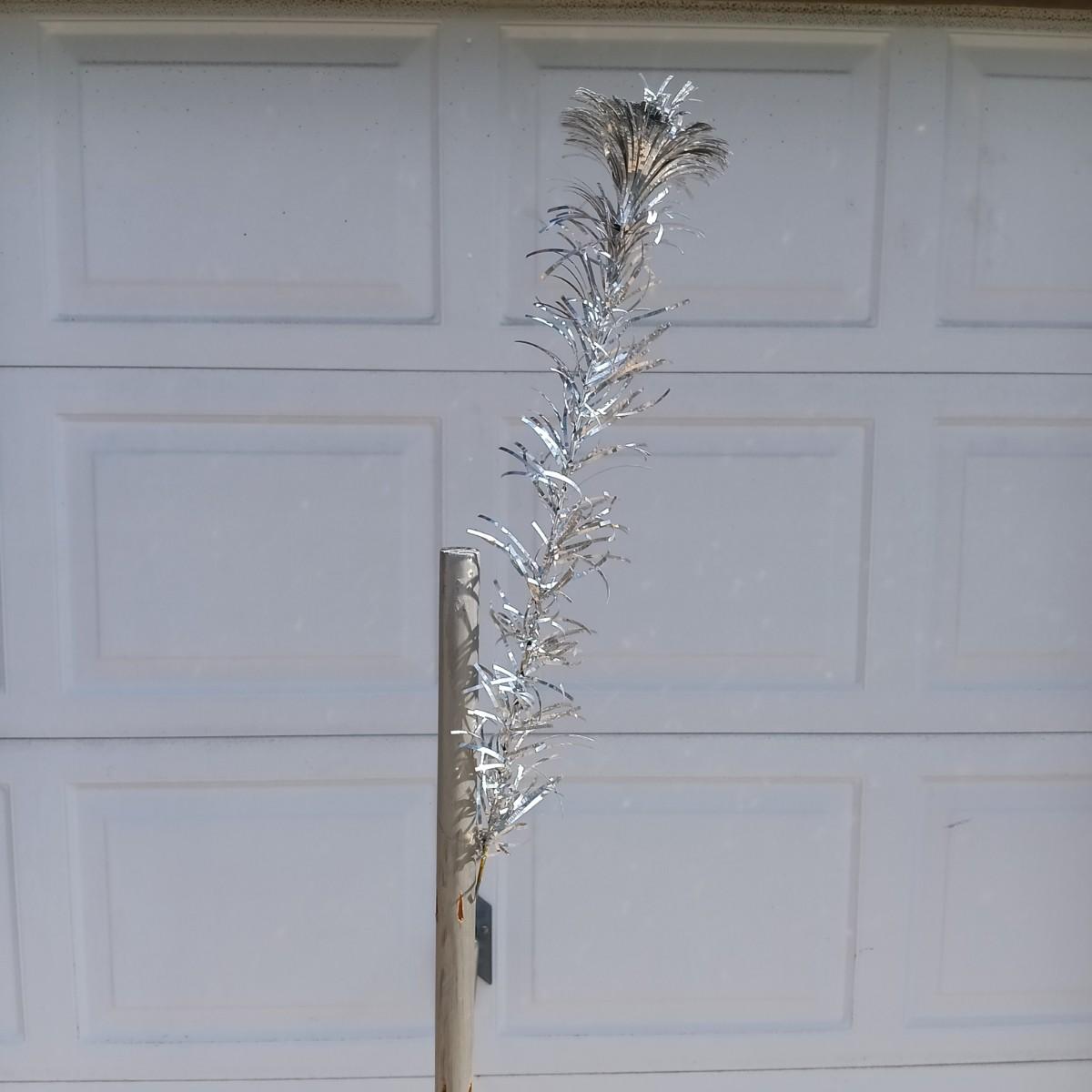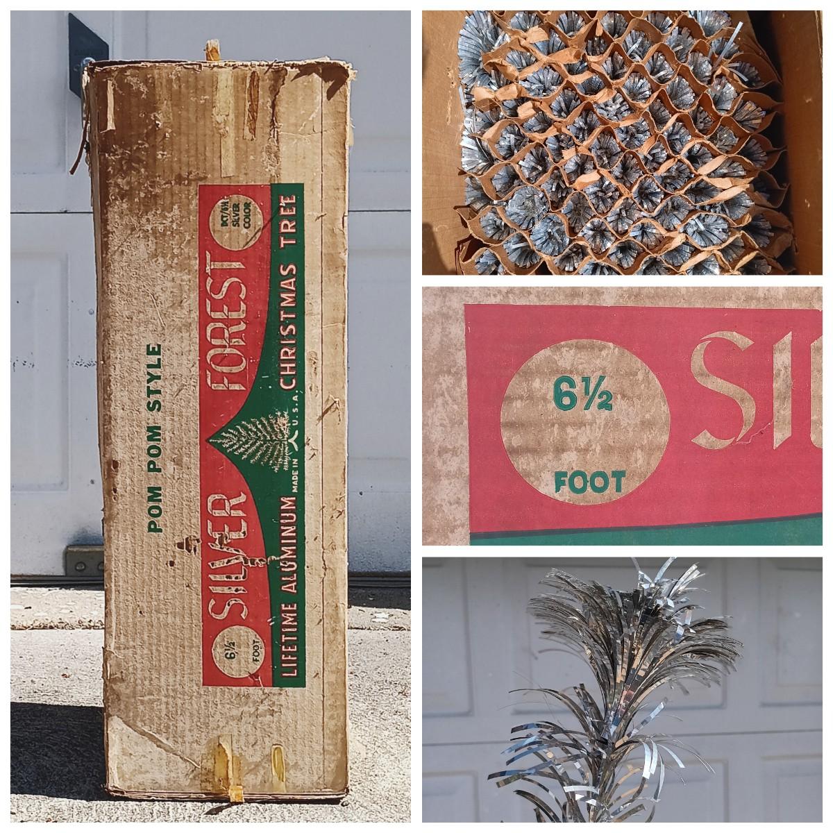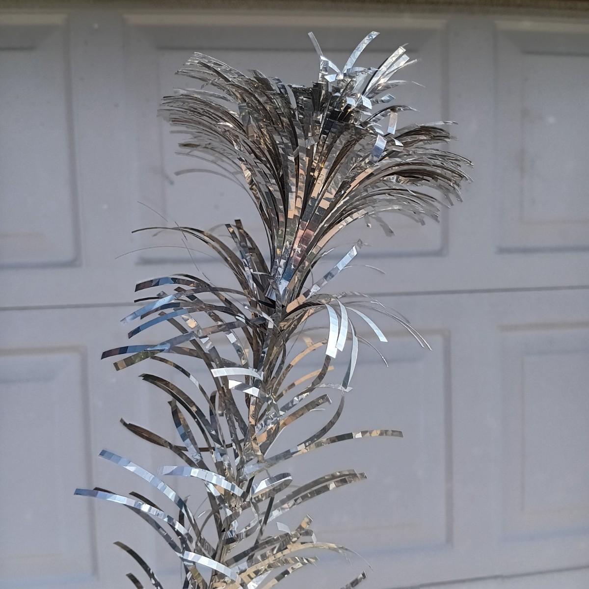 LOT 194: Silver Forest Pom Pom Style 6-1/2 Ft Silver Aluminum Christmas Tree