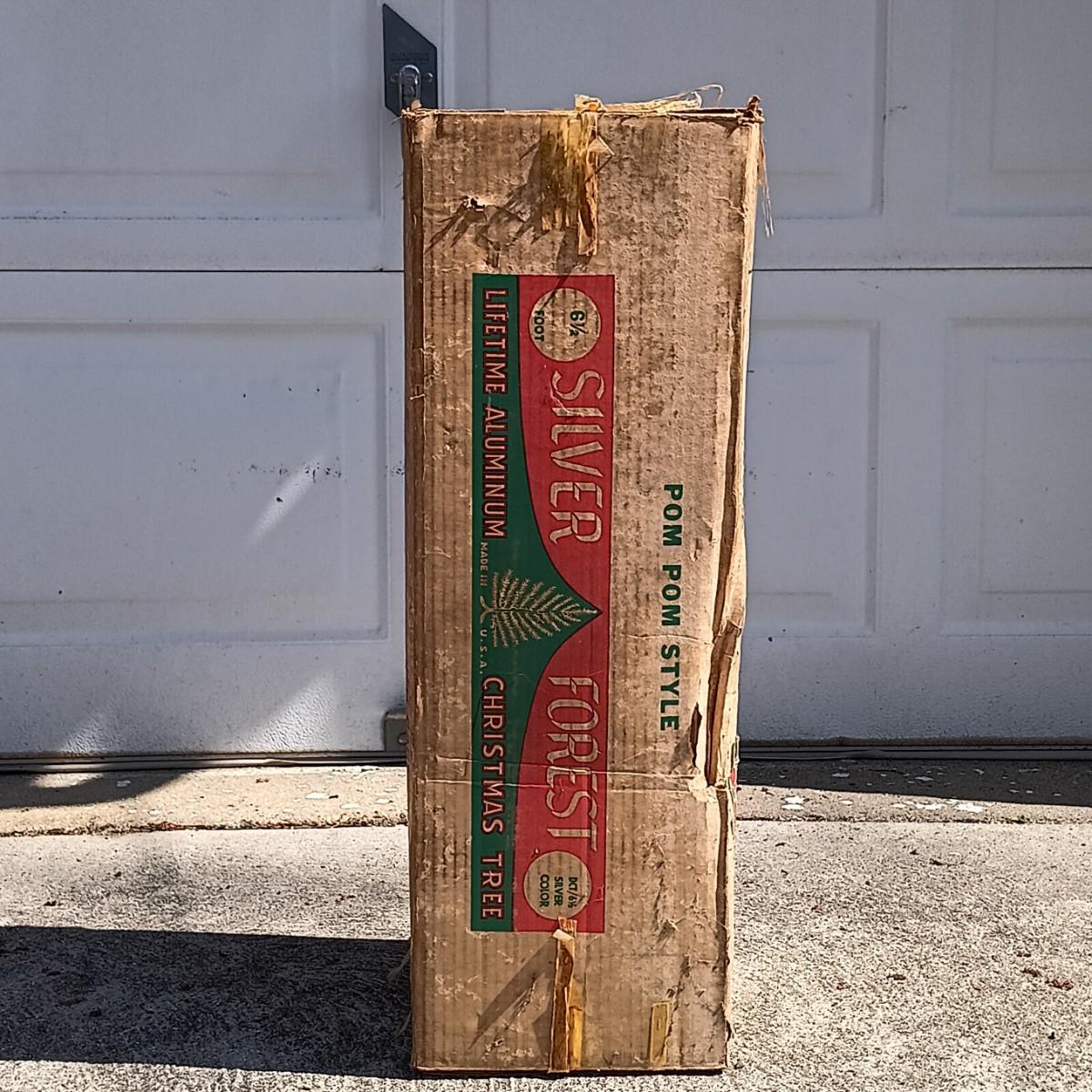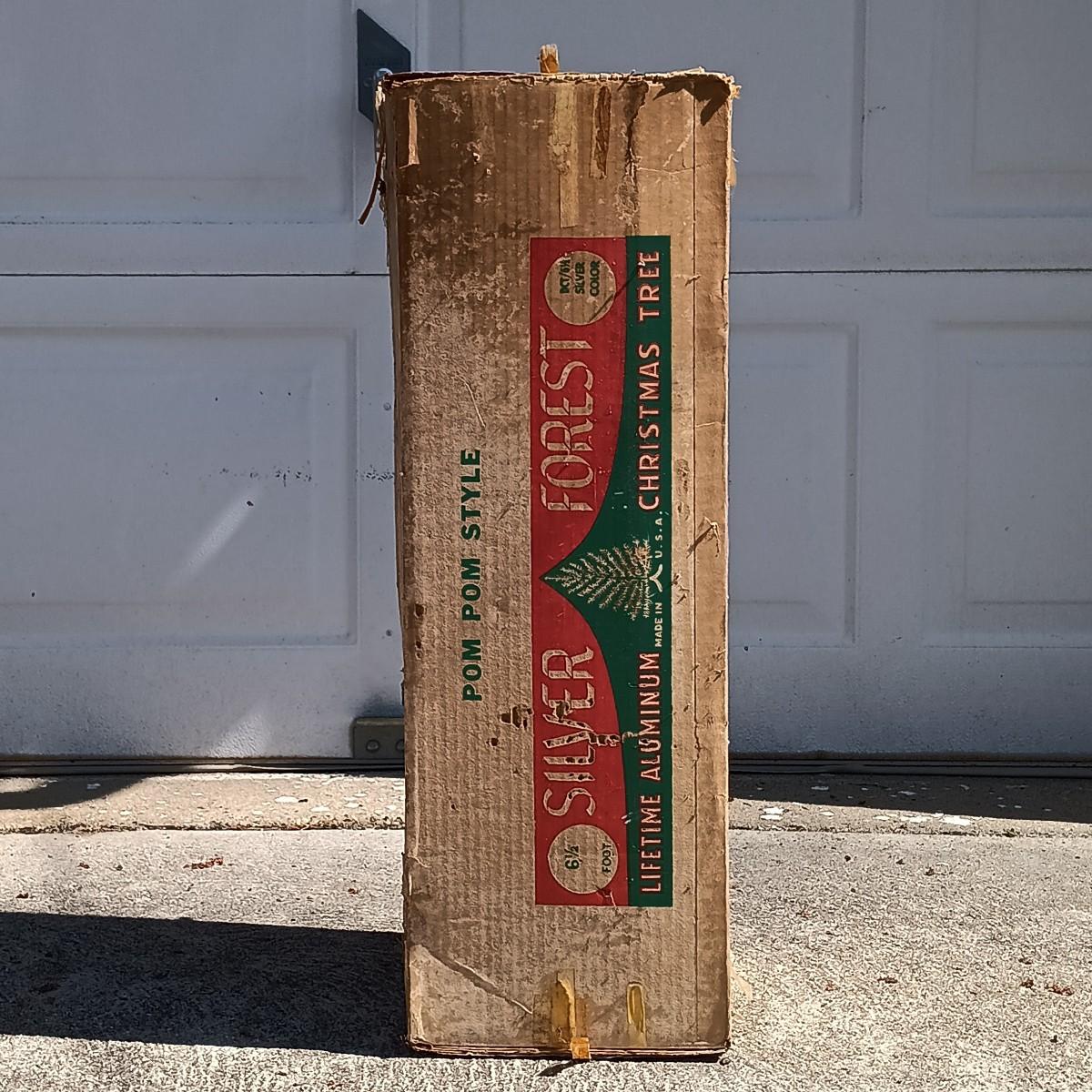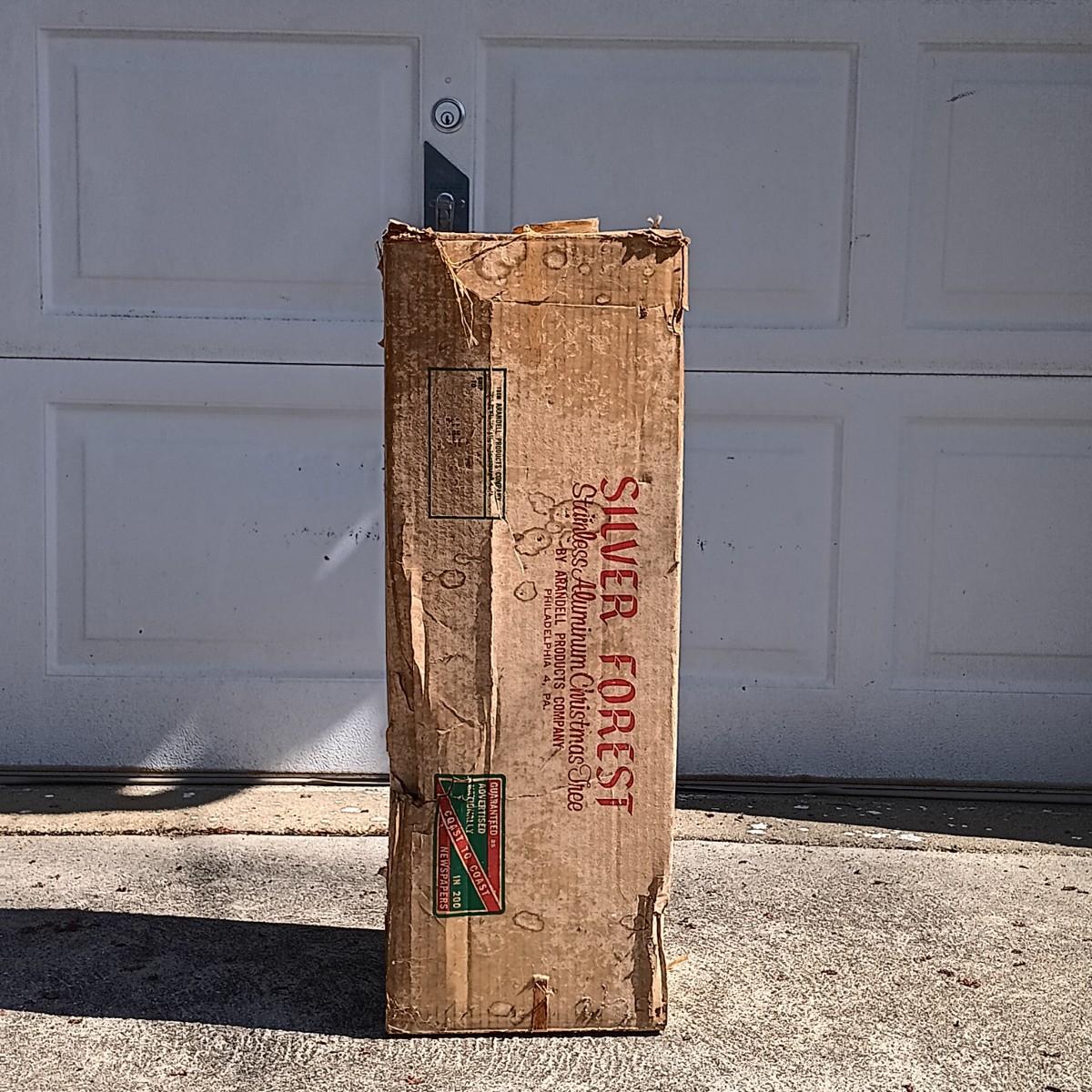 LOT 194: Silver Forest Pom Pom Style 6-1/2 Ft Silver Aluminum Christmas Tree