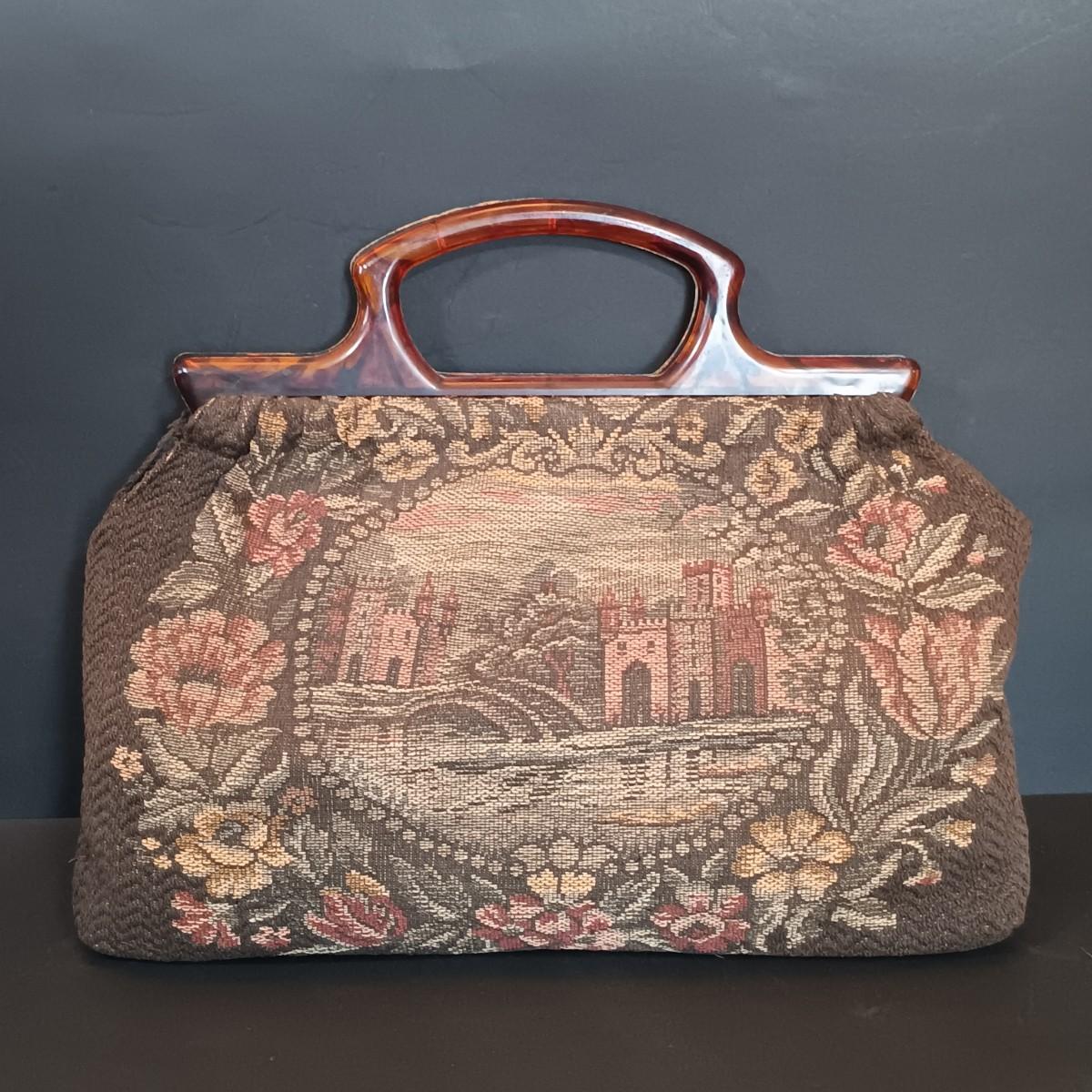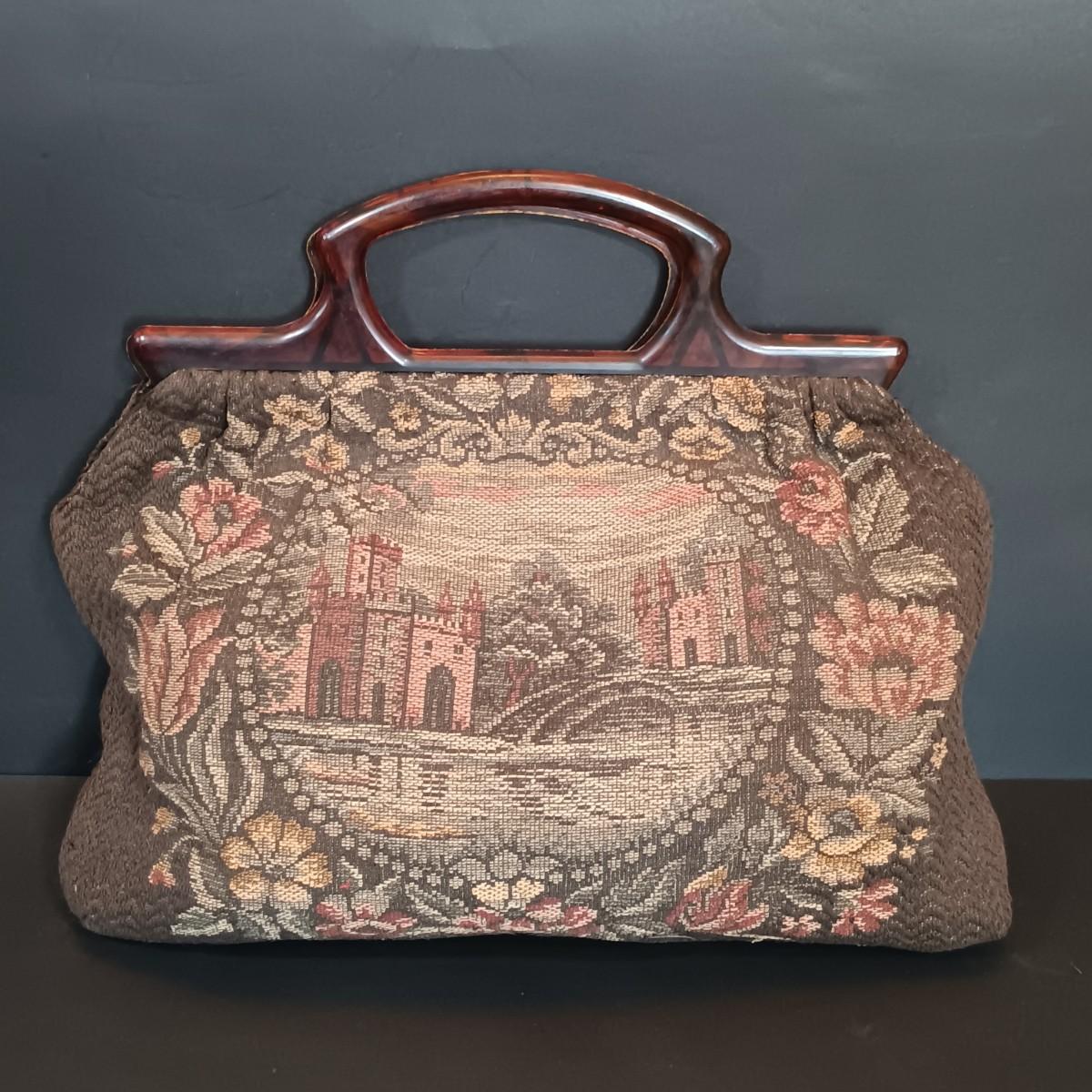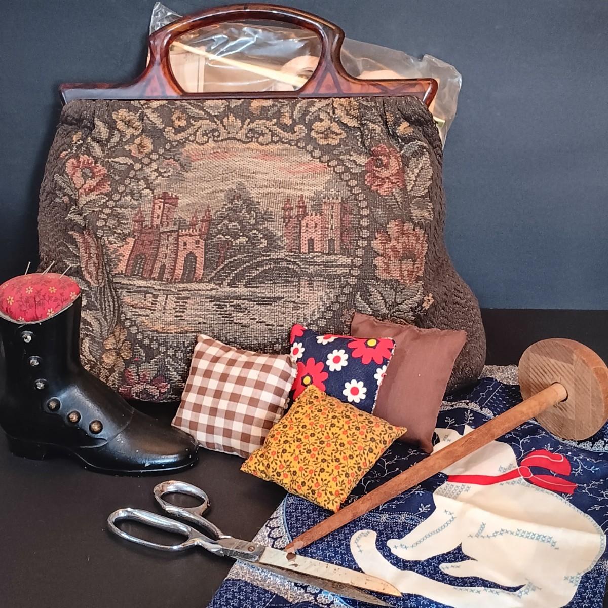 LOT 198: Vintage Sewing Handbag w/ Singer West Germany Scissors, Crochet Thread & More