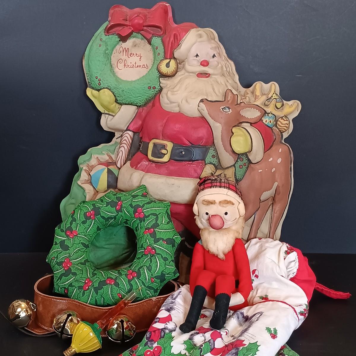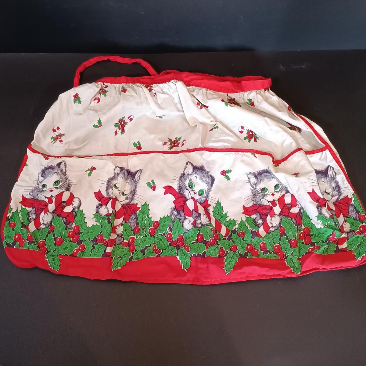 LOT 200: Vintage Santa Blow Mold, Knee Hugger, 50s Style Christmas Kittens Apron & More