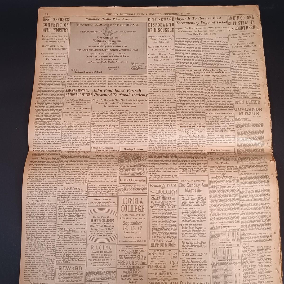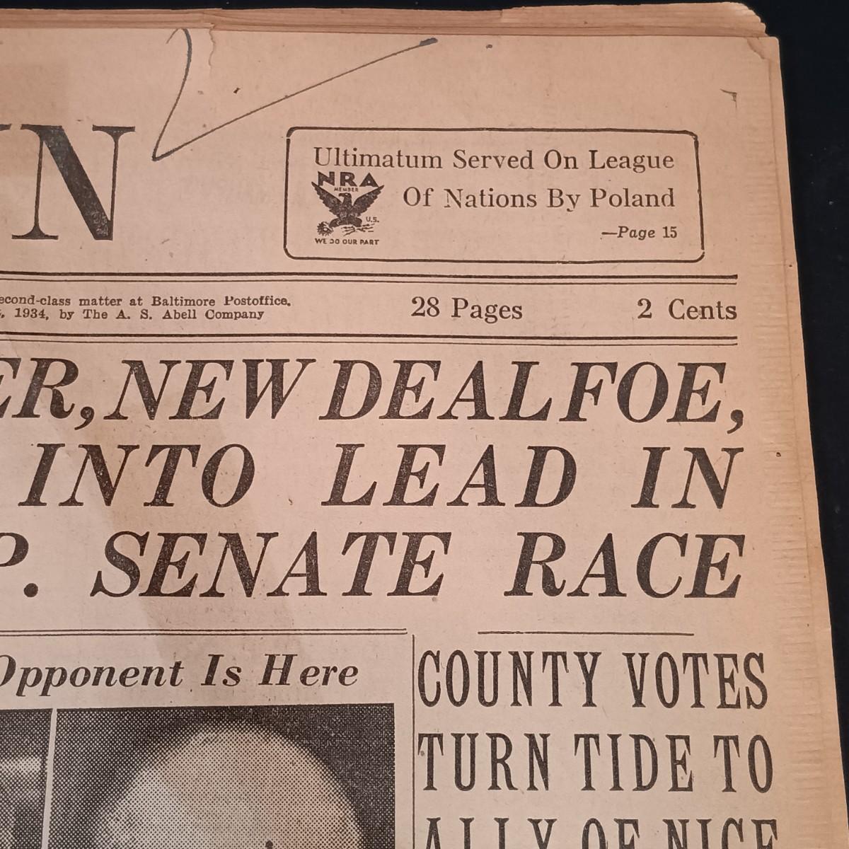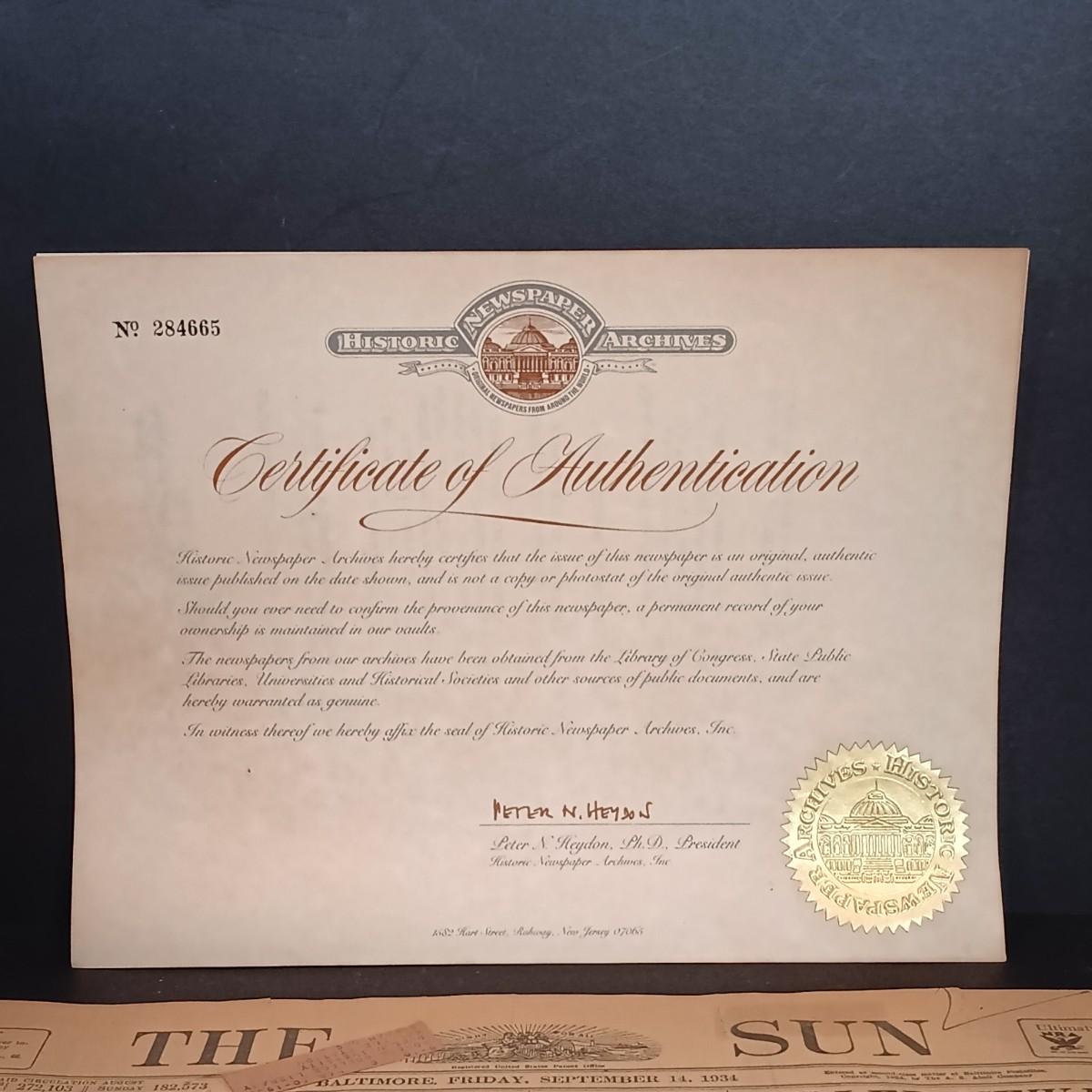 LOT 202: Chicago The Sun 1934 Newspaper with COA, Bond Executive Model Fedora & More