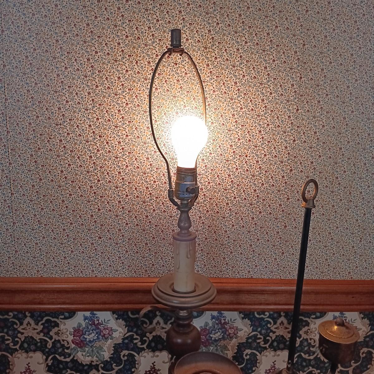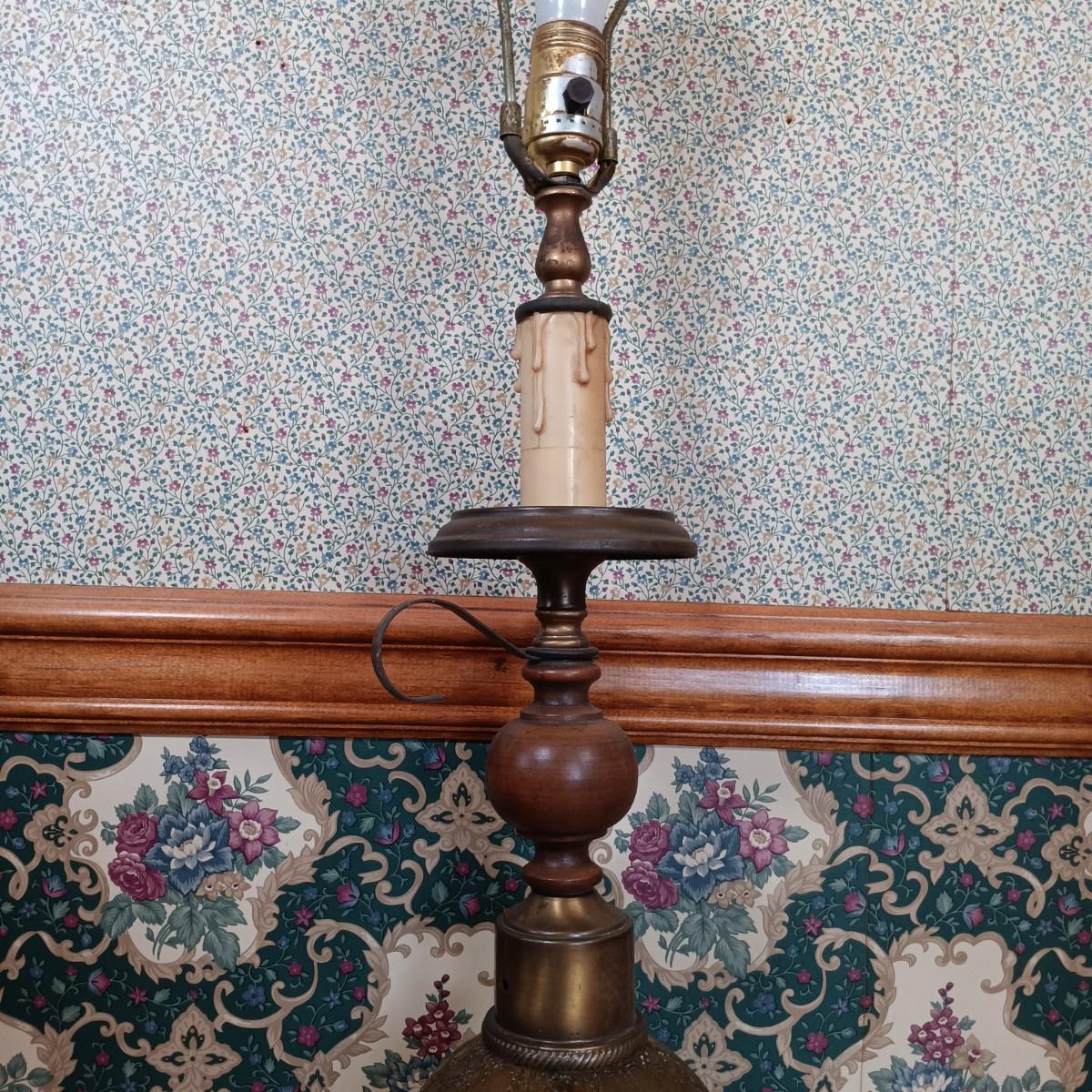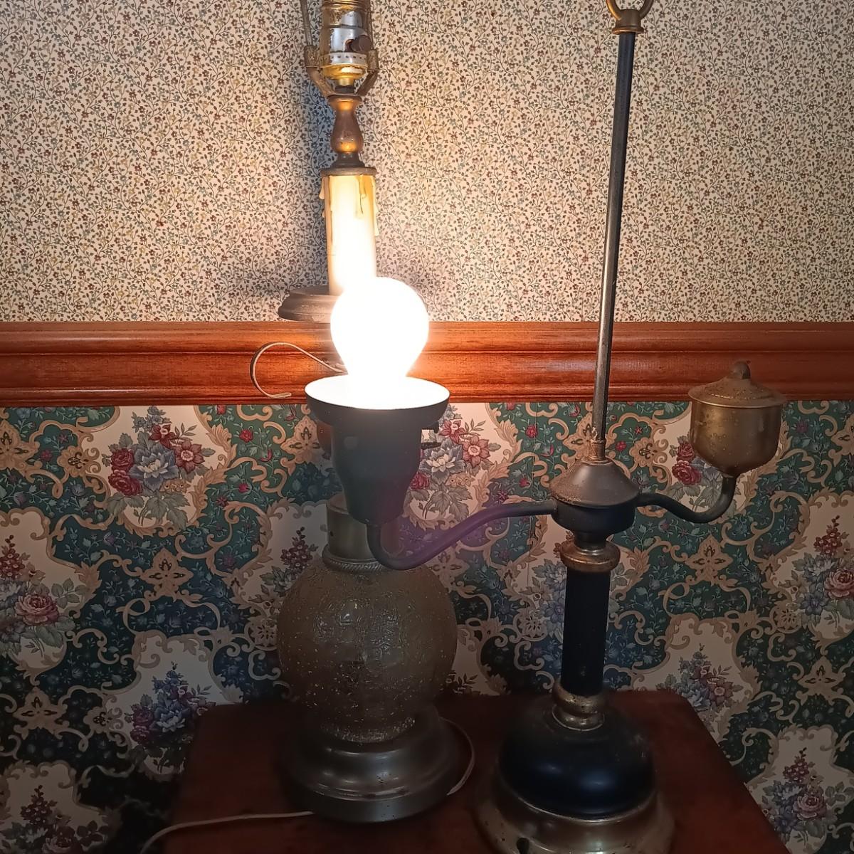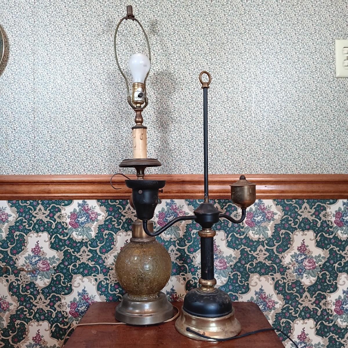 LOT 203: MCM Toleware-Style Student Lamp w/ One Other