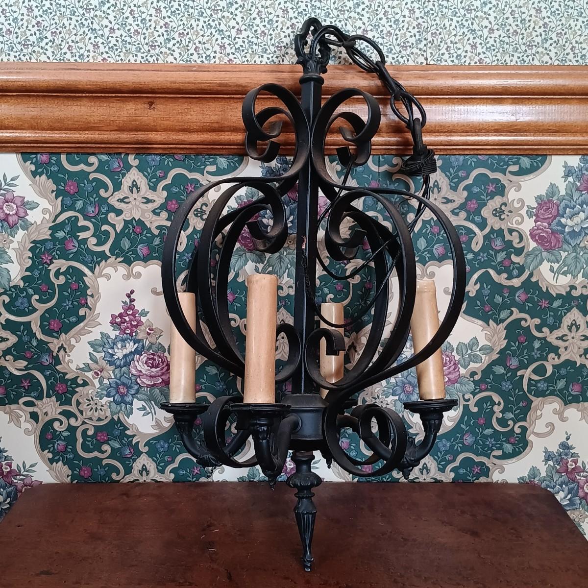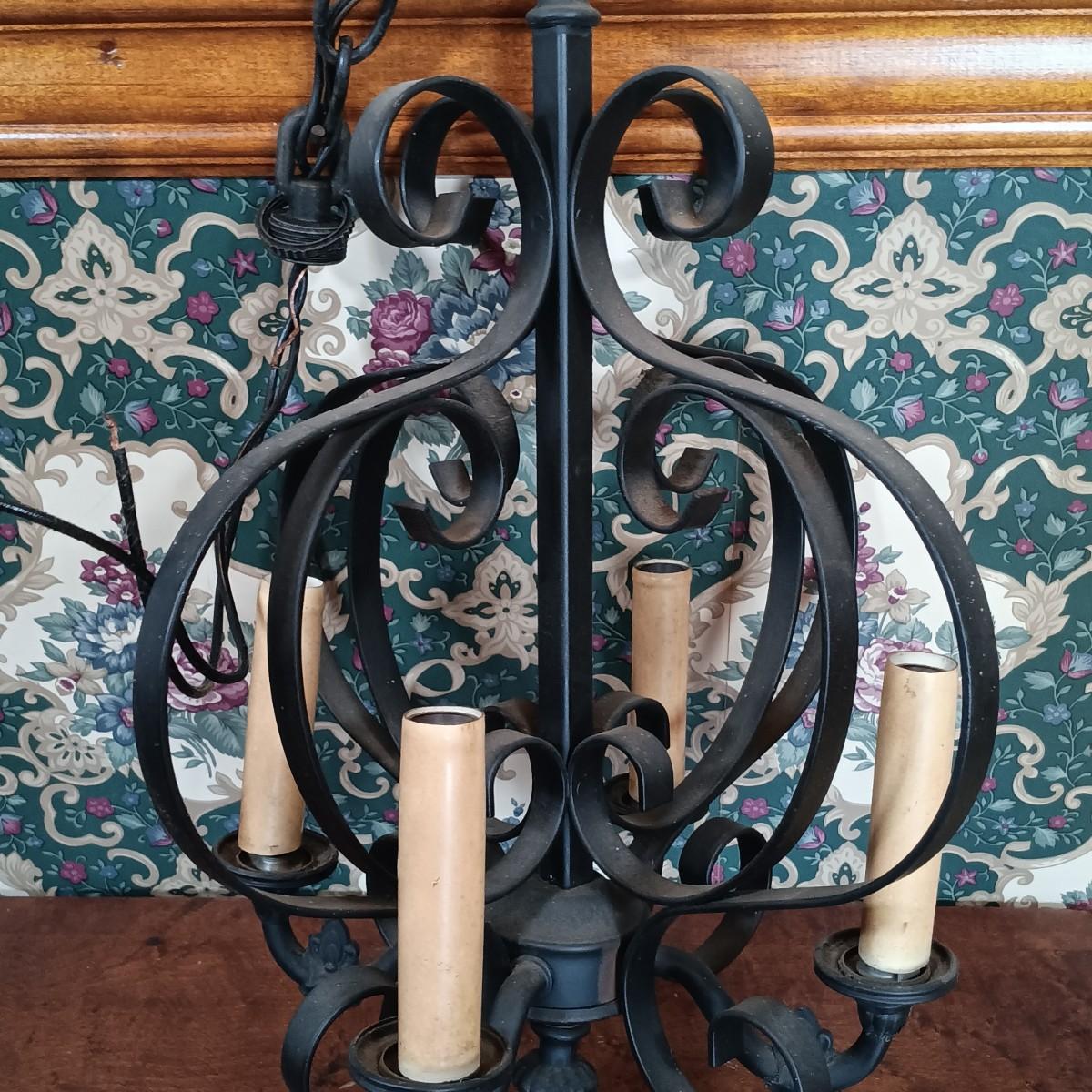 LOT 204: Small French-Style Wrought-Iron and Plastic Chandelier