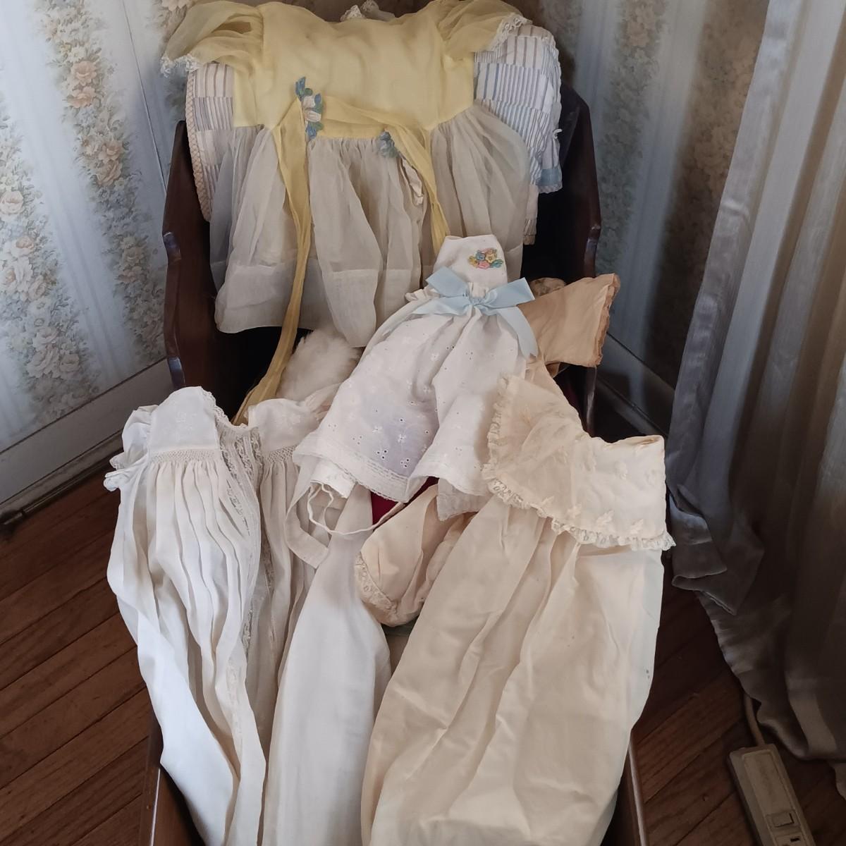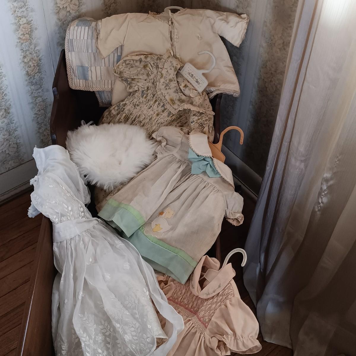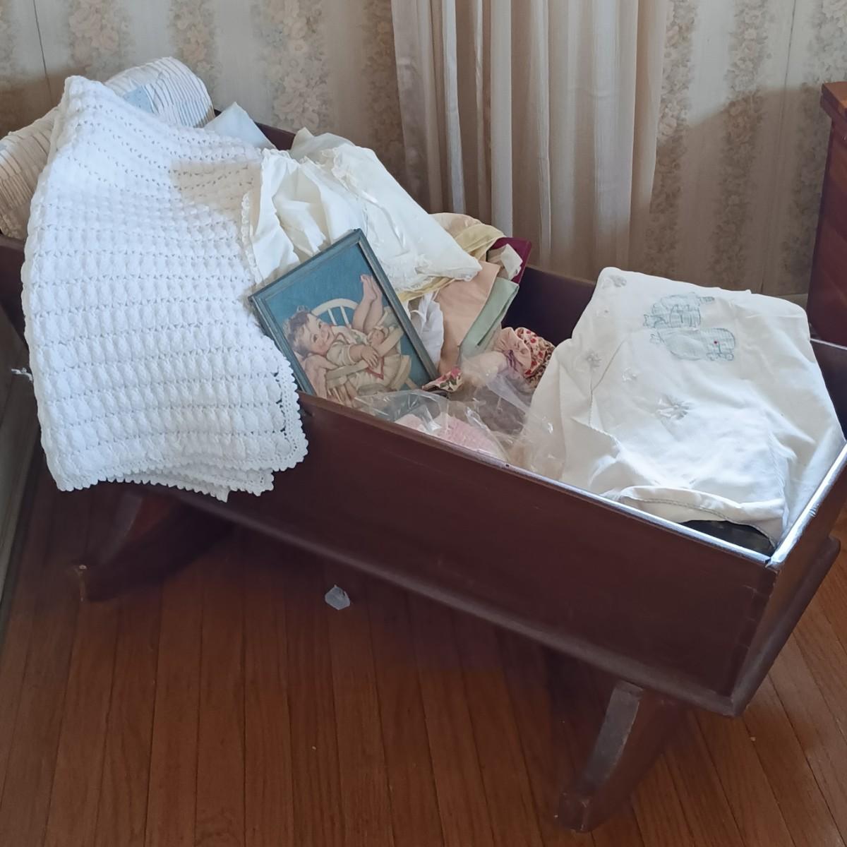 LOT 205: Vintage Baby Clothes, Wooden Cradle & More
