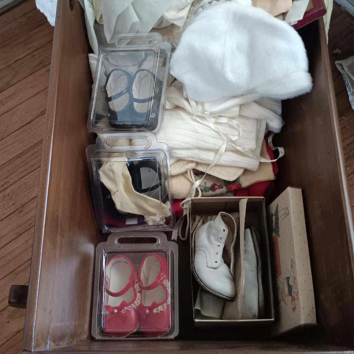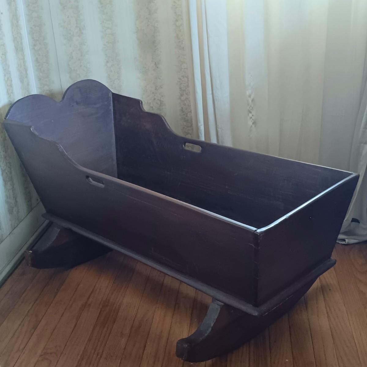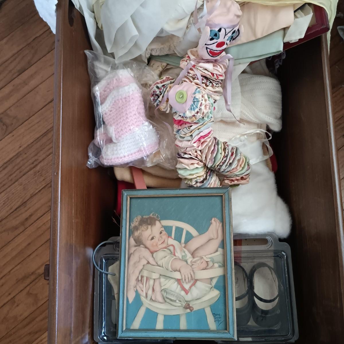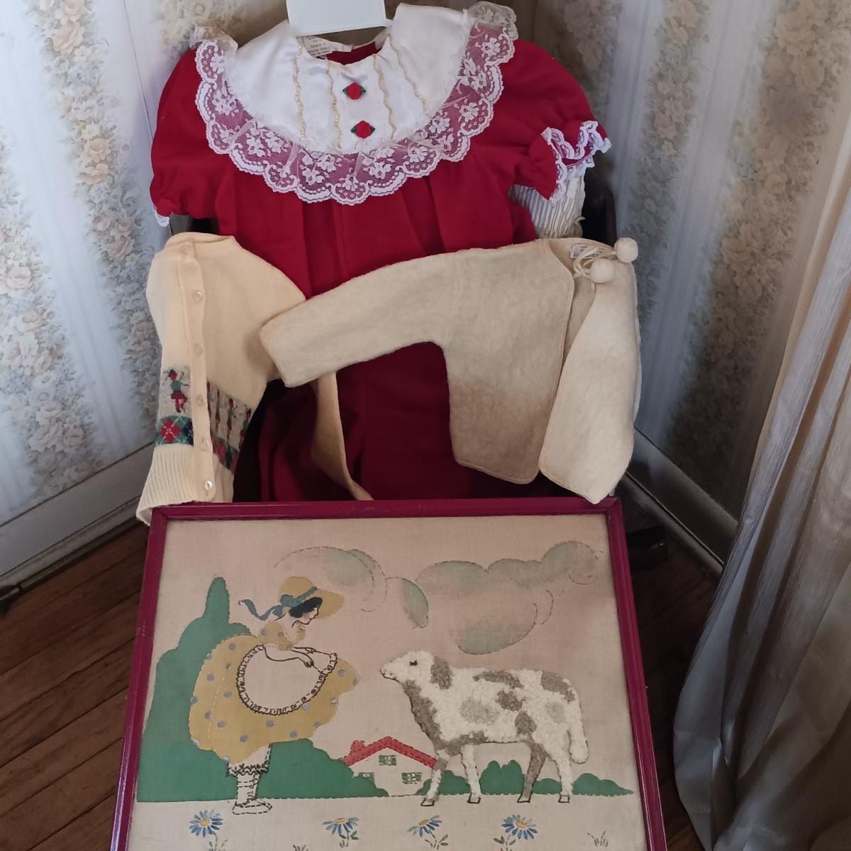 LOT 205: Vintage Baby Clothes, Wooden Cradle & More