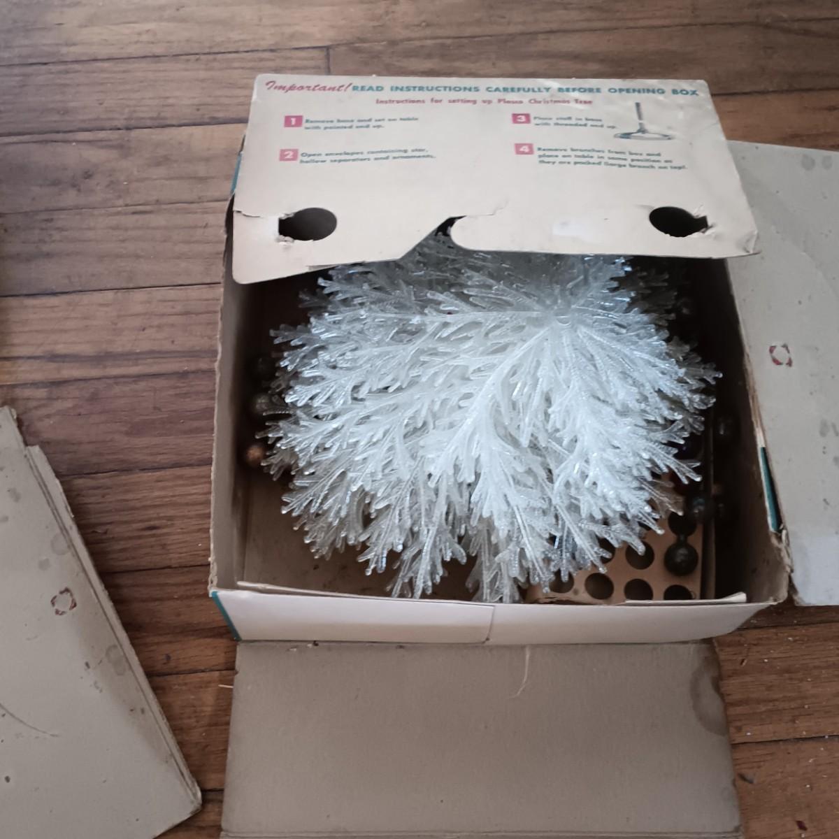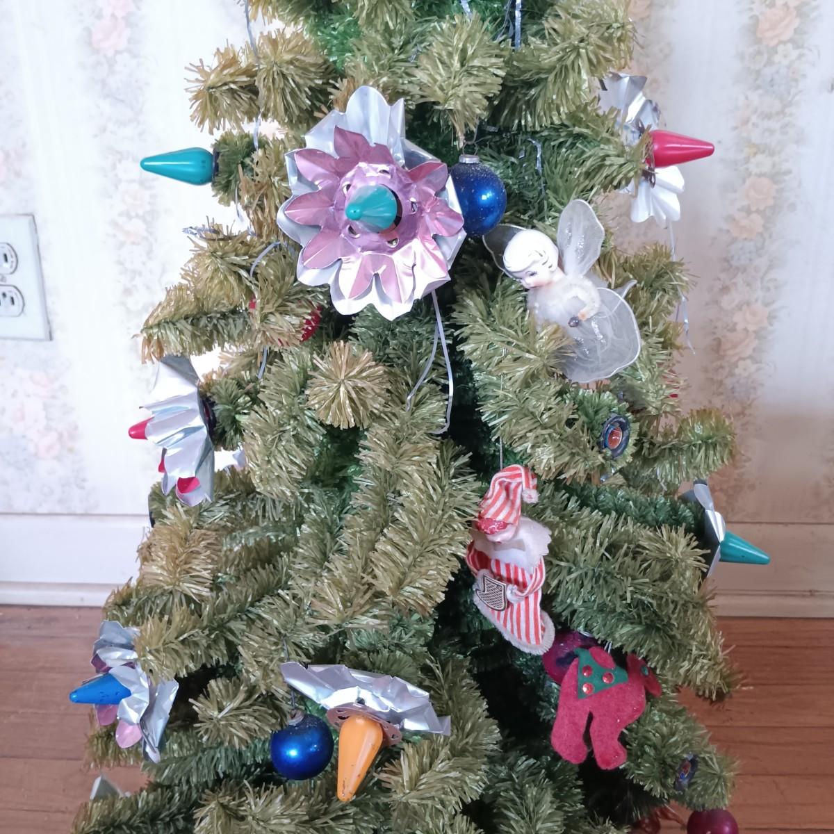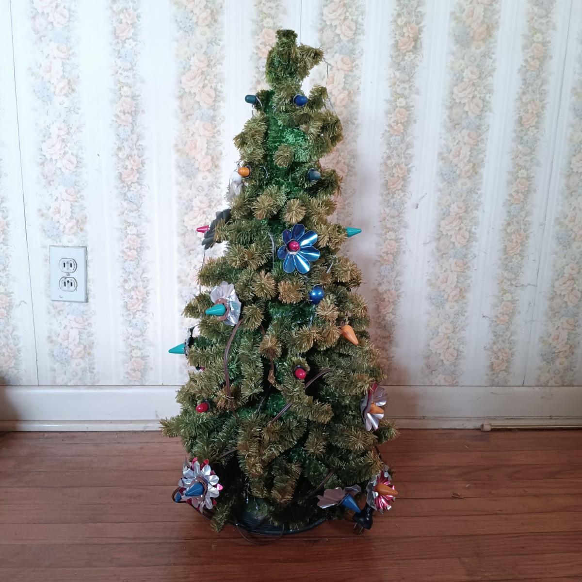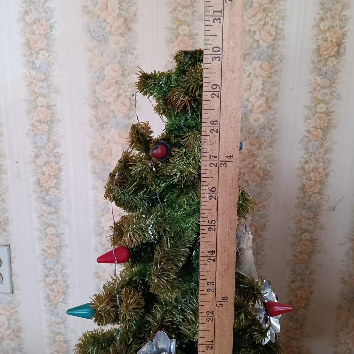 LOT 207: Vintage MCM 30" Christmas Tree with Ornaments, Plasco Plastic Mini Christmas Tree & More