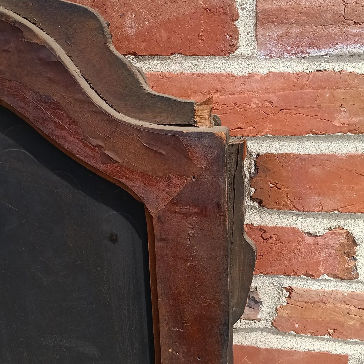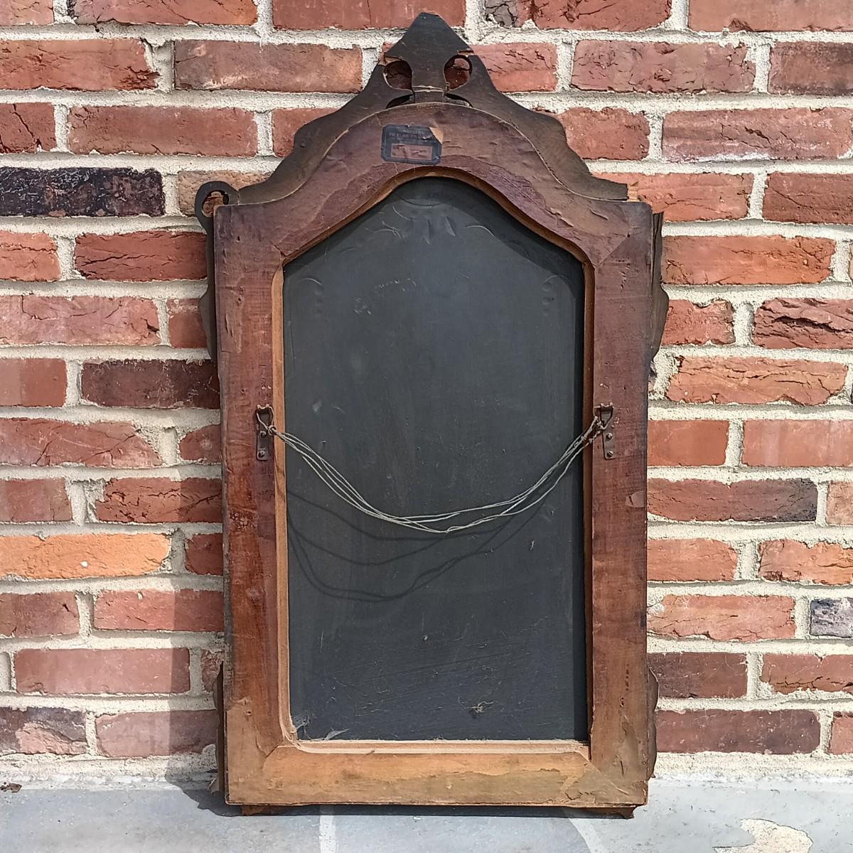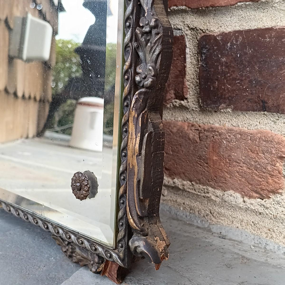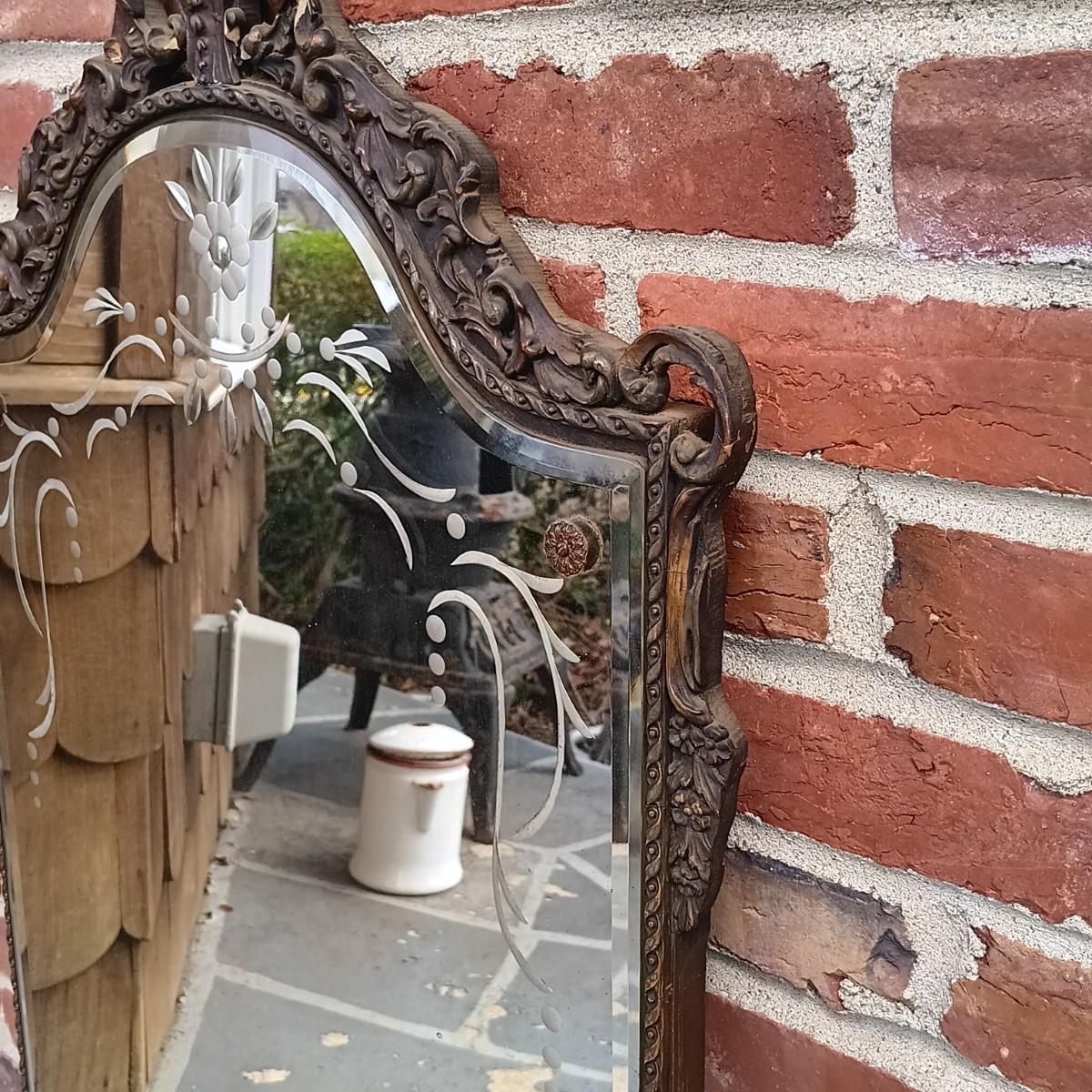 LOT 225: Antique Western Picture Frame Co. Etched Glass Mirror with Carved Wooden Frame