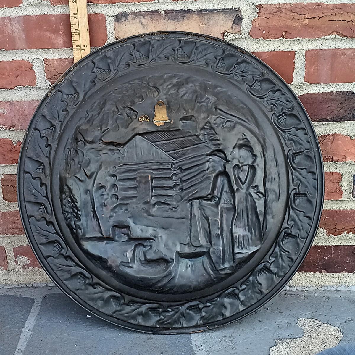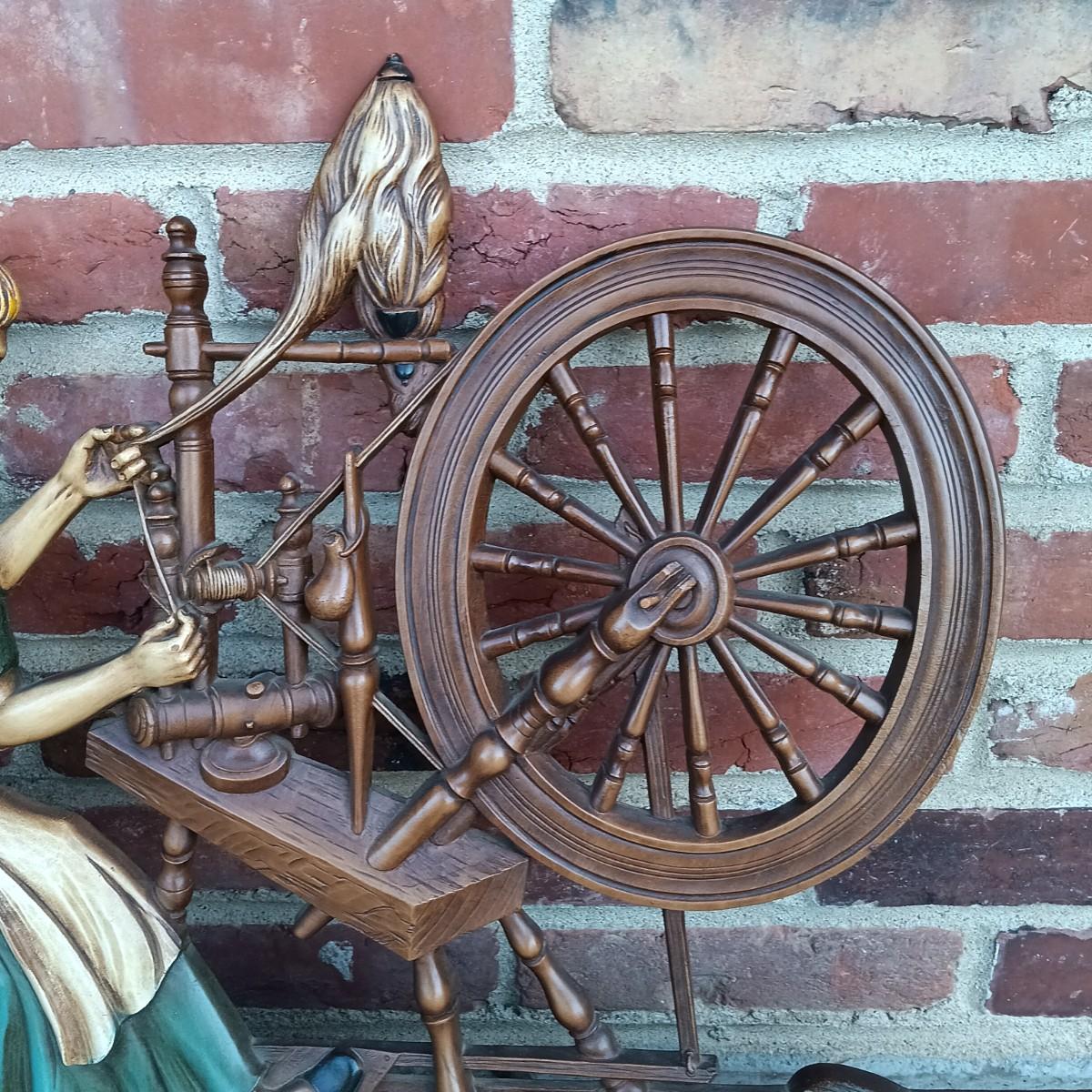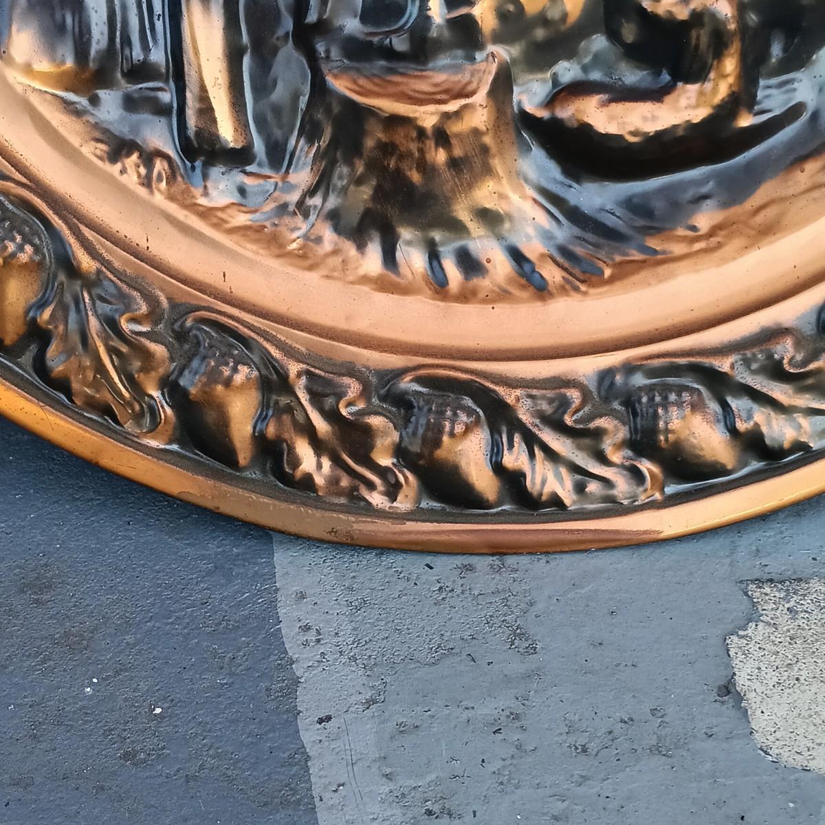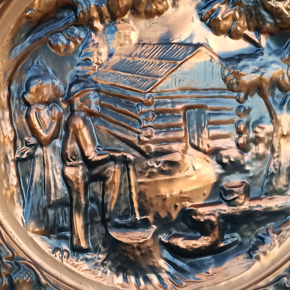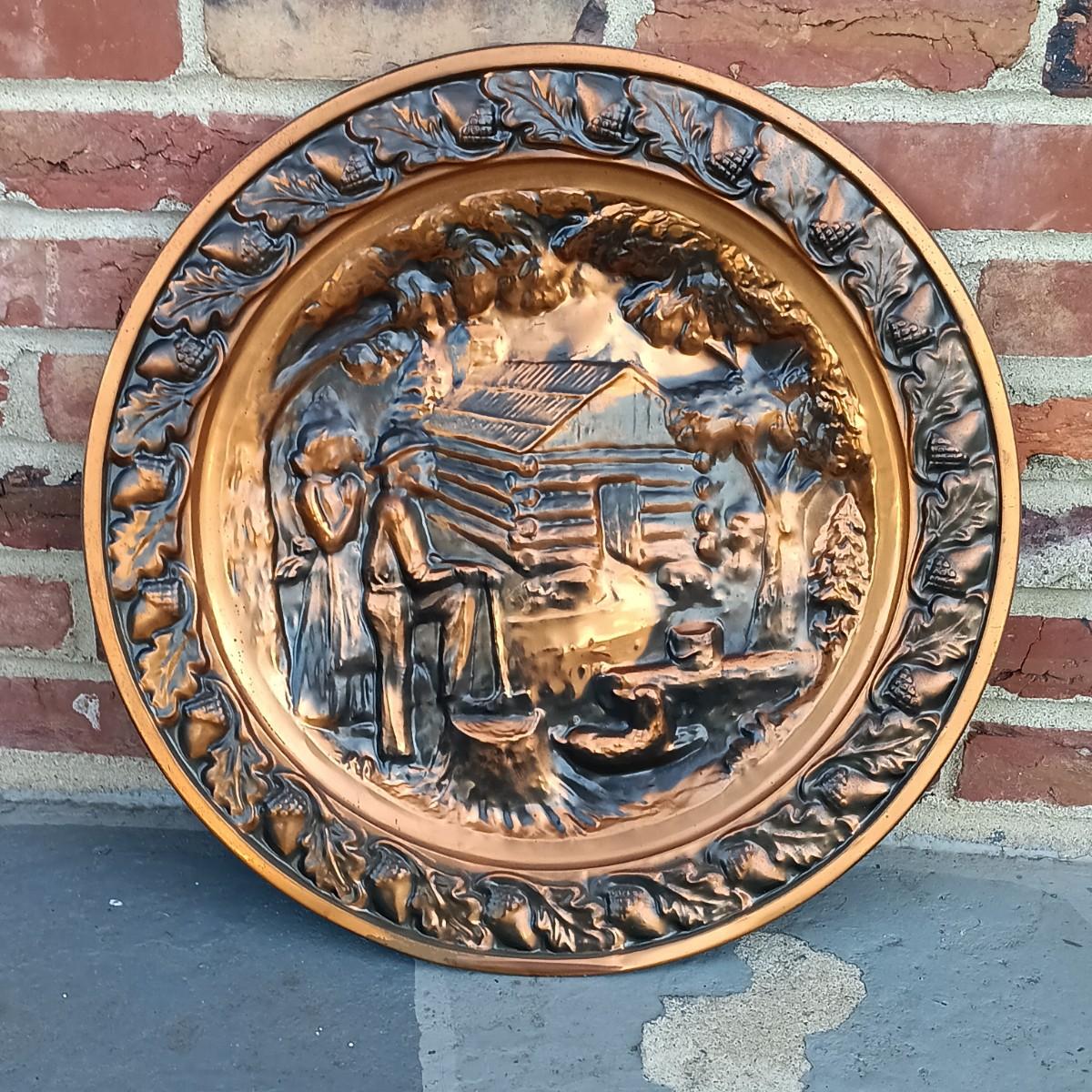 LOT 242: Vintage Syroco 'The Spinning Jenny' Wall Plaque w/ Coppercraft Guild Taunton, MA Decorative Plate