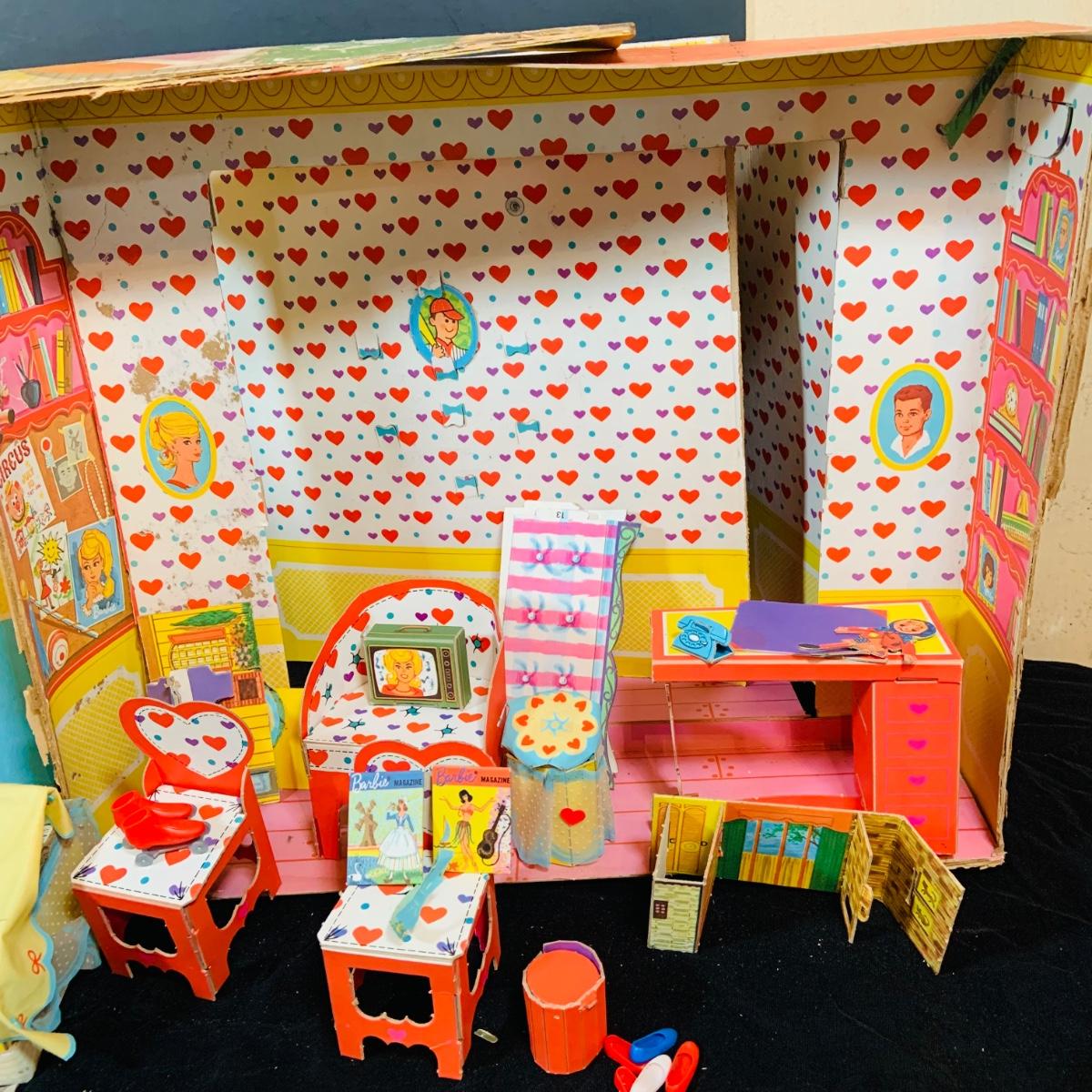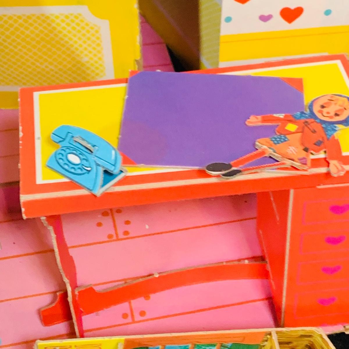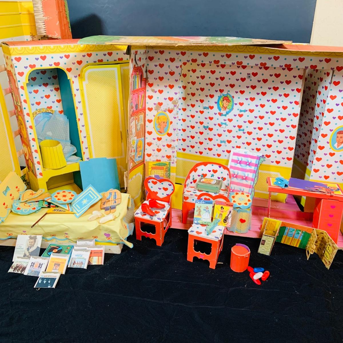LOT 245: Vintage Mattel’s Skippers Dream Room Paper Doll House with Accessories From 1964