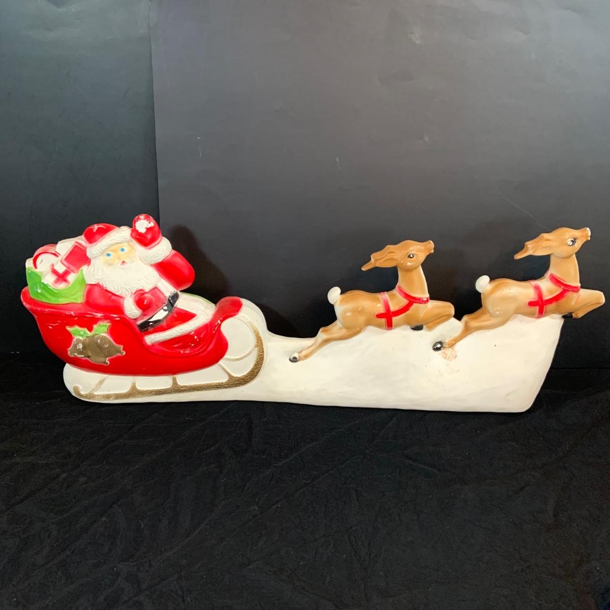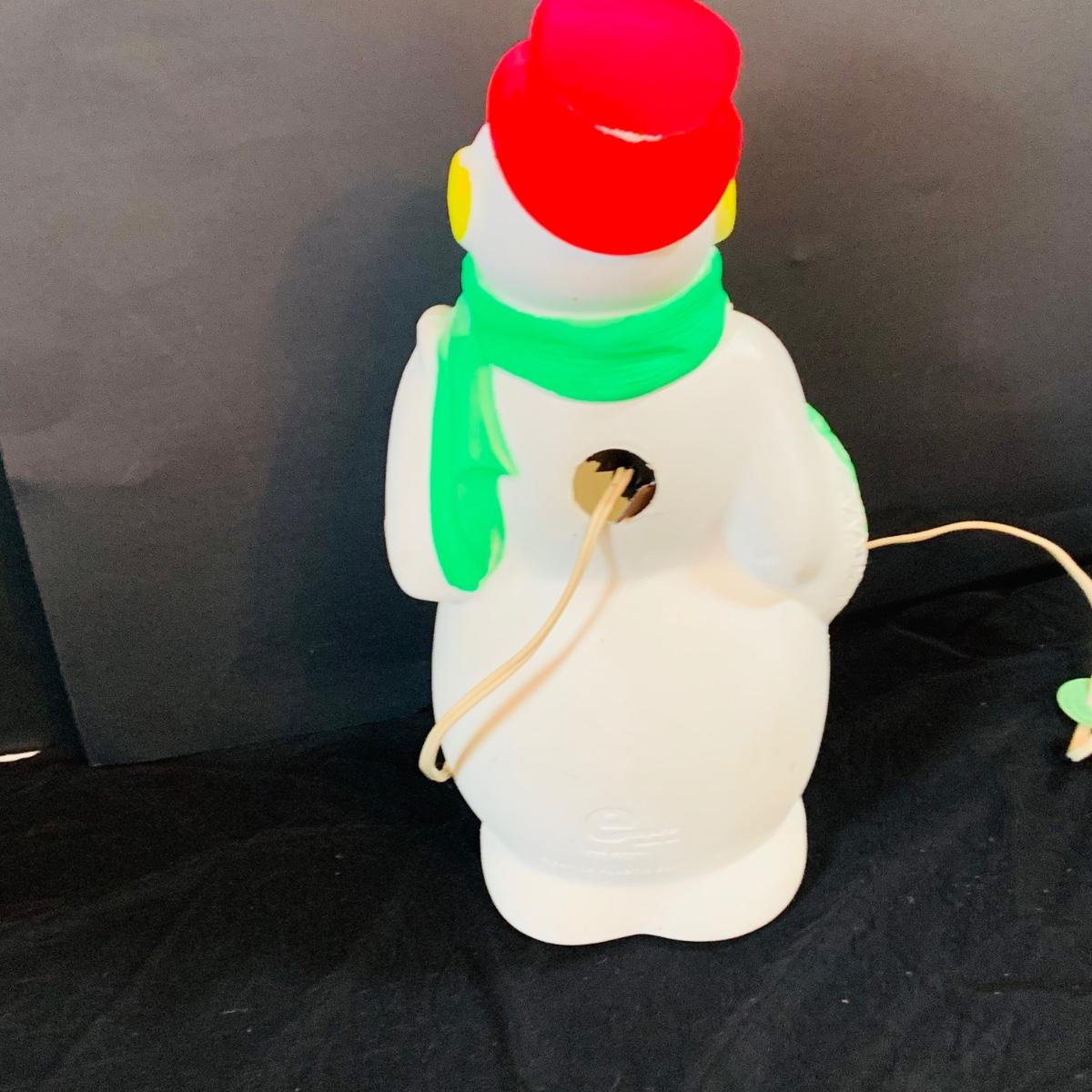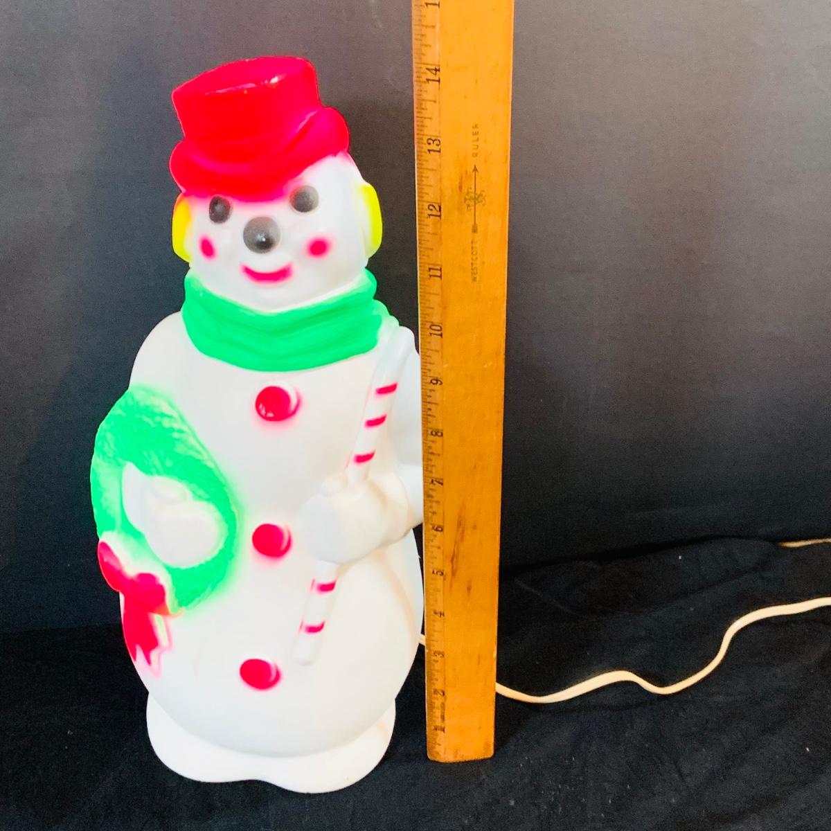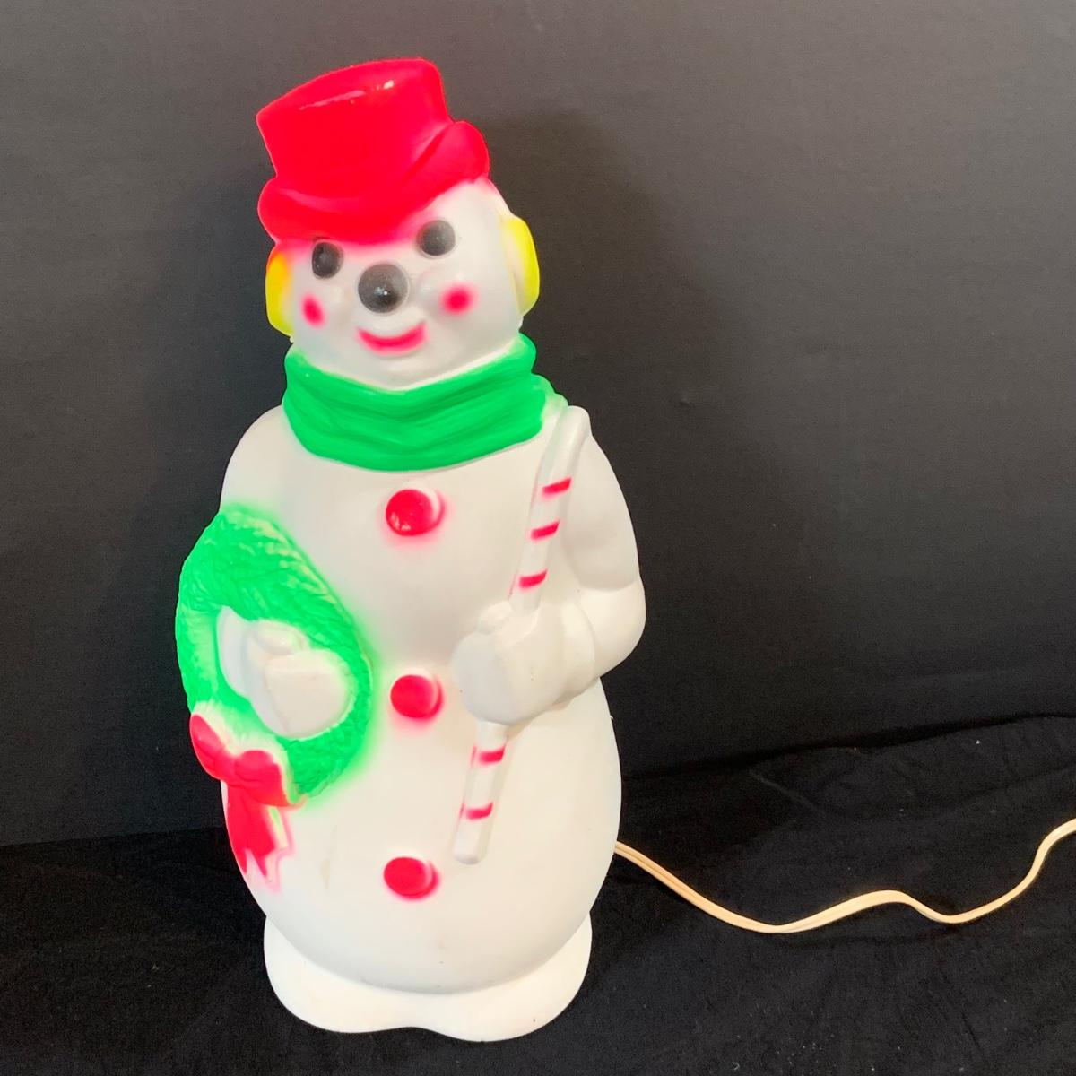 LOT251: Vintage Christmas Holiday Plastic Blow. Mold Lighted Decorations - Santa’s Sleigh by Union Products and Snowma by Empire 1966