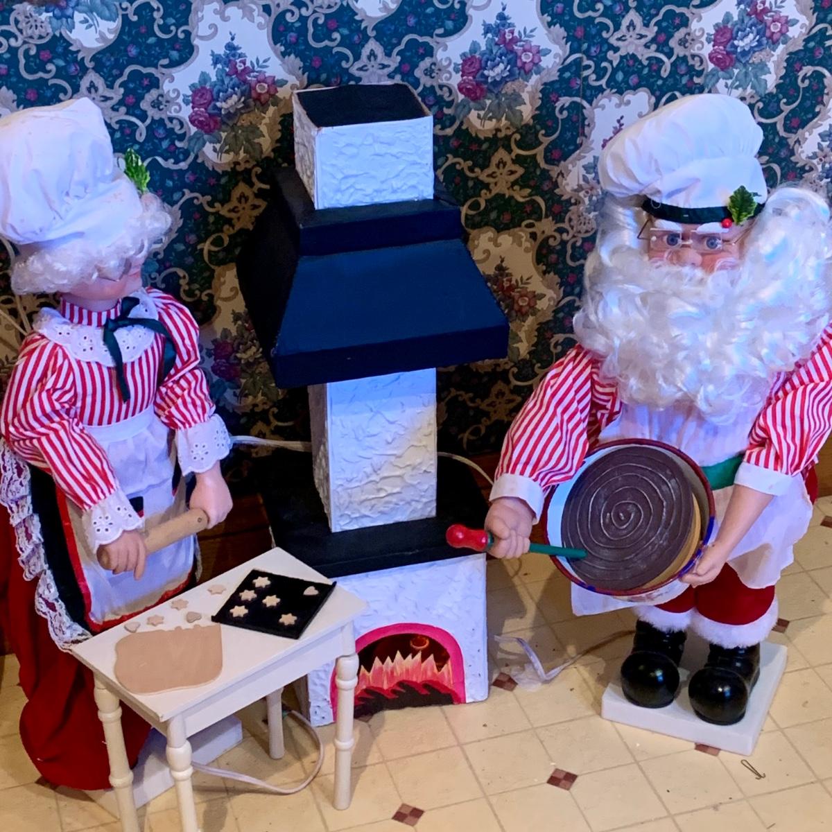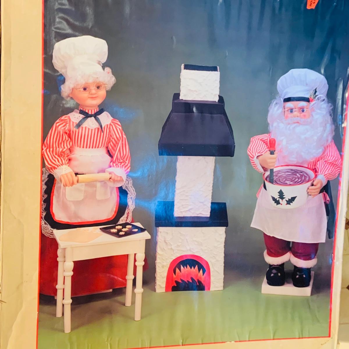 LOT 254: Animatronic Santa and Mrs Claus Baking Cookies Including Table and Lighted Oven In Original Box