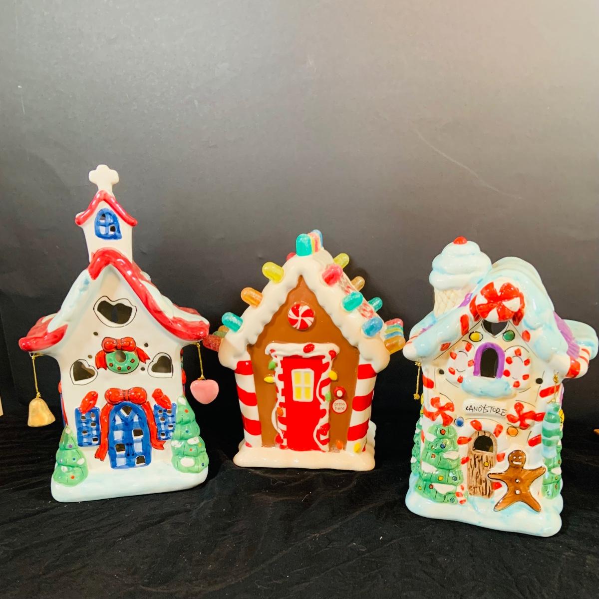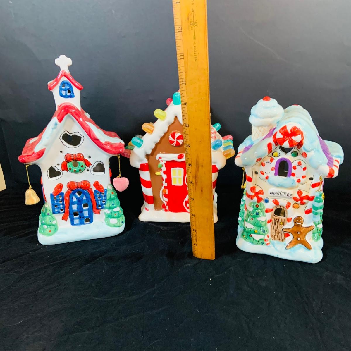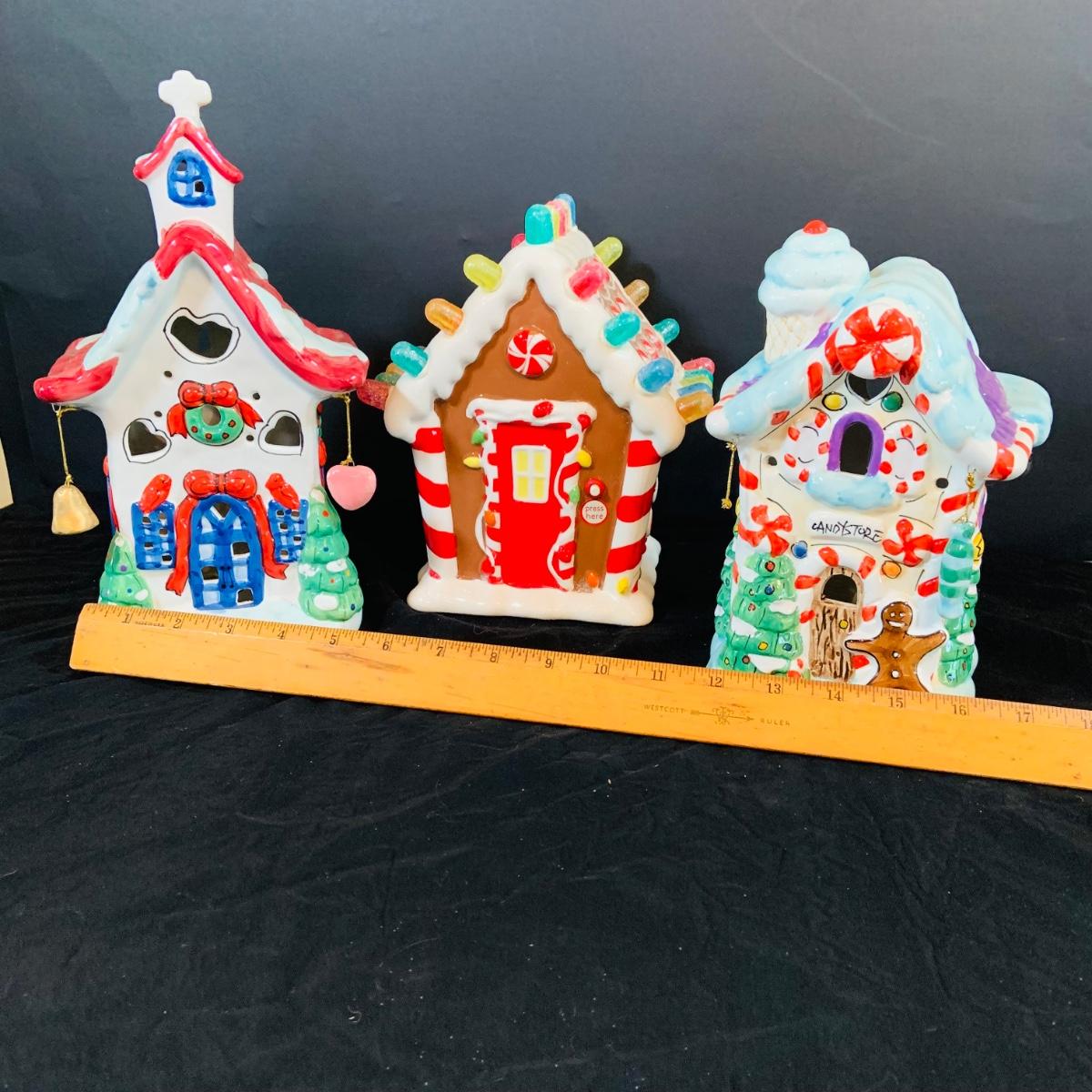 LOT 256: Set of Three (3) Ceramic Gingerbread Houses
